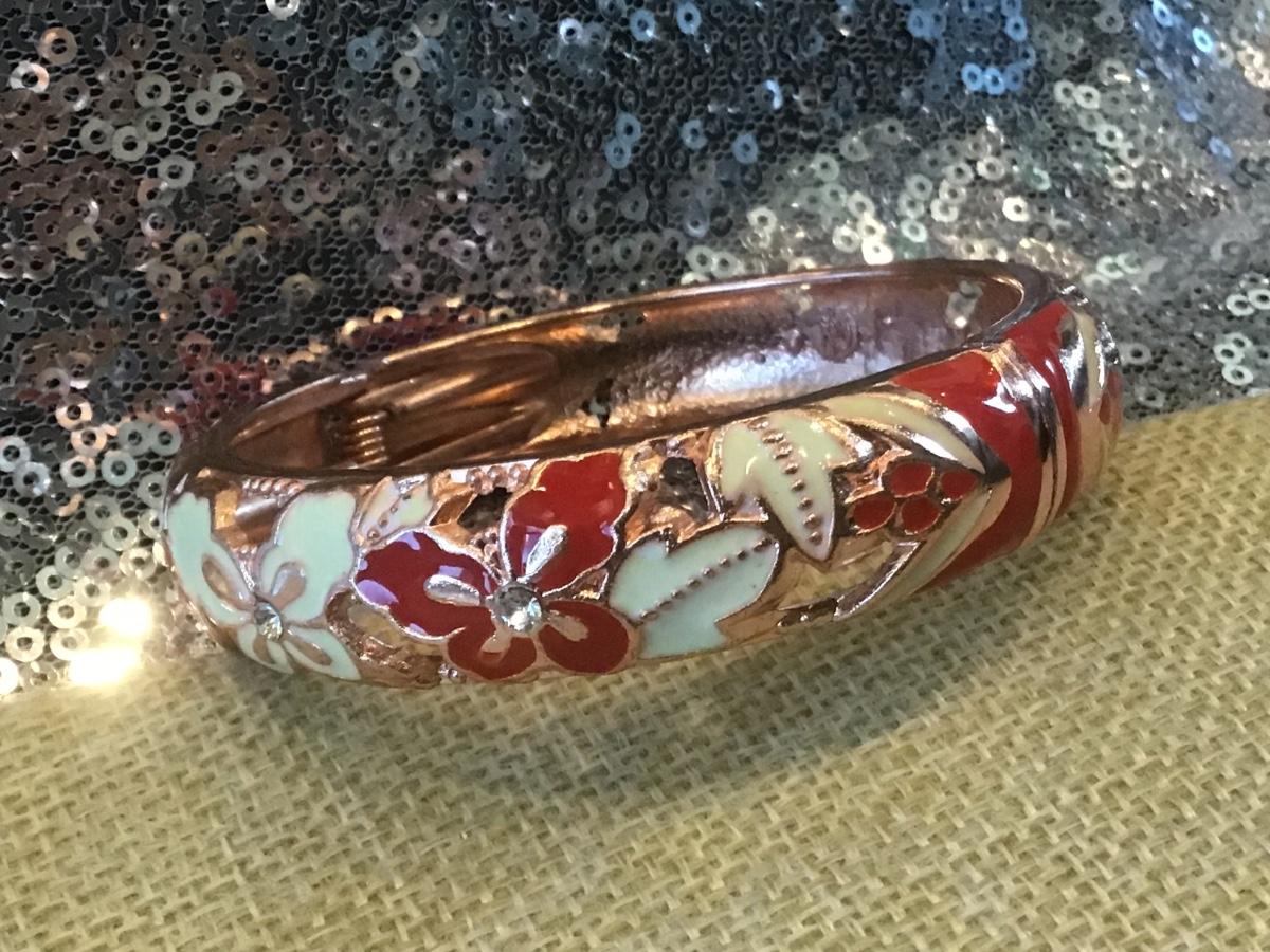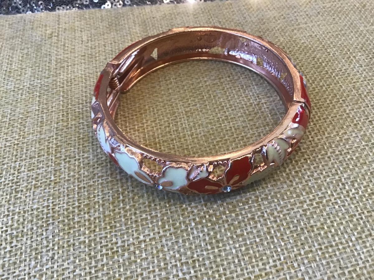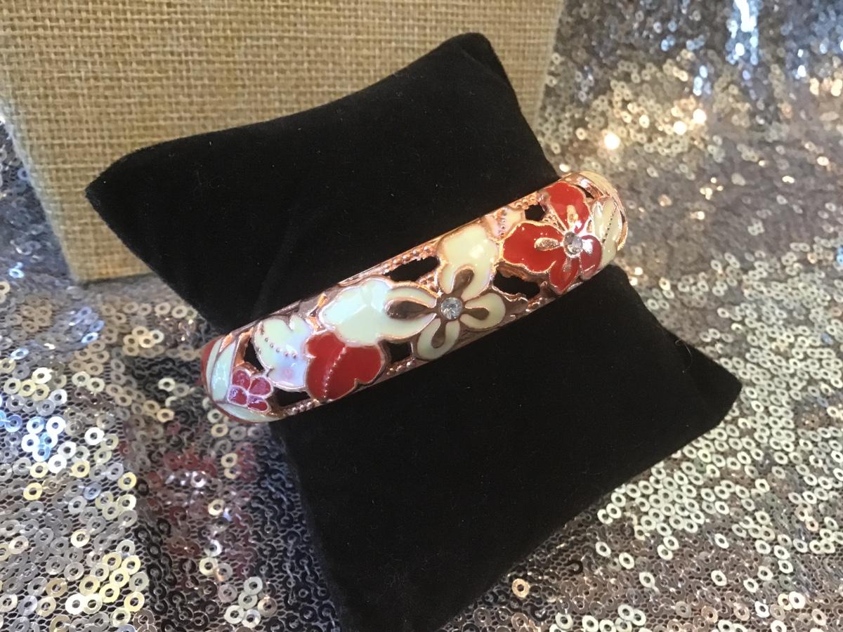 Costume Jewelry Copper Tone Enamel Bangle Floral Bracelet New