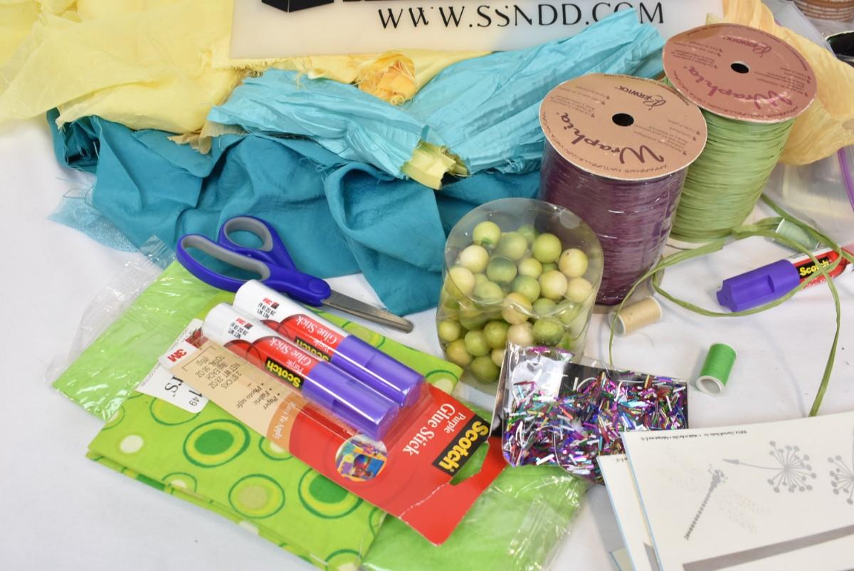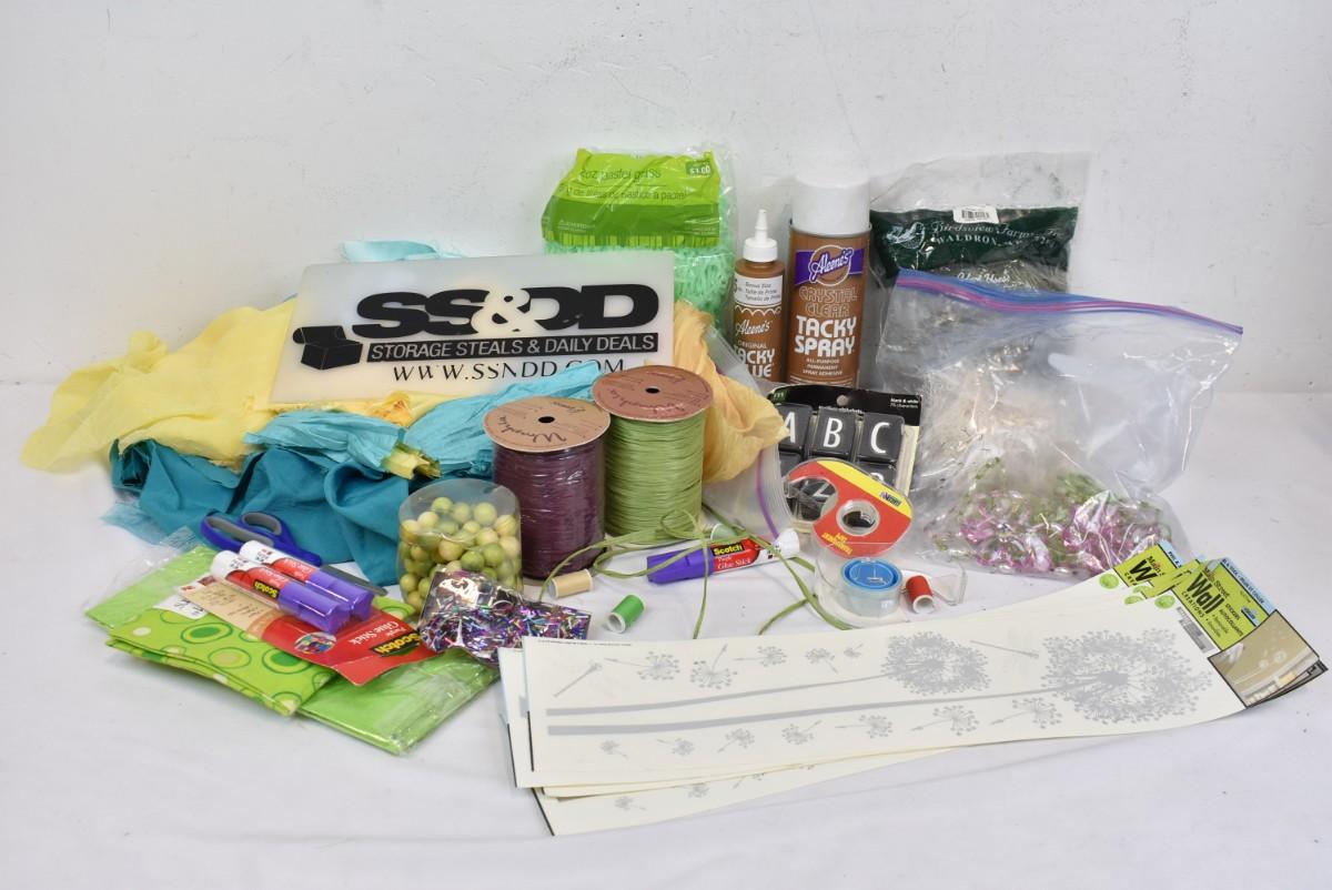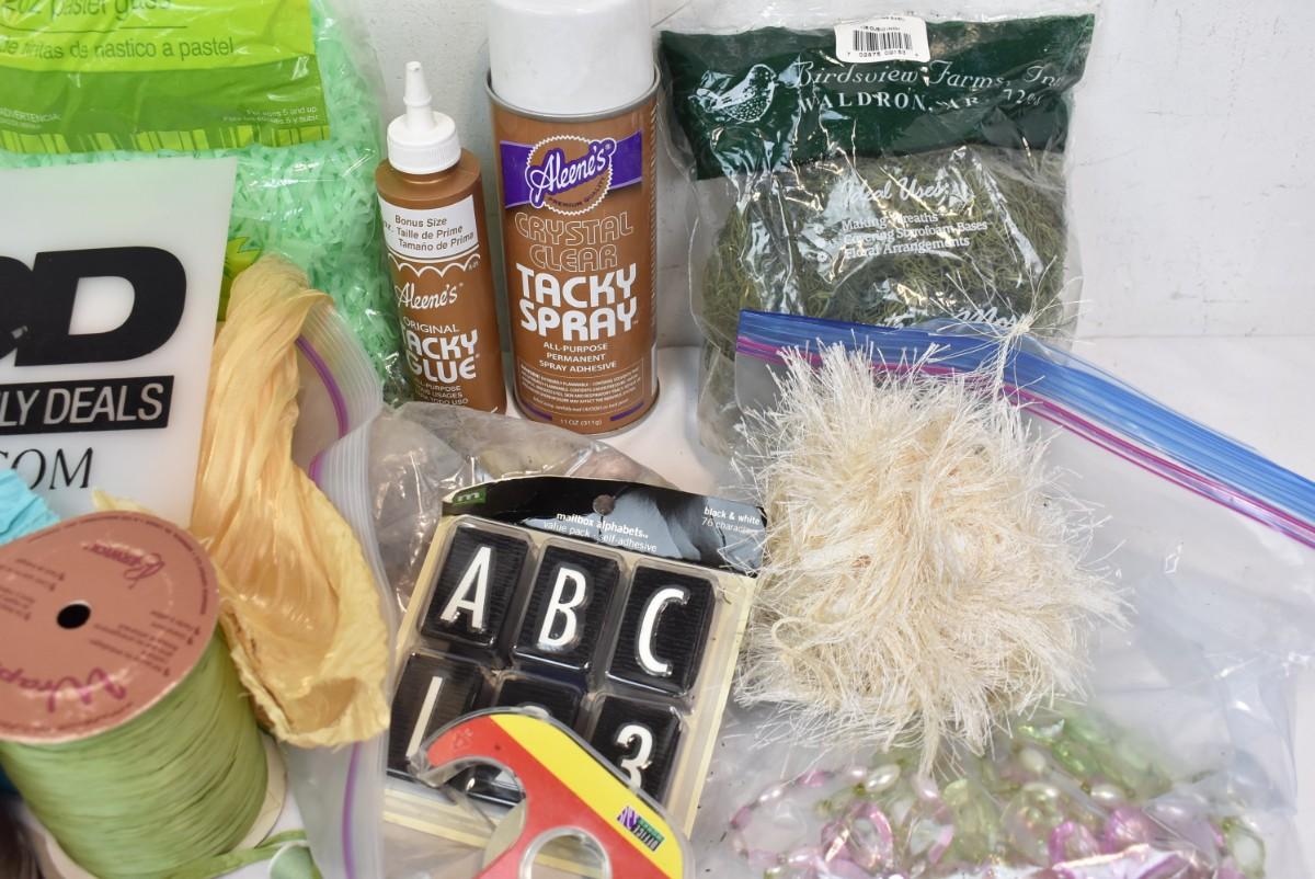 Crafting Lot: Fabric, Faux Moss, Glue, Wall Stickers, Ribbon