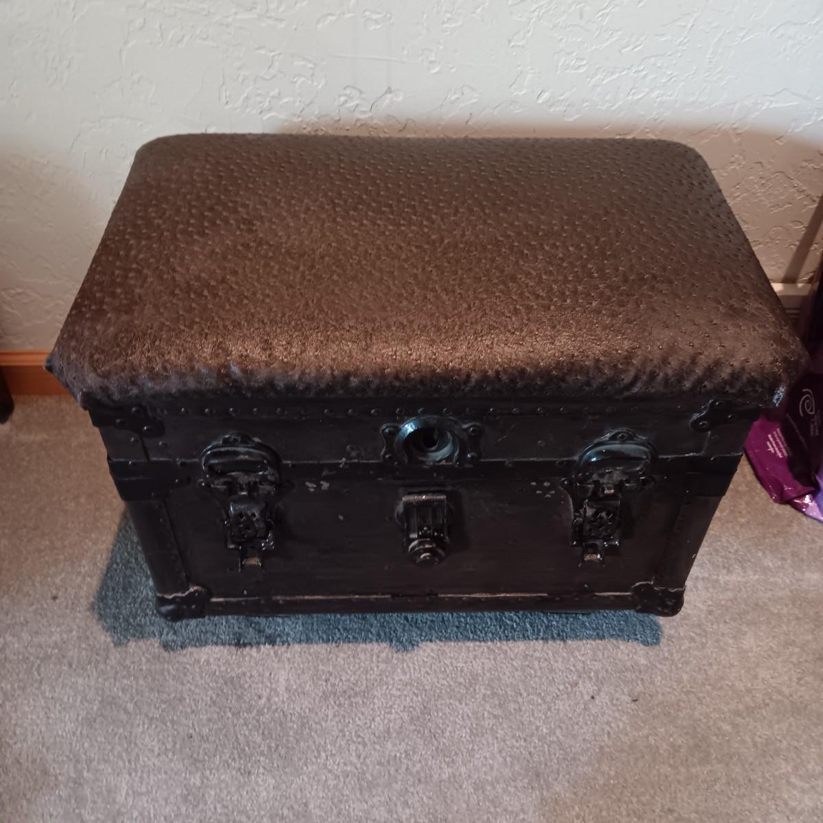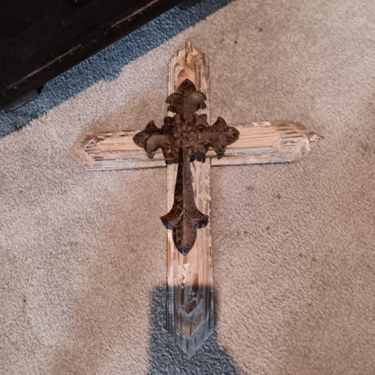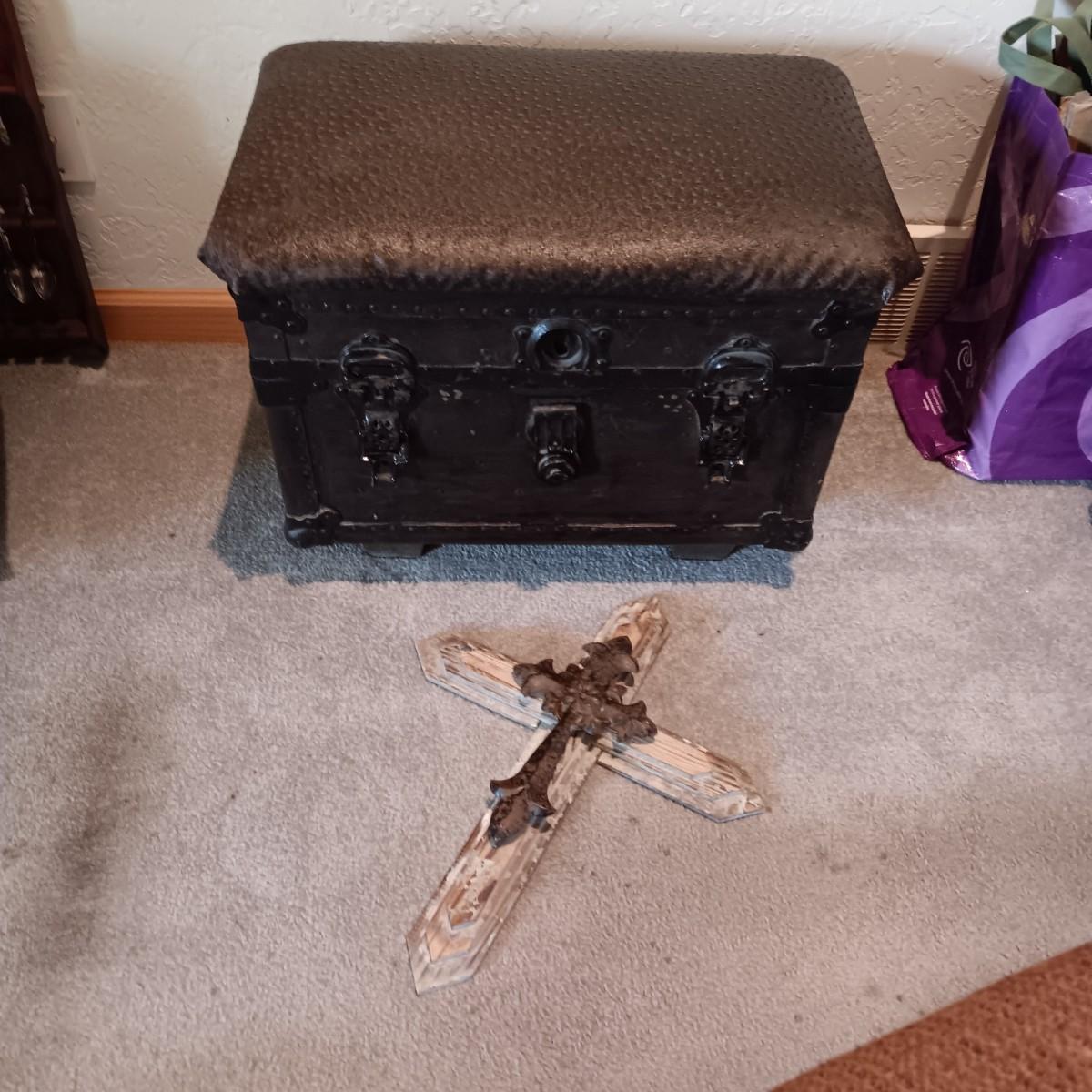 CUSHIONED TOP SMALLER TRUNK AND A RUSTIC CROSS