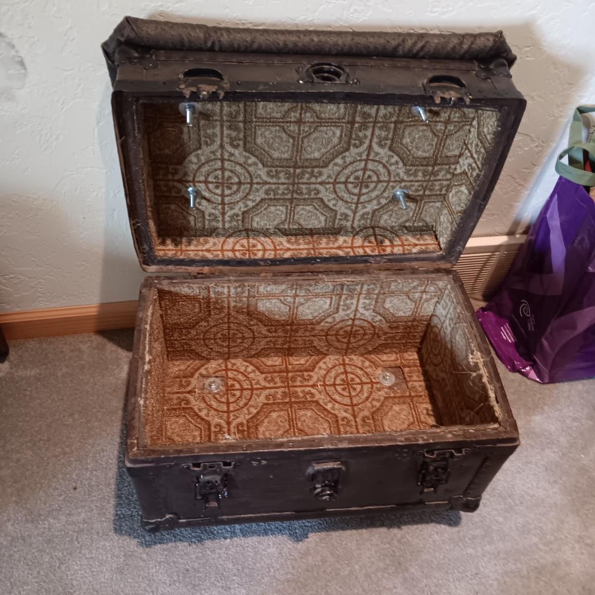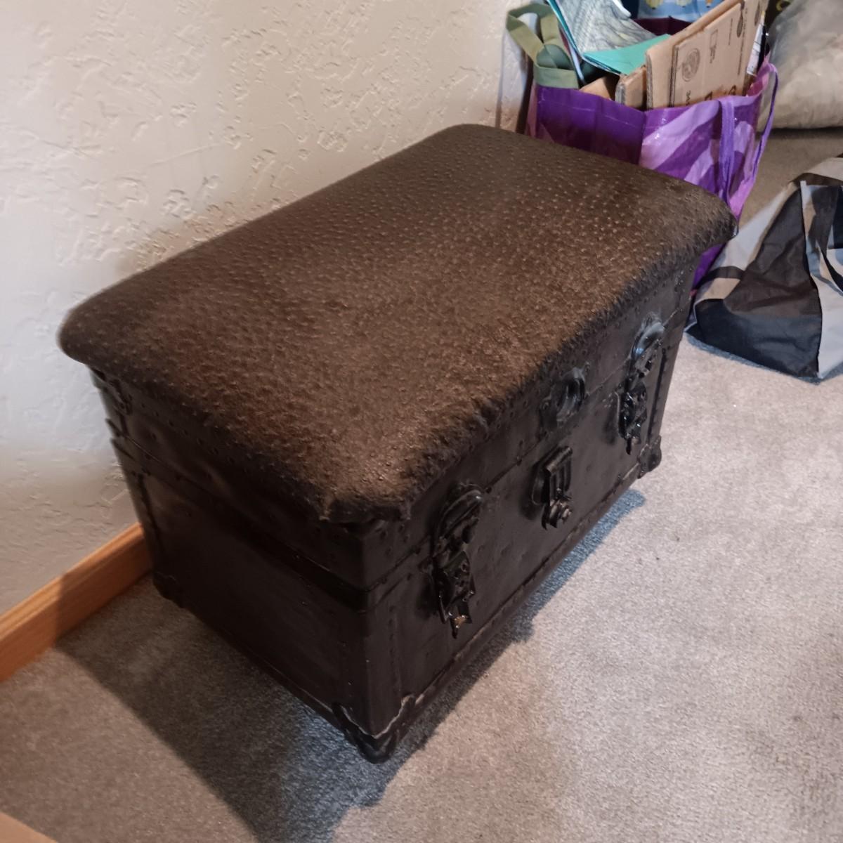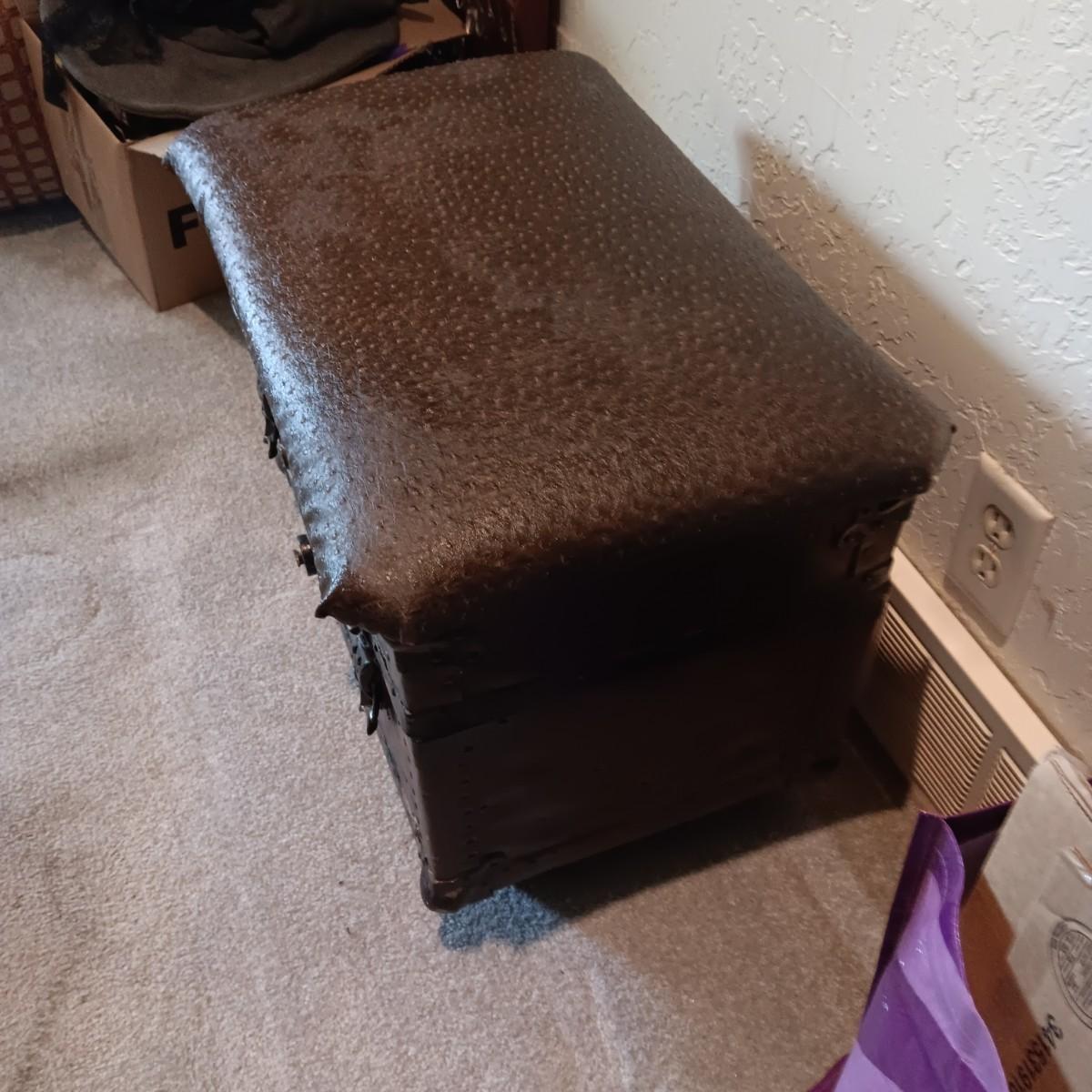 CUSHIONED TOP SMALLER TRUNK AND A RUSTIC CROSS