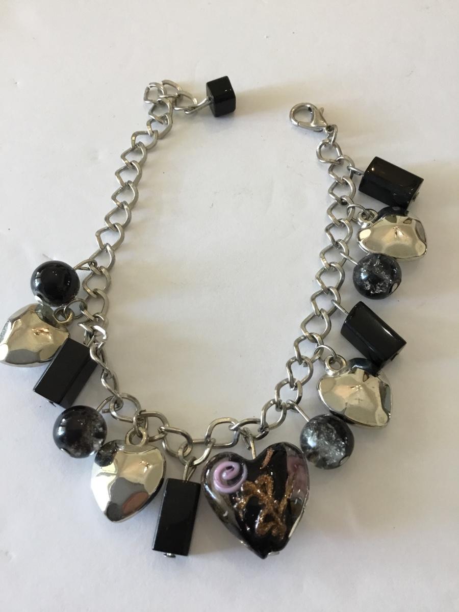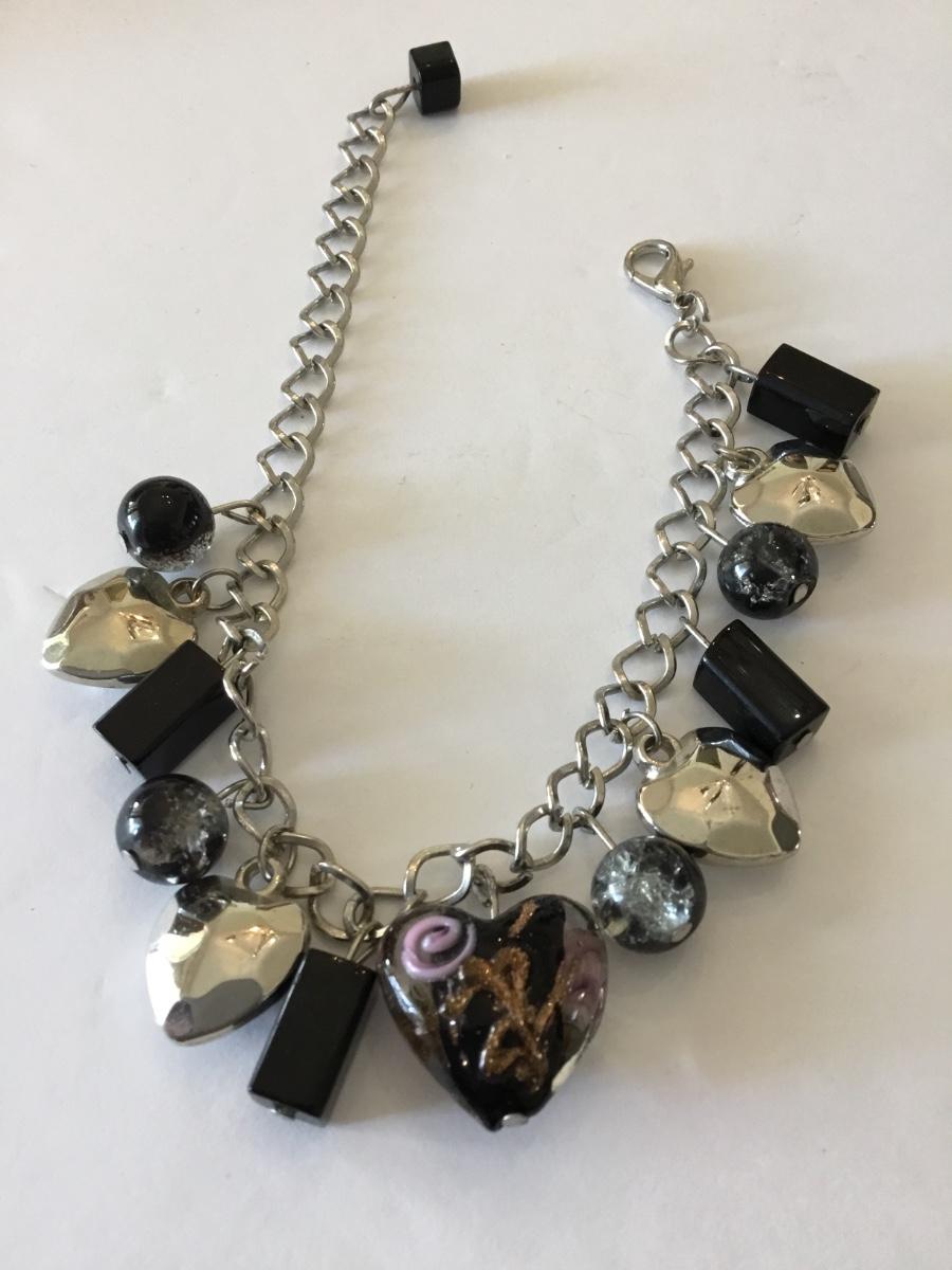 Cute Silver tone heart charm bracelet, glass heart charm bracelet