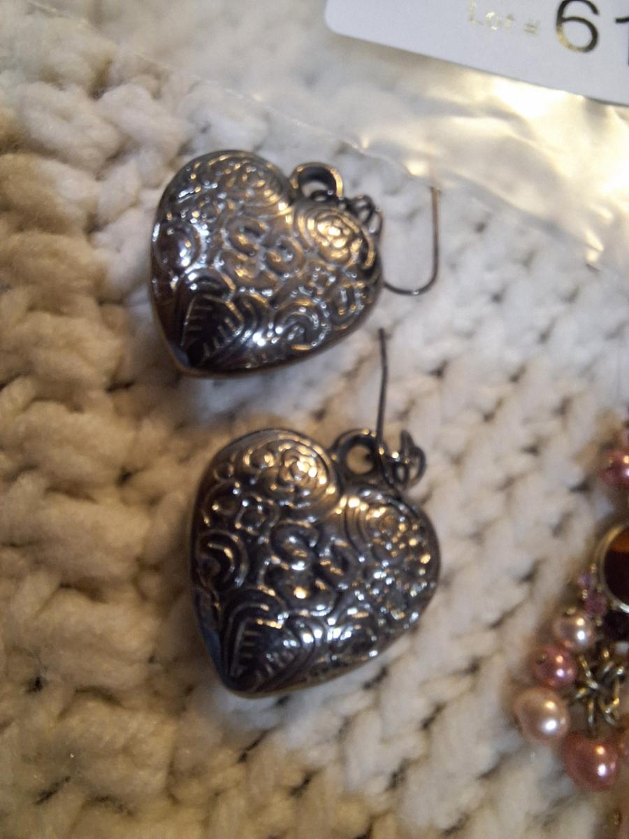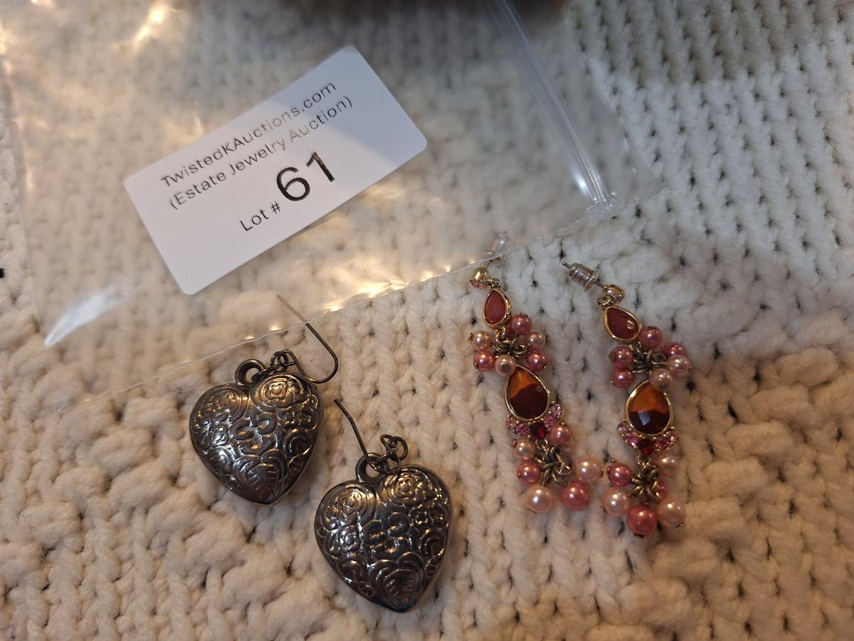 Dangle earrings, hearts and beads