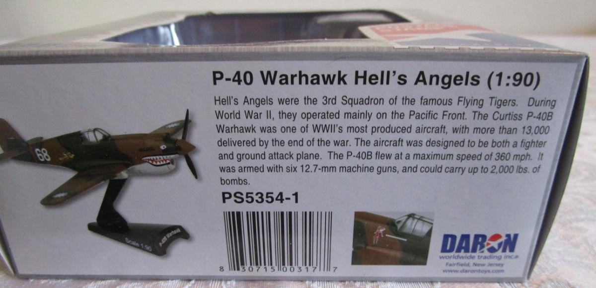 Daron P-40 Warhawk Hell's Angels die cast historic airplane with stand 1:90 scale