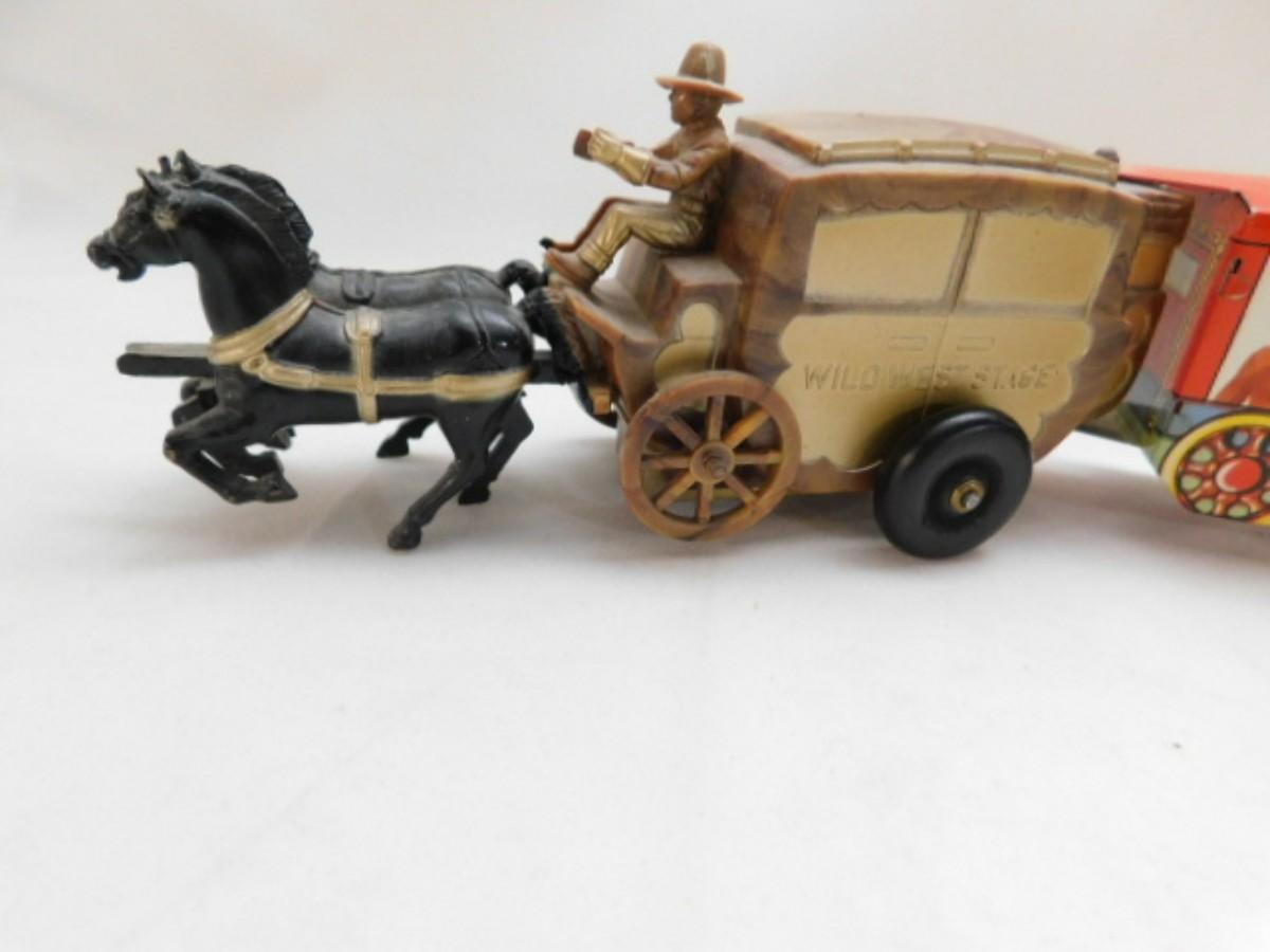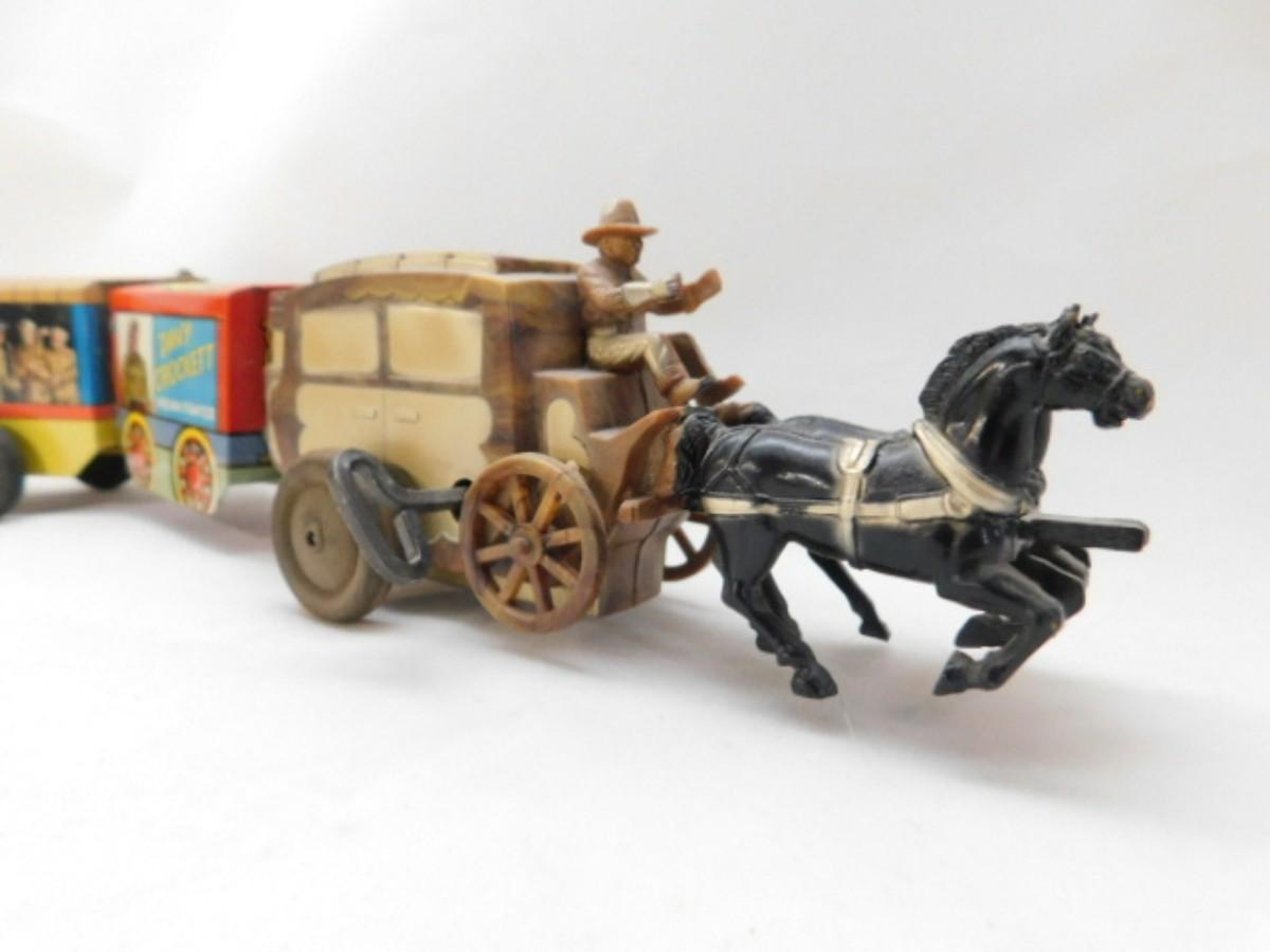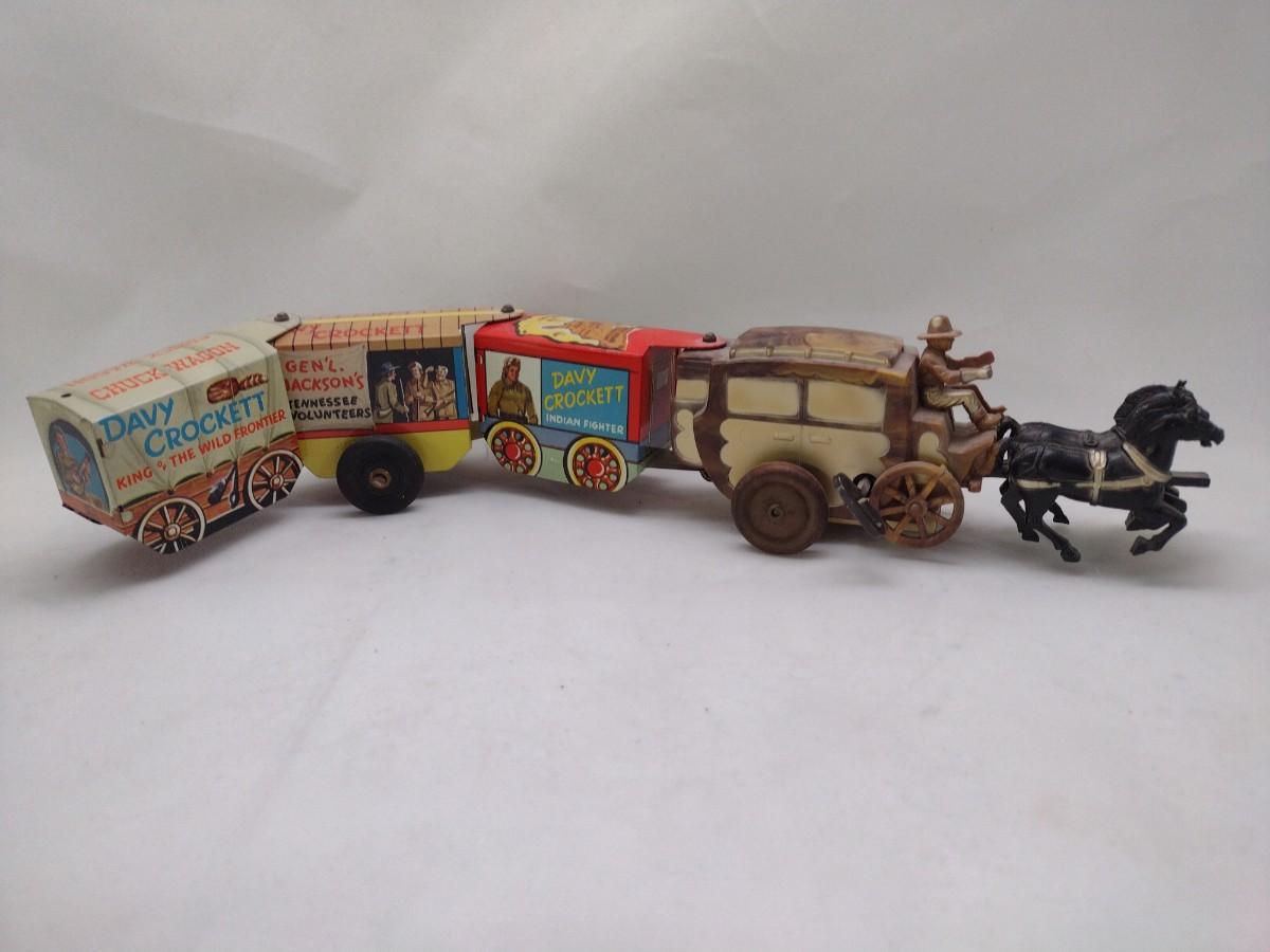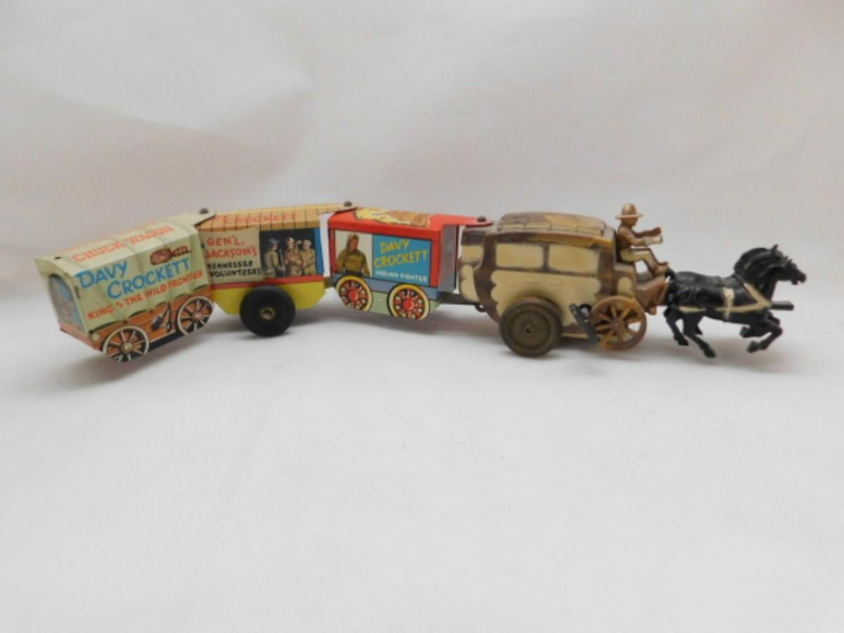 Vintage 1950's Marx Wind-Up Disney Davey Crockett Wagon Train Mechanical Toy with Original Box