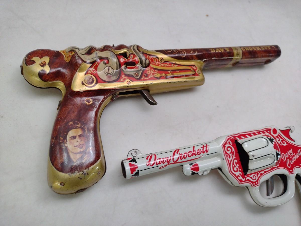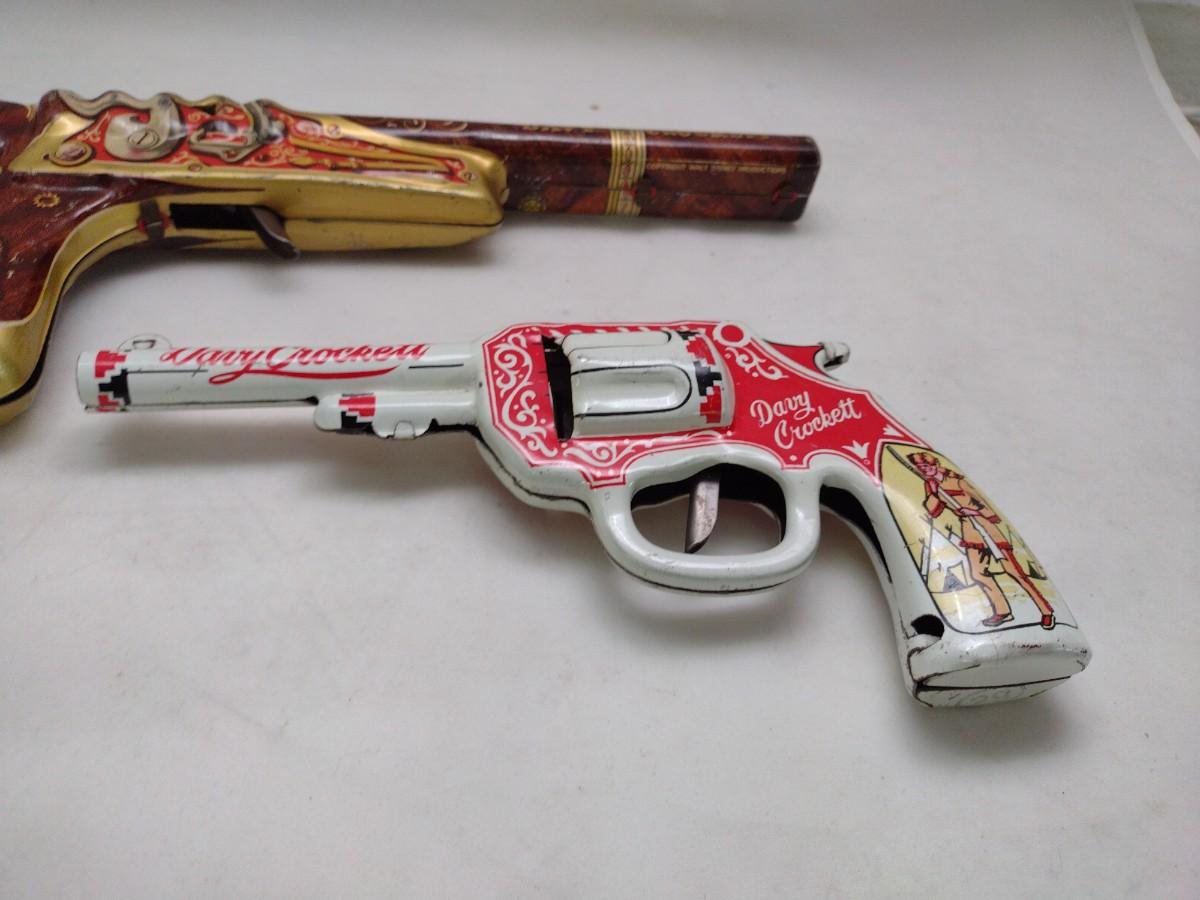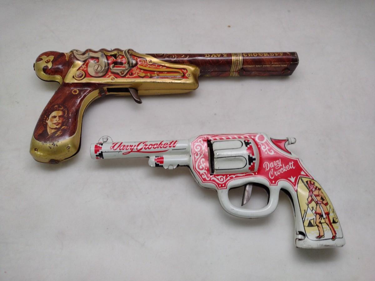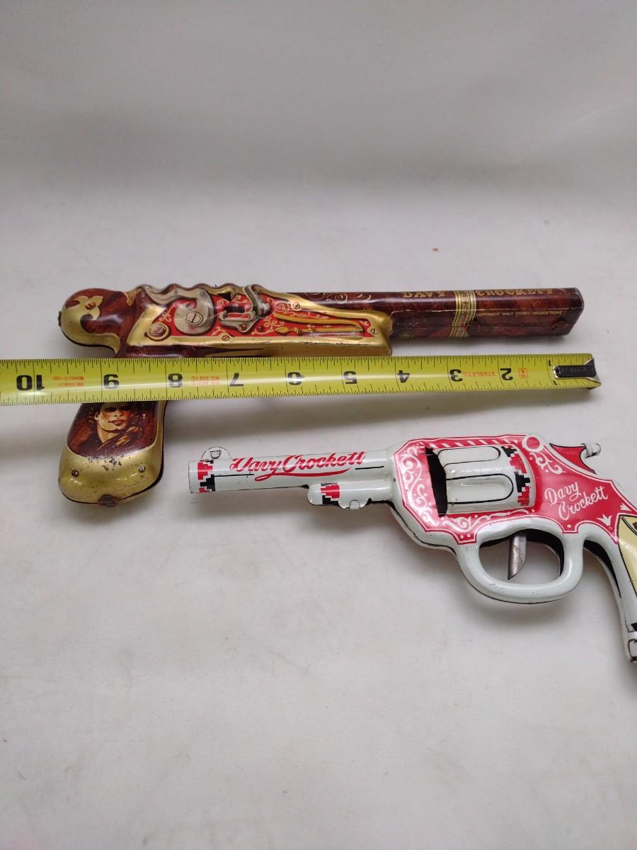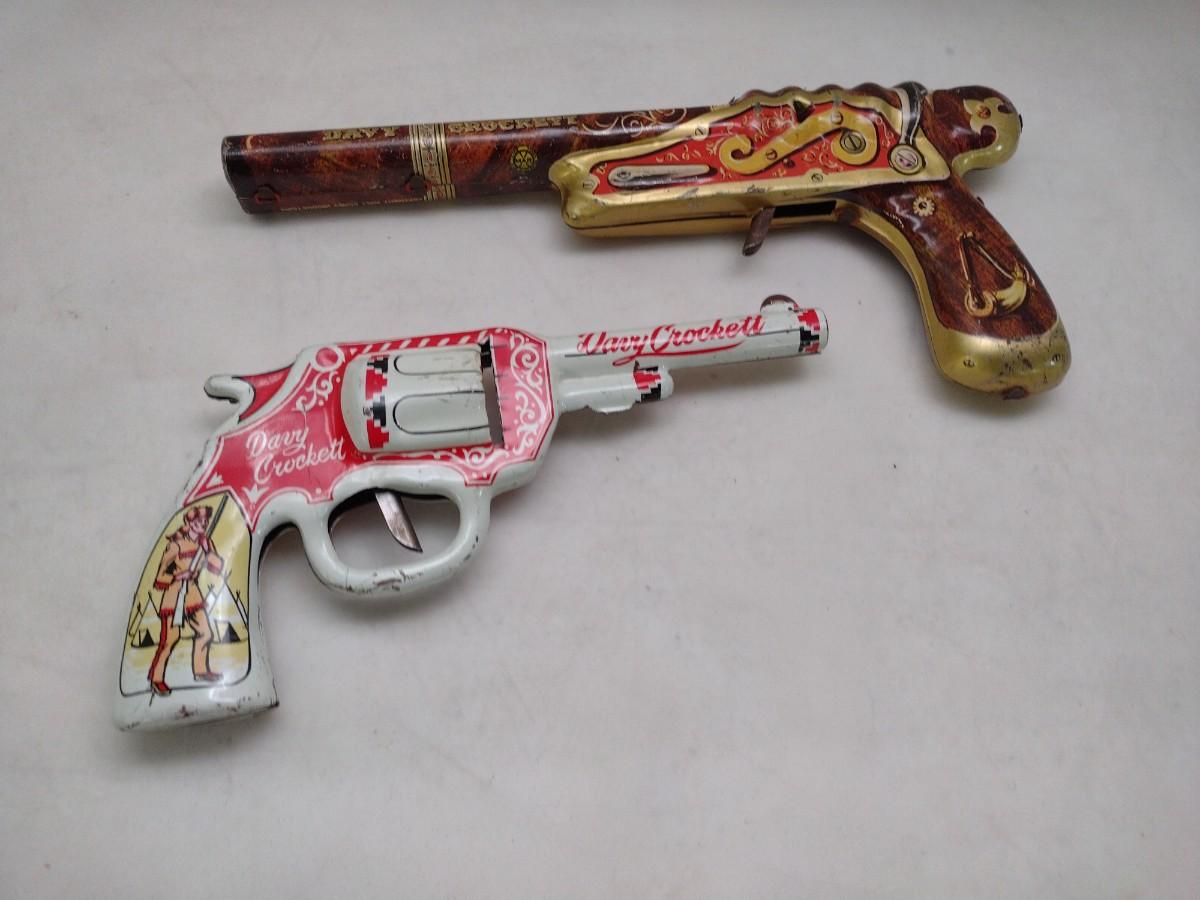 Pair of Pressed Tin Litho Davey Crockett Toy Clicker Guns includes Marx Disney Flintlock