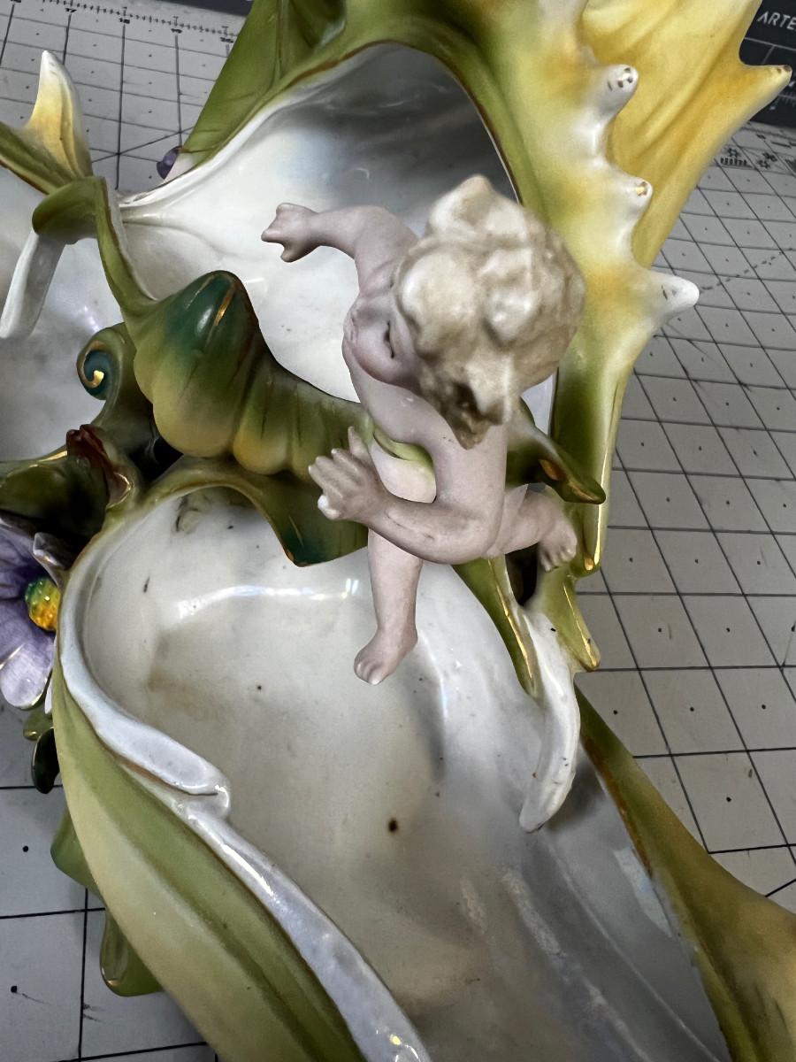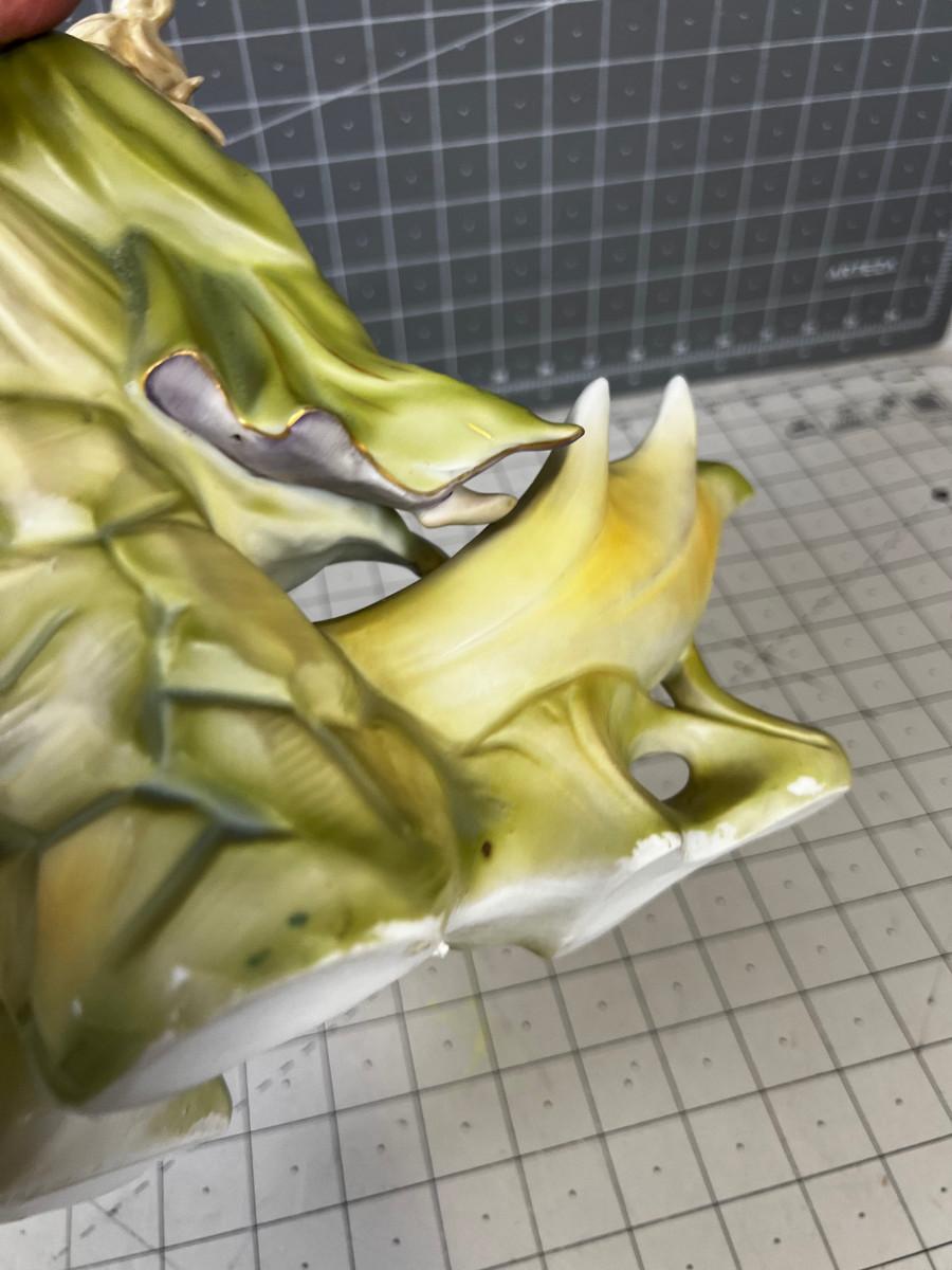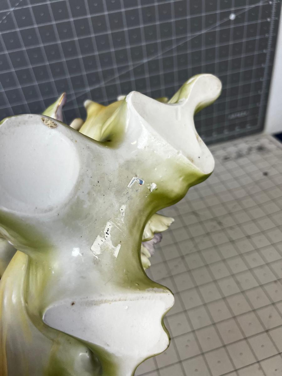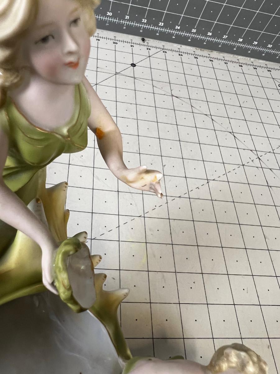 9" Tall DAMAGED to fingers. Pieces included. Not sure if all are there to be glued back together. Antique. If this Item requires shipping it will be taken to a 3rd party to need to be packed /shipped by a professional shipper. WE WILL NOT SHIP FOR YOU! We will ta
