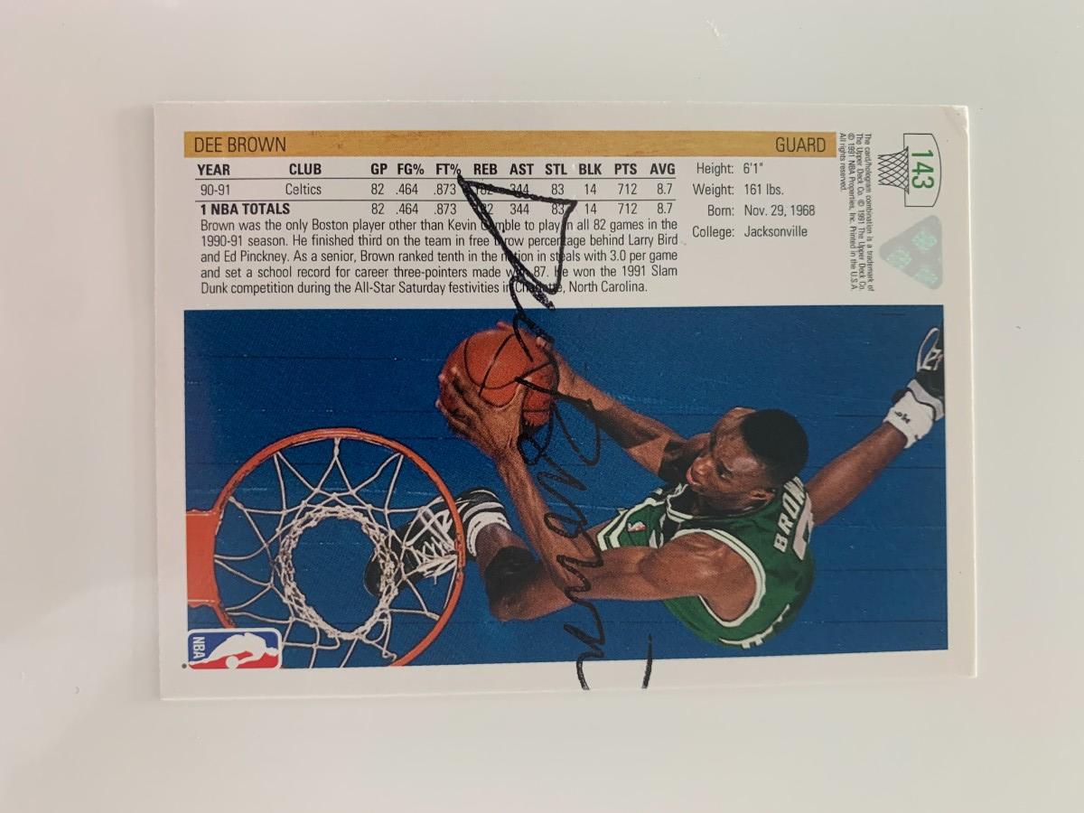 Dee Brown signed basketball card. Upper Deck 1992. 2x3 inches
