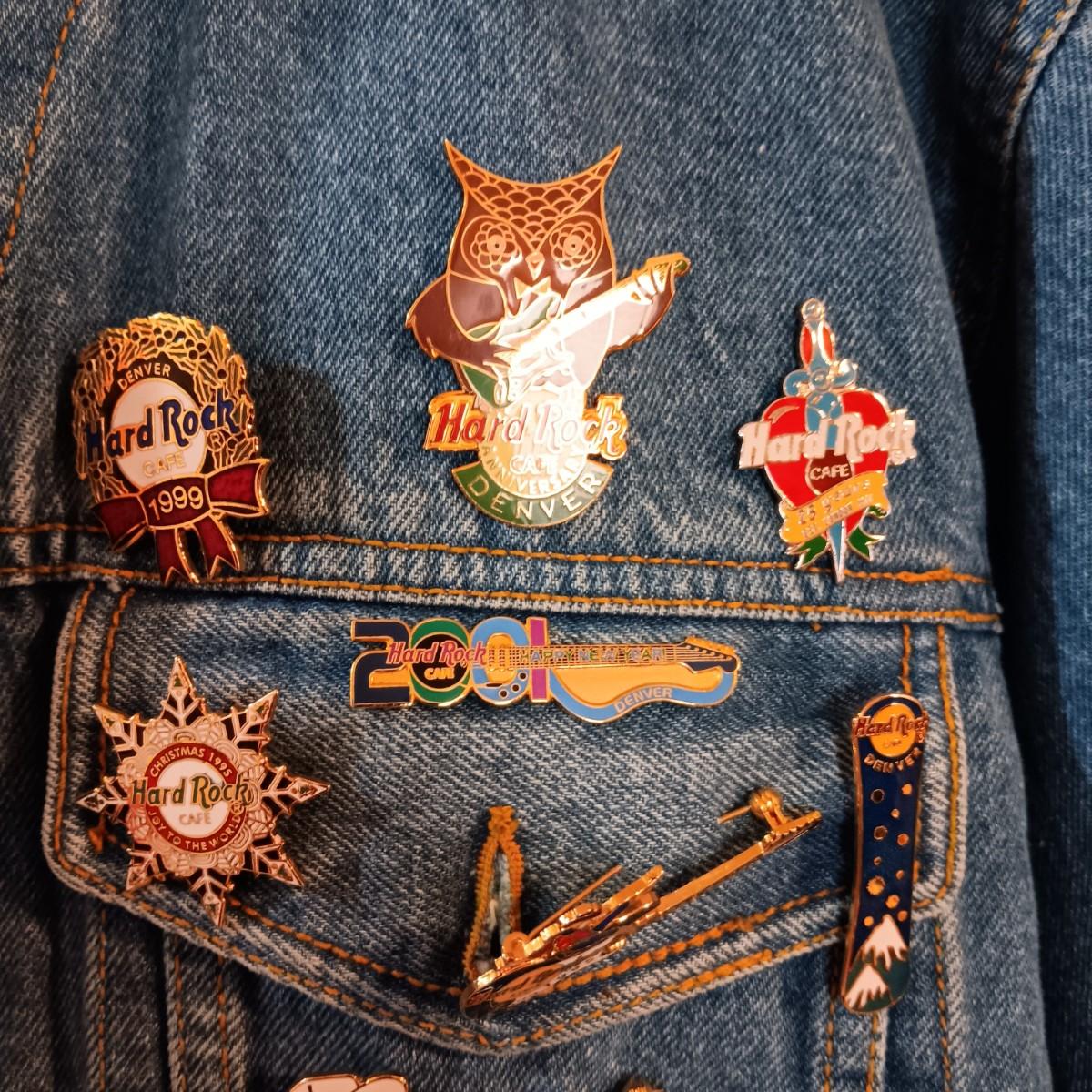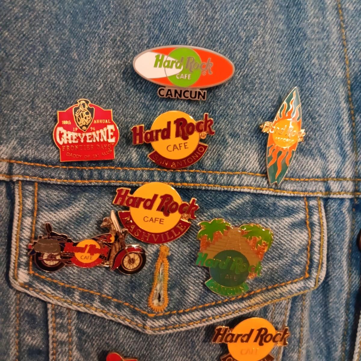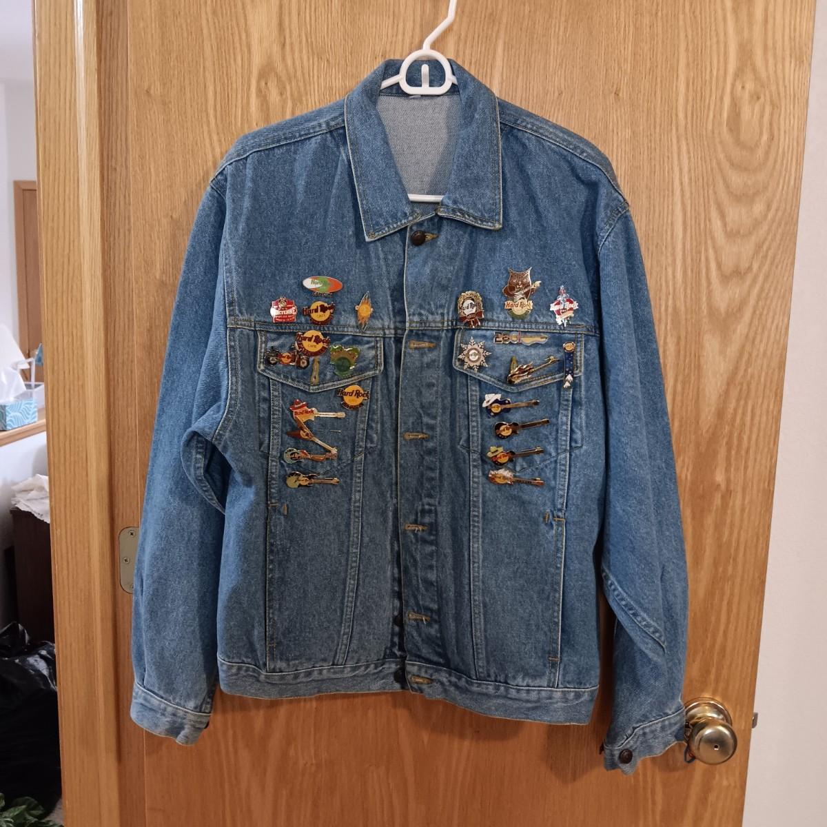 DENIM HARD ROCK CAFE JACKET WITH VARIOUS HARD ROCK PINS (XL)