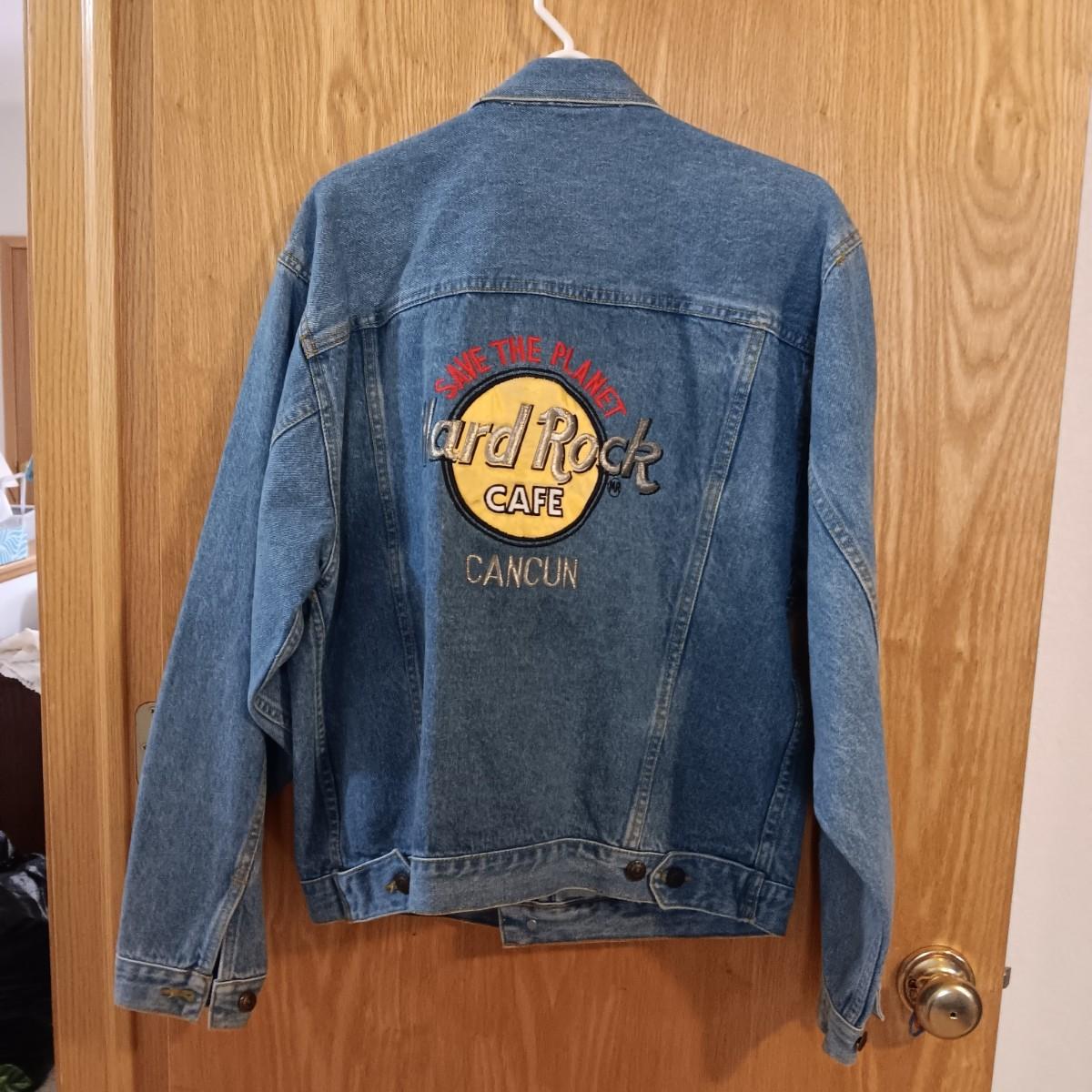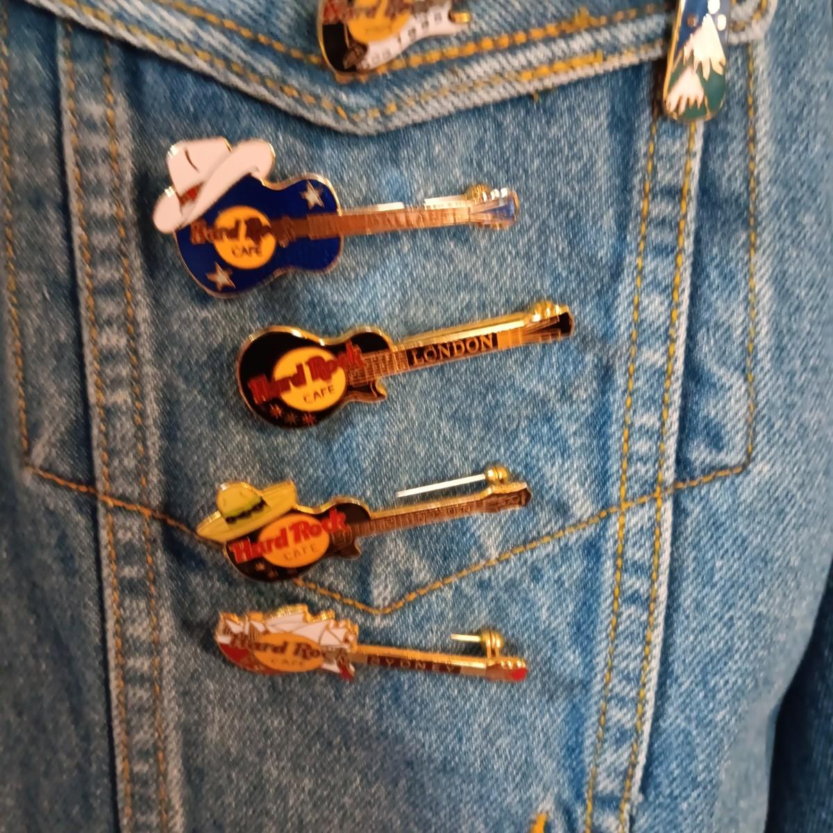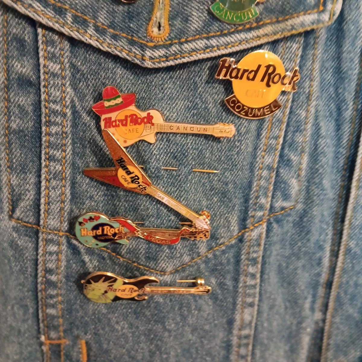 DENIM HARD ROCK CAFE JACKET WITH VARIOUS HARD ROCK PINS (XL)