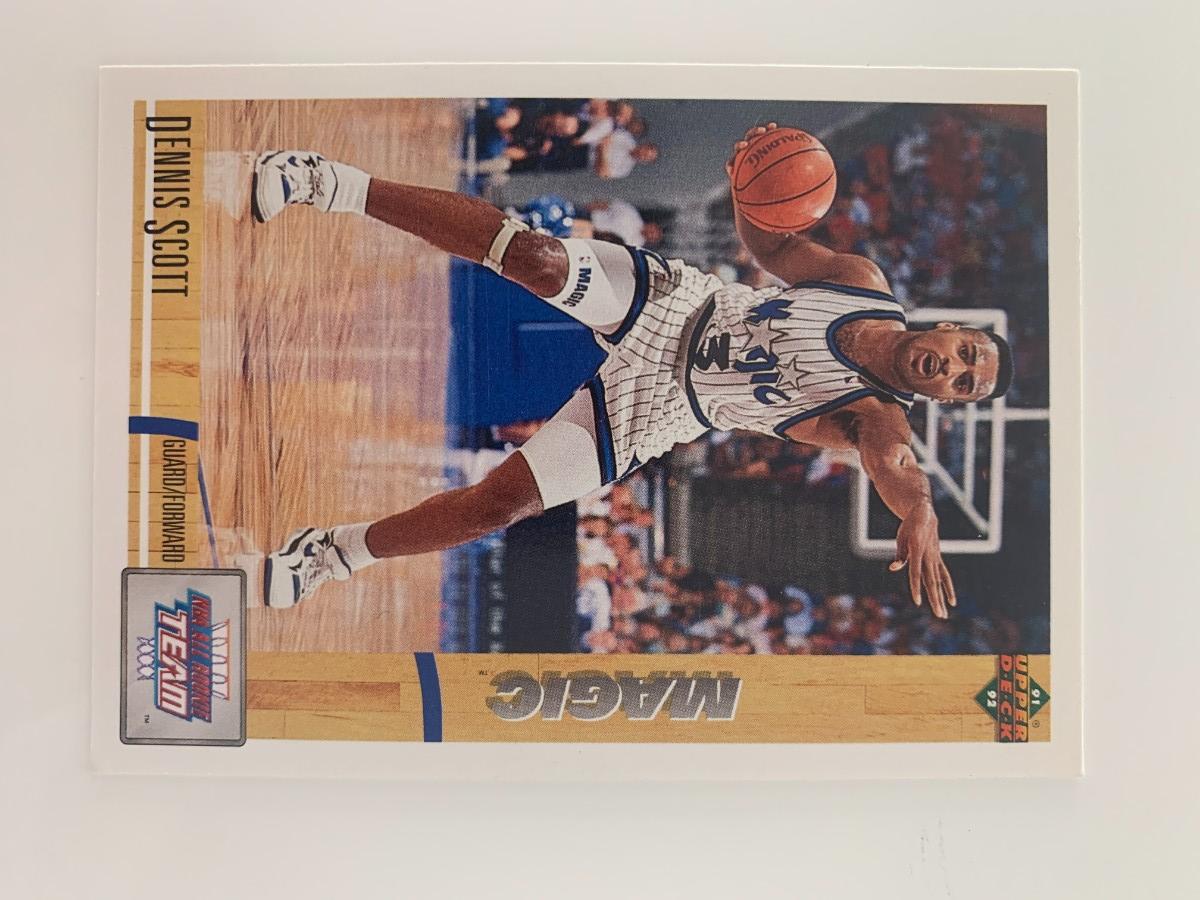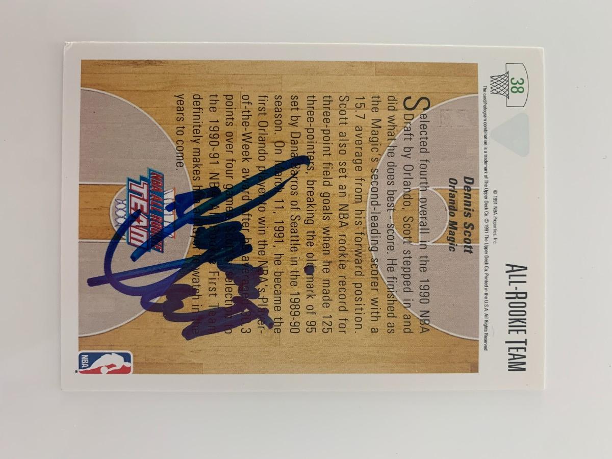 Dennis Scott signed basketball card. Upper Deck 1991. 2x3 inches