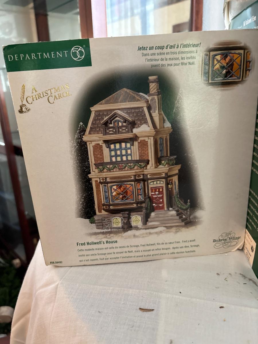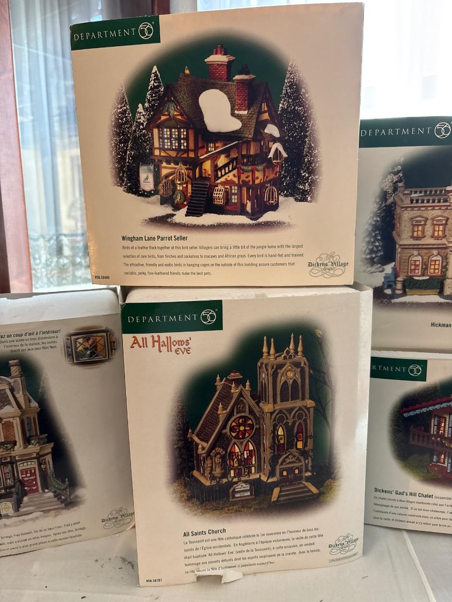 Five department 56 Dickens Village houses in boxes