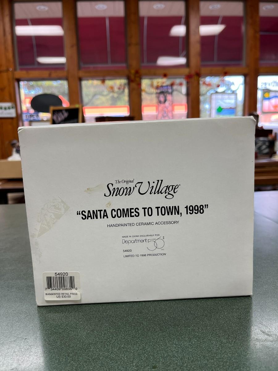 Dept 56 Original Snow Village Santa Comes To Town 1998. Includes Box, Styrofoam Packer. No chips or scratches.