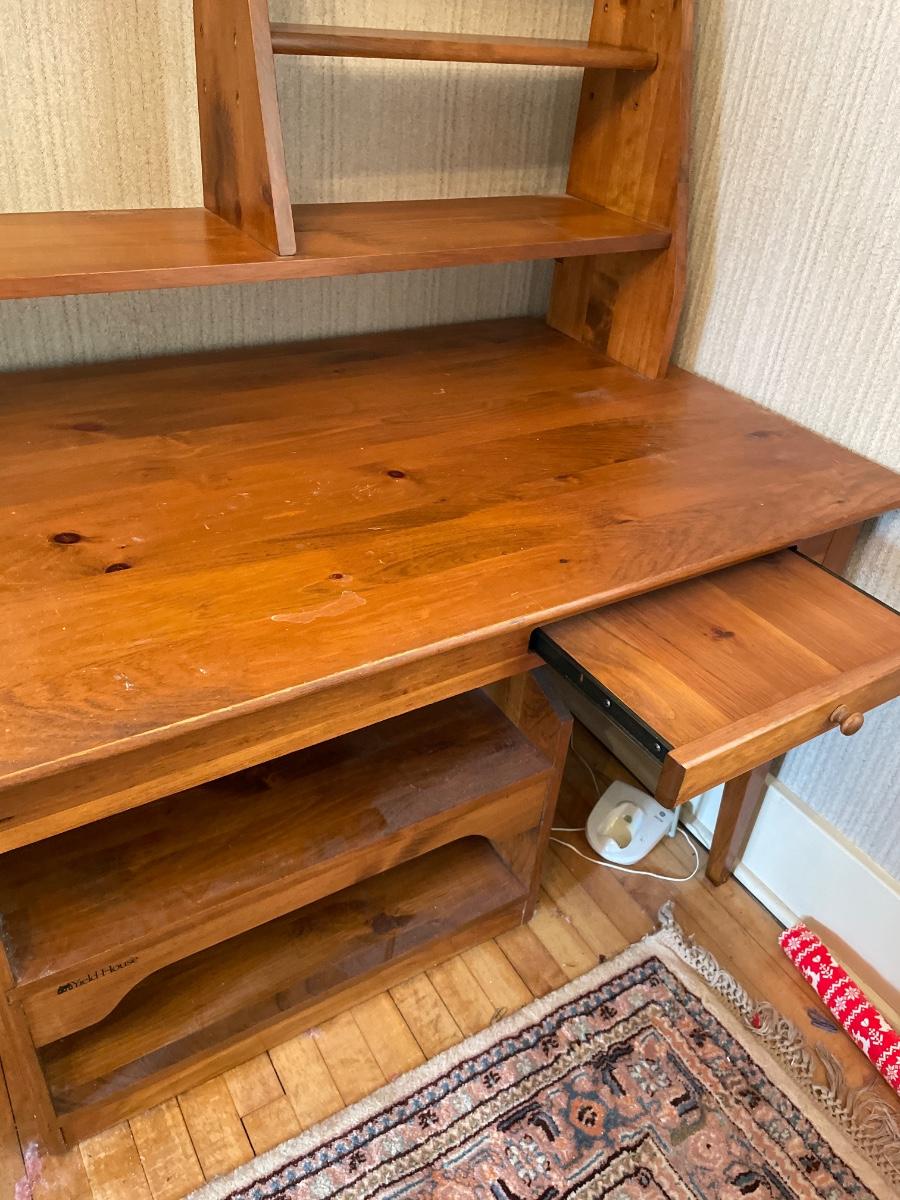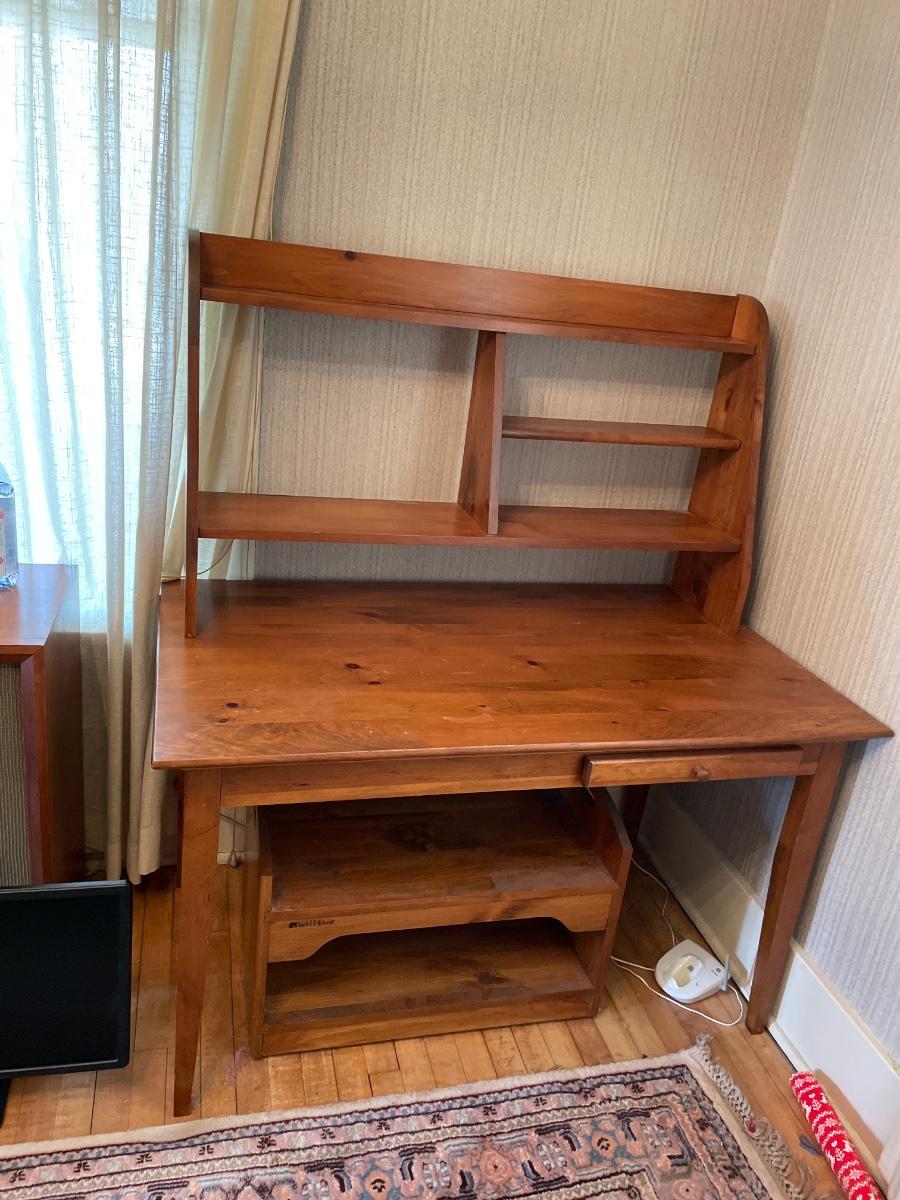 48x 27x28 desk. Top piece 44x10z37. Lower shelf 25x15x16 (on wheels)