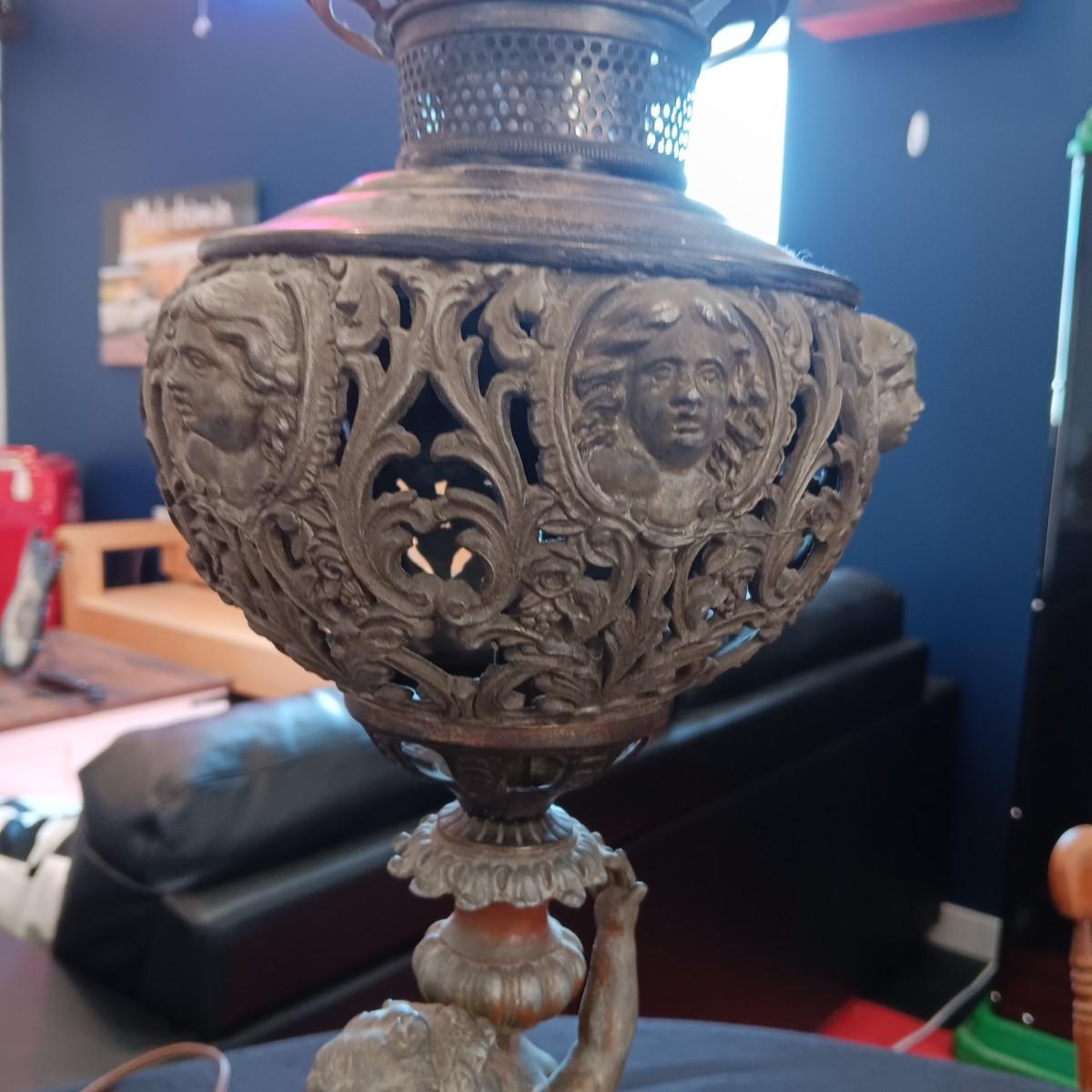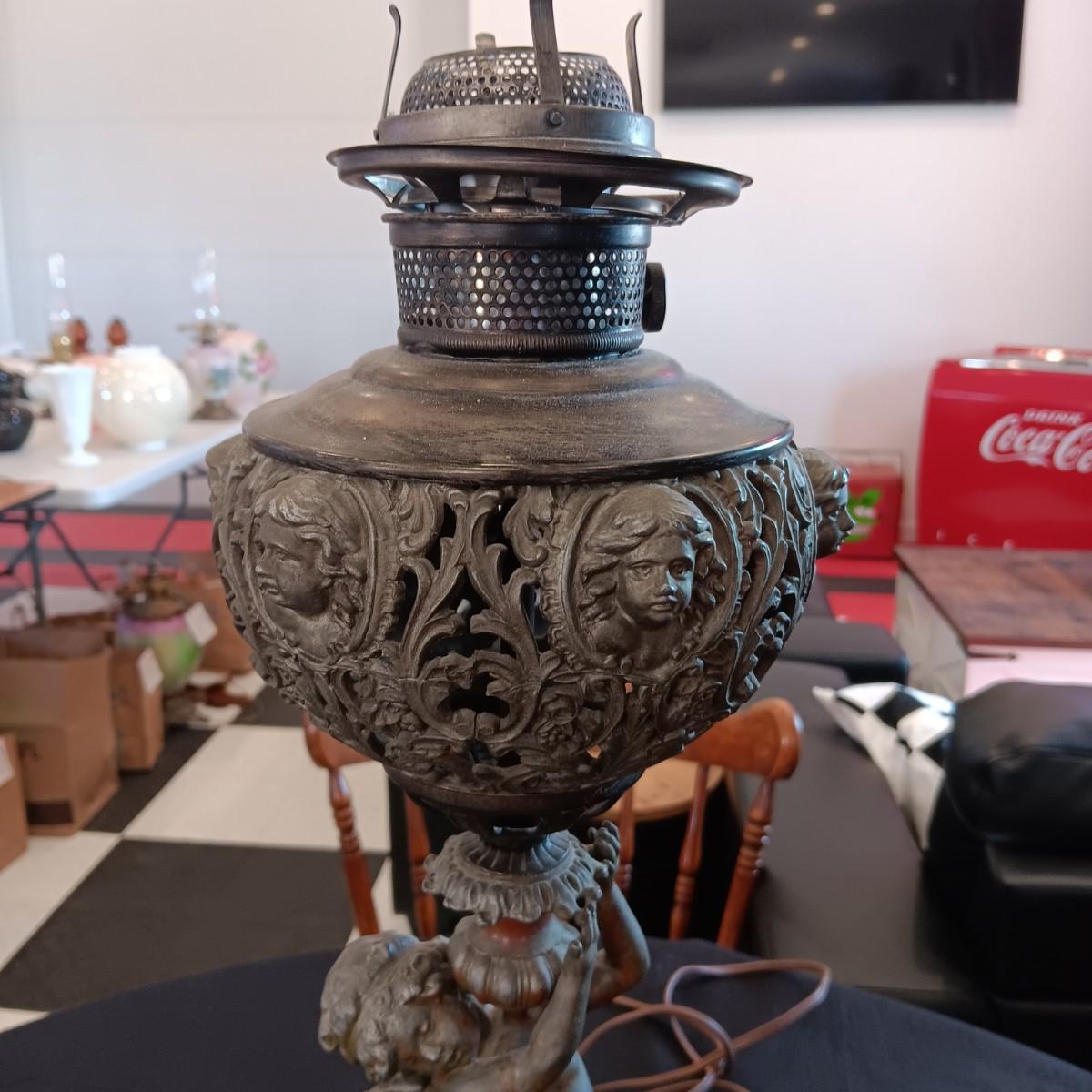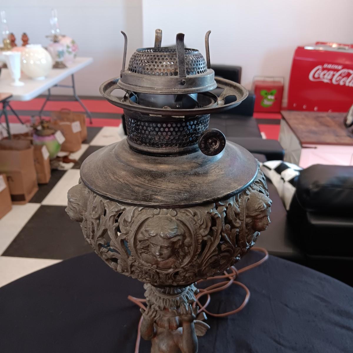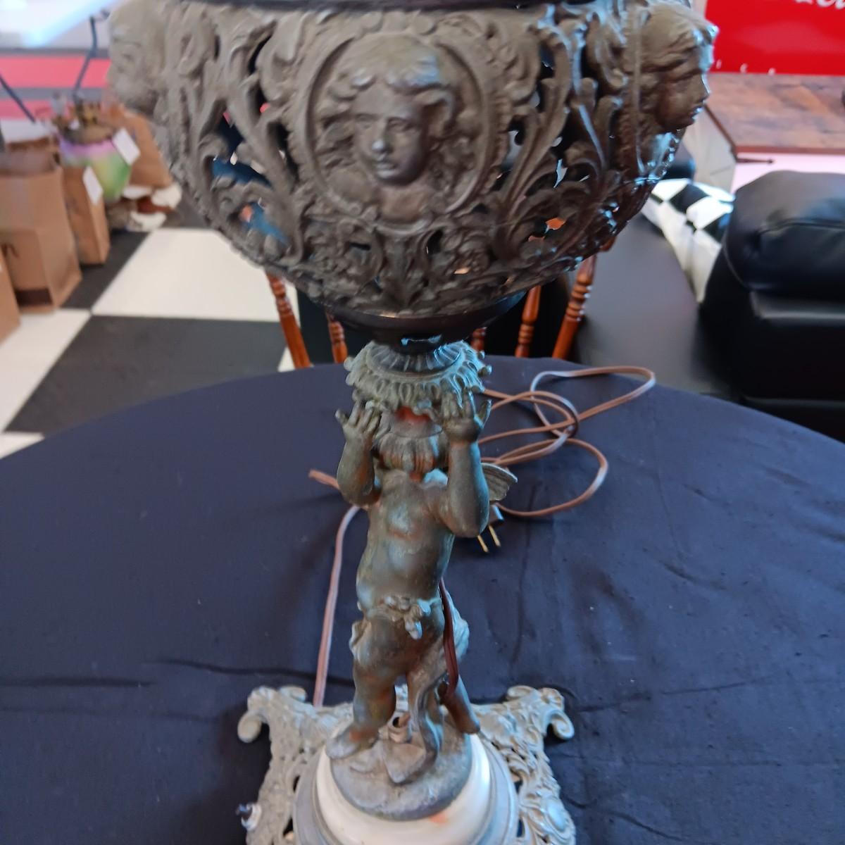 DETAILED BRASS CHERUB OIL LAMP CONVERTED TO ELECTRIC