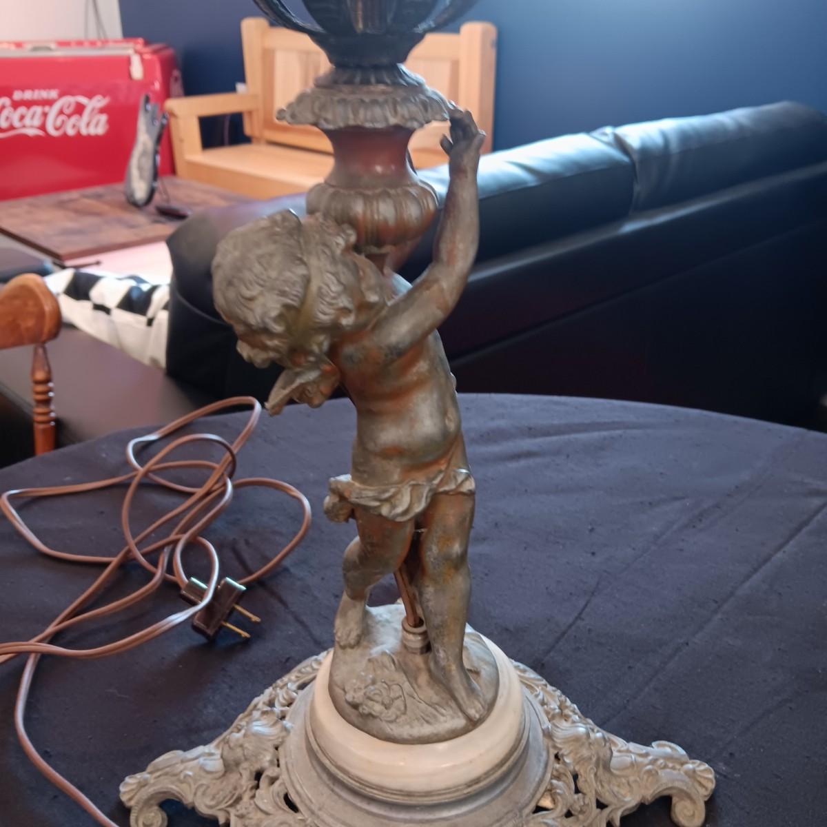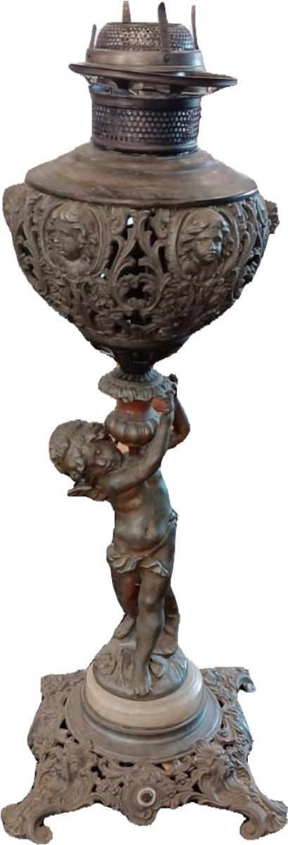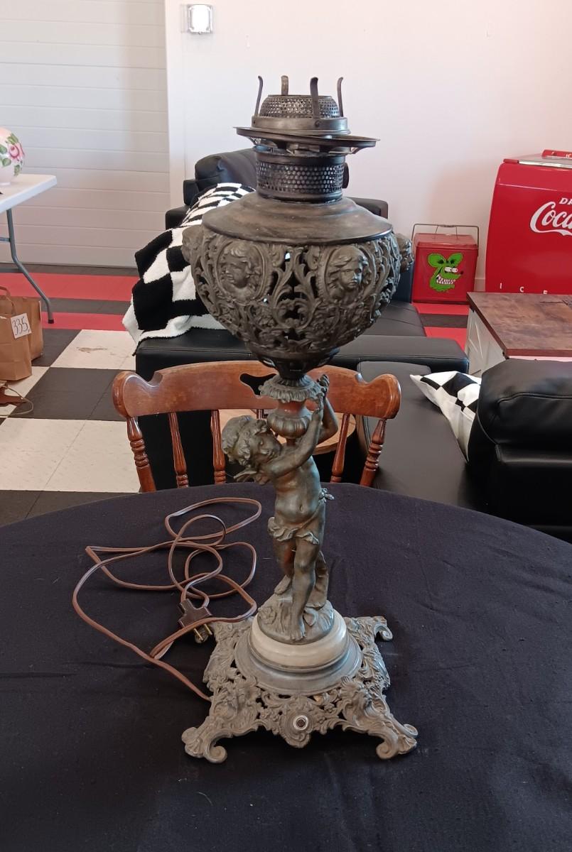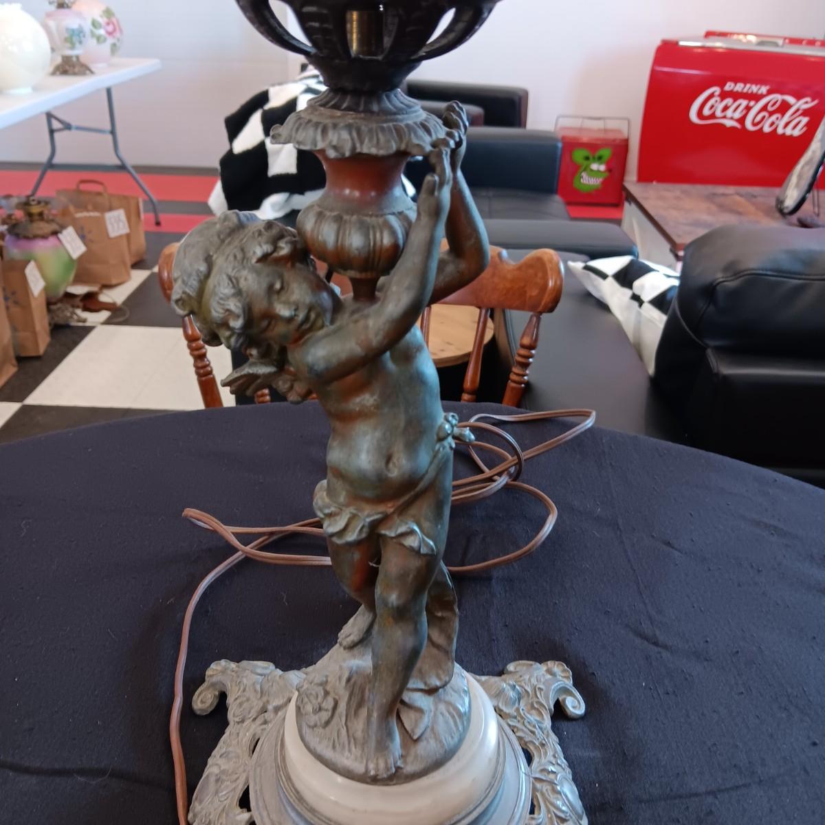DETAILED BRASS CHERUB OIL LAMP CONVERTED TO ELECTRIC