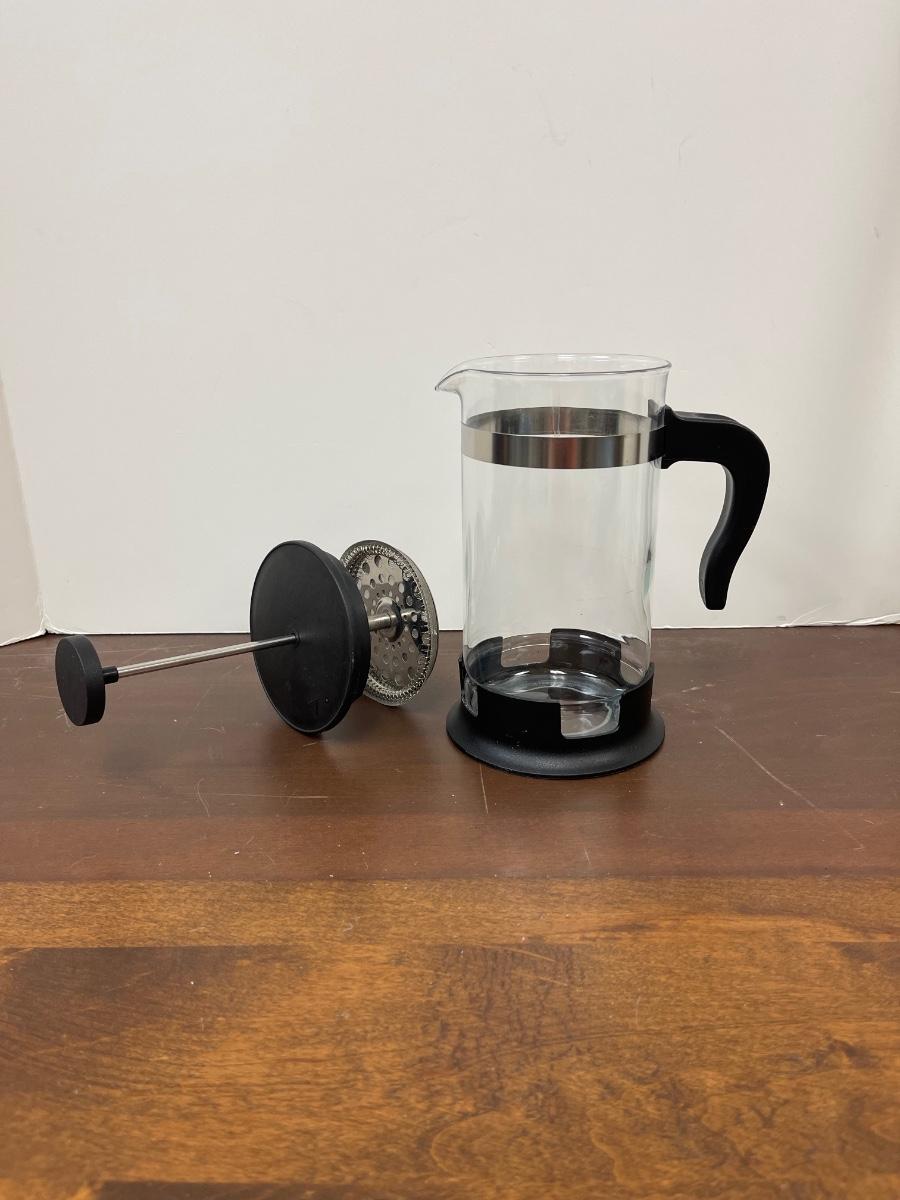 French Coffee Press Black Handle and Lid with Glass Carafe. In good condition. From IKEA.