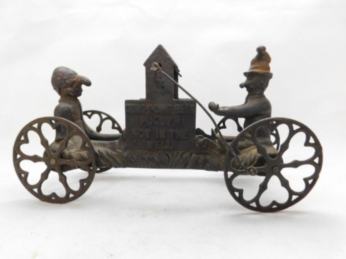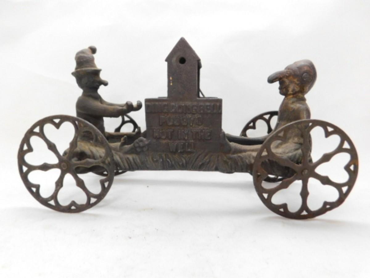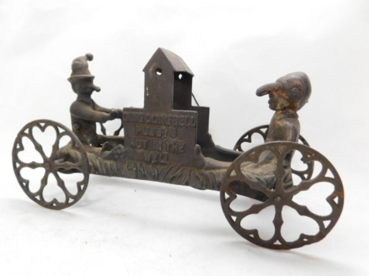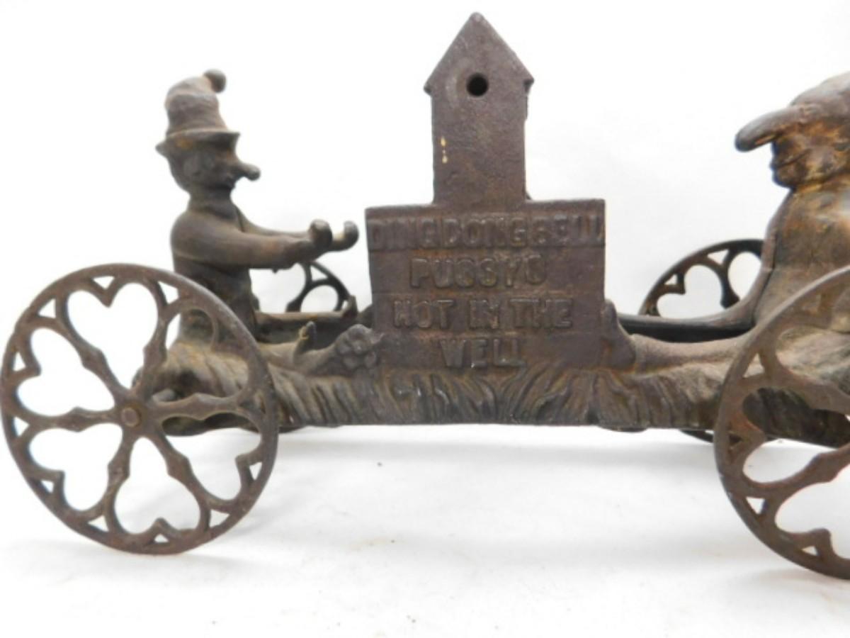 Rare Antique Gong Bell Manufacturing Mid-1800's Ding Dong Bell Cast Toy missing the bell and cat as shown