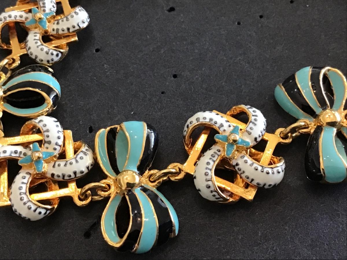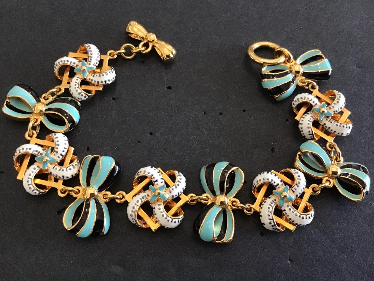 Distinctly British. Blues and Bows Gold Plated TOOGLE Enamel Bracelet