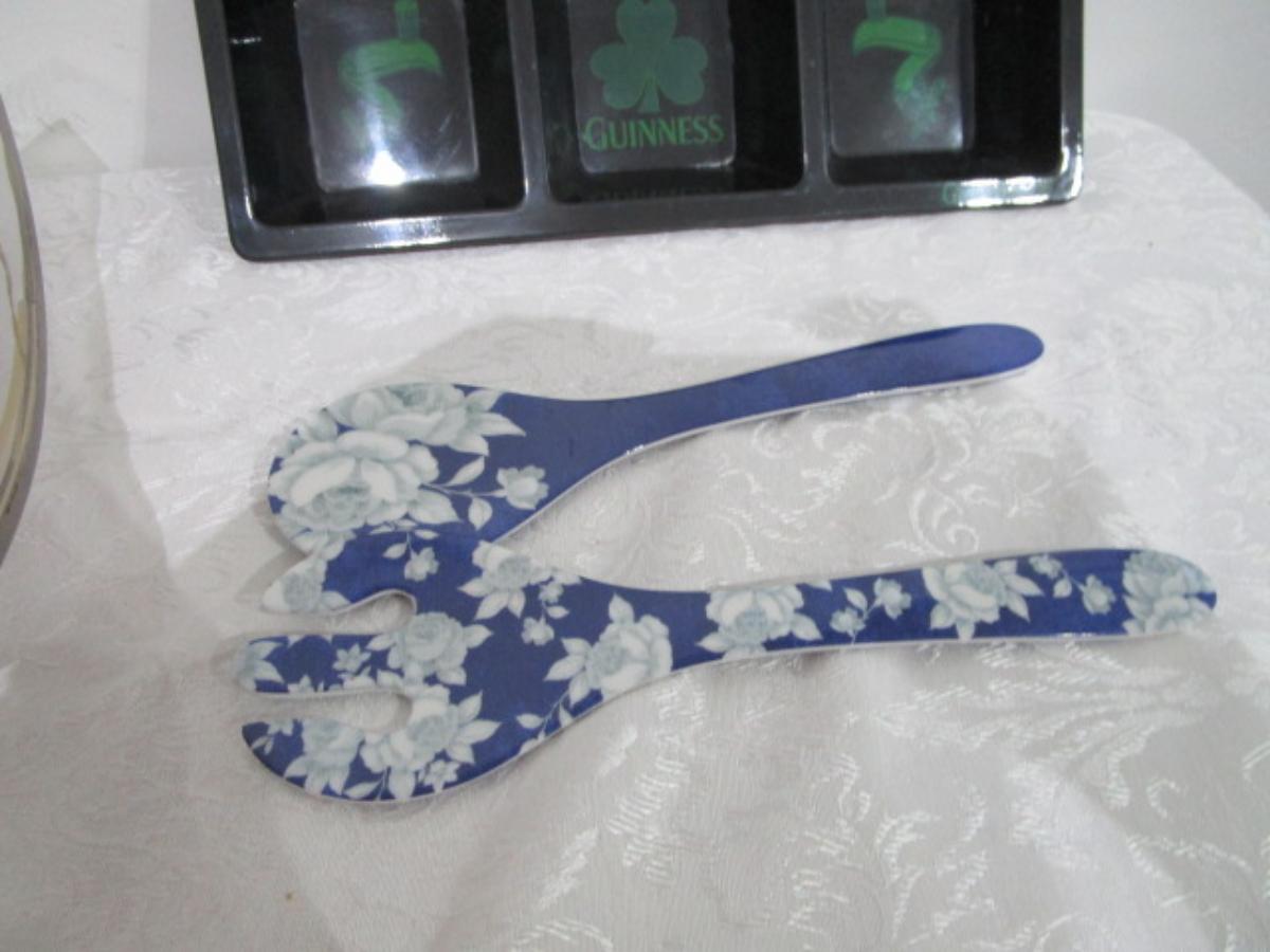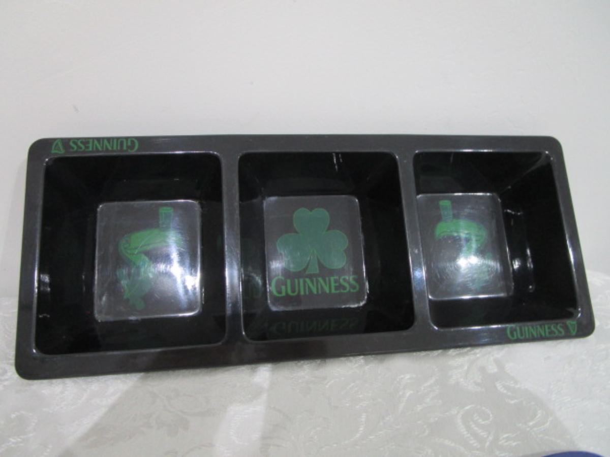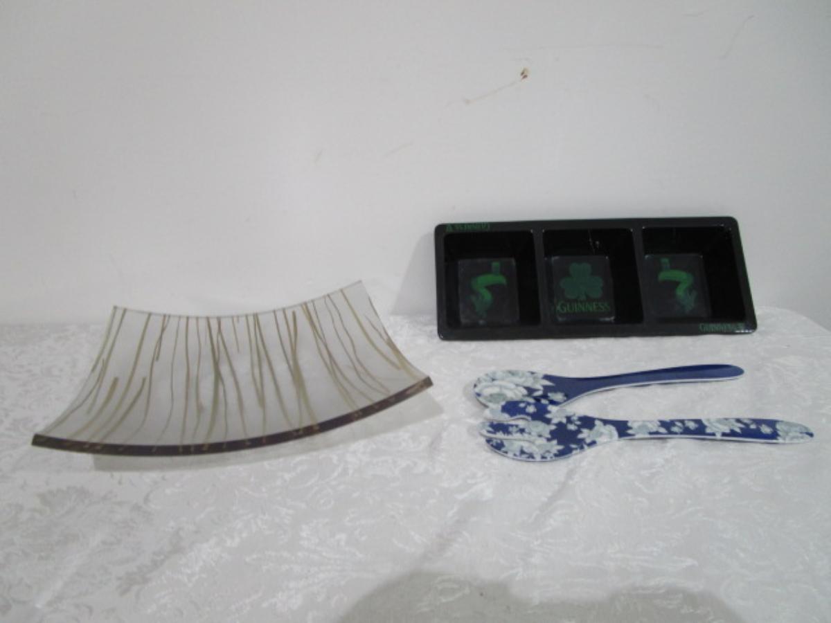 Divided Guiness tray, moulded glass tray, spoon & fork set