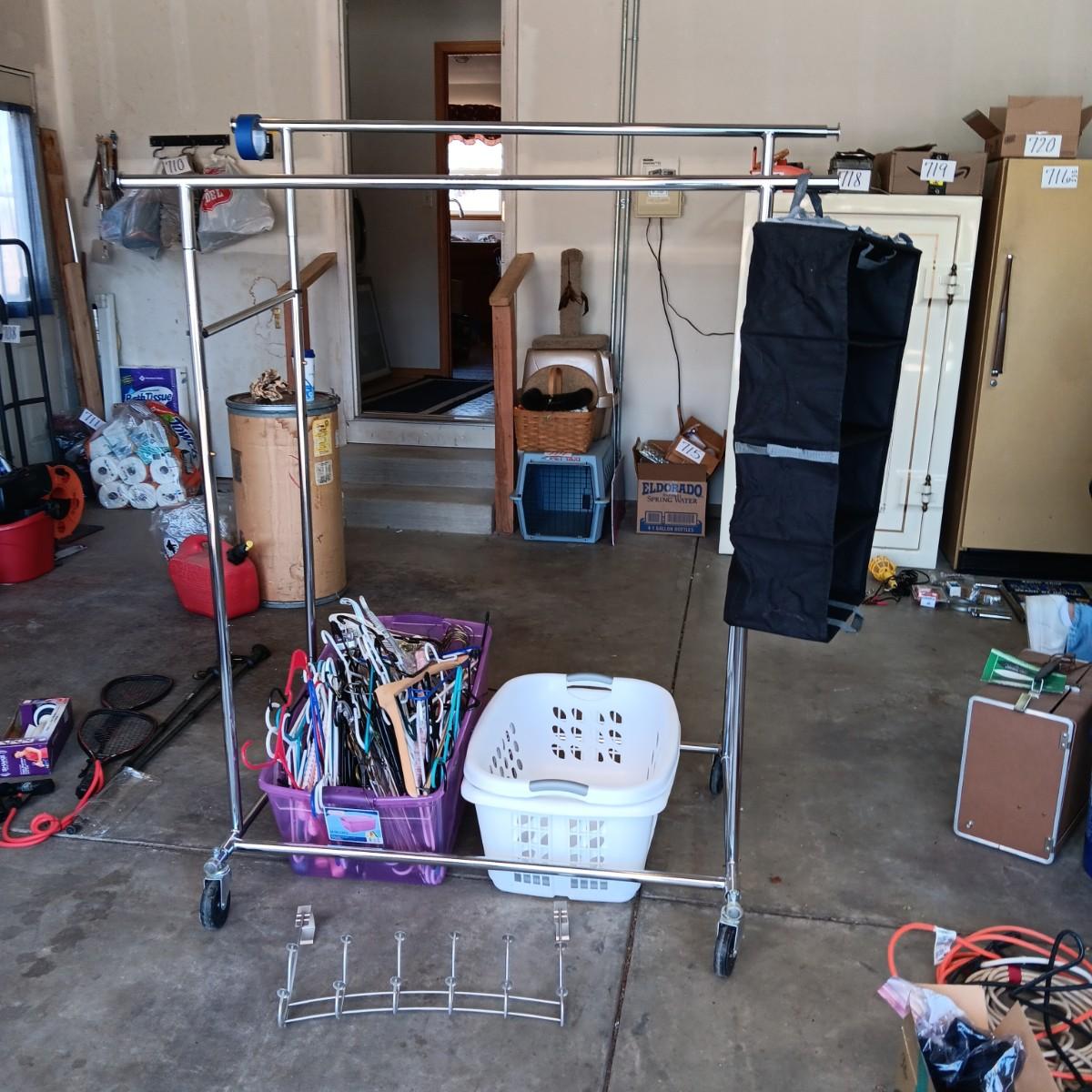 DOUBLE ROD GARMENT RACK, LAUNDRY BASKETS, COAT HANGERS AND DOOR HANGER