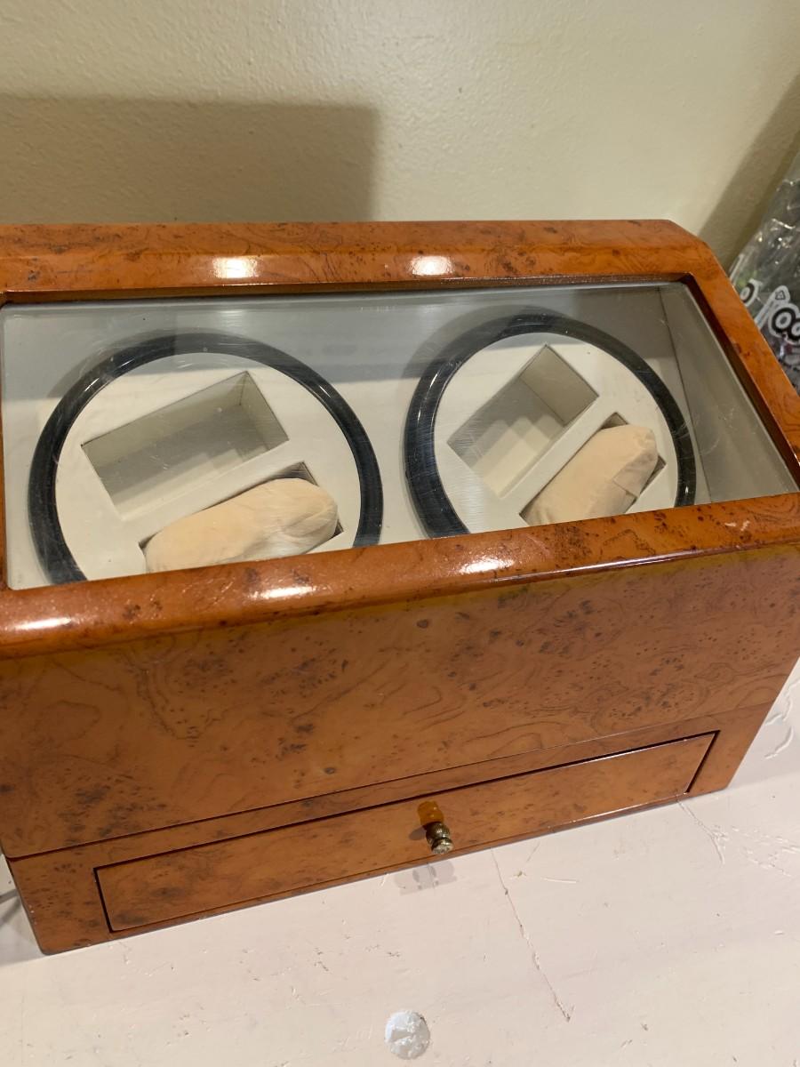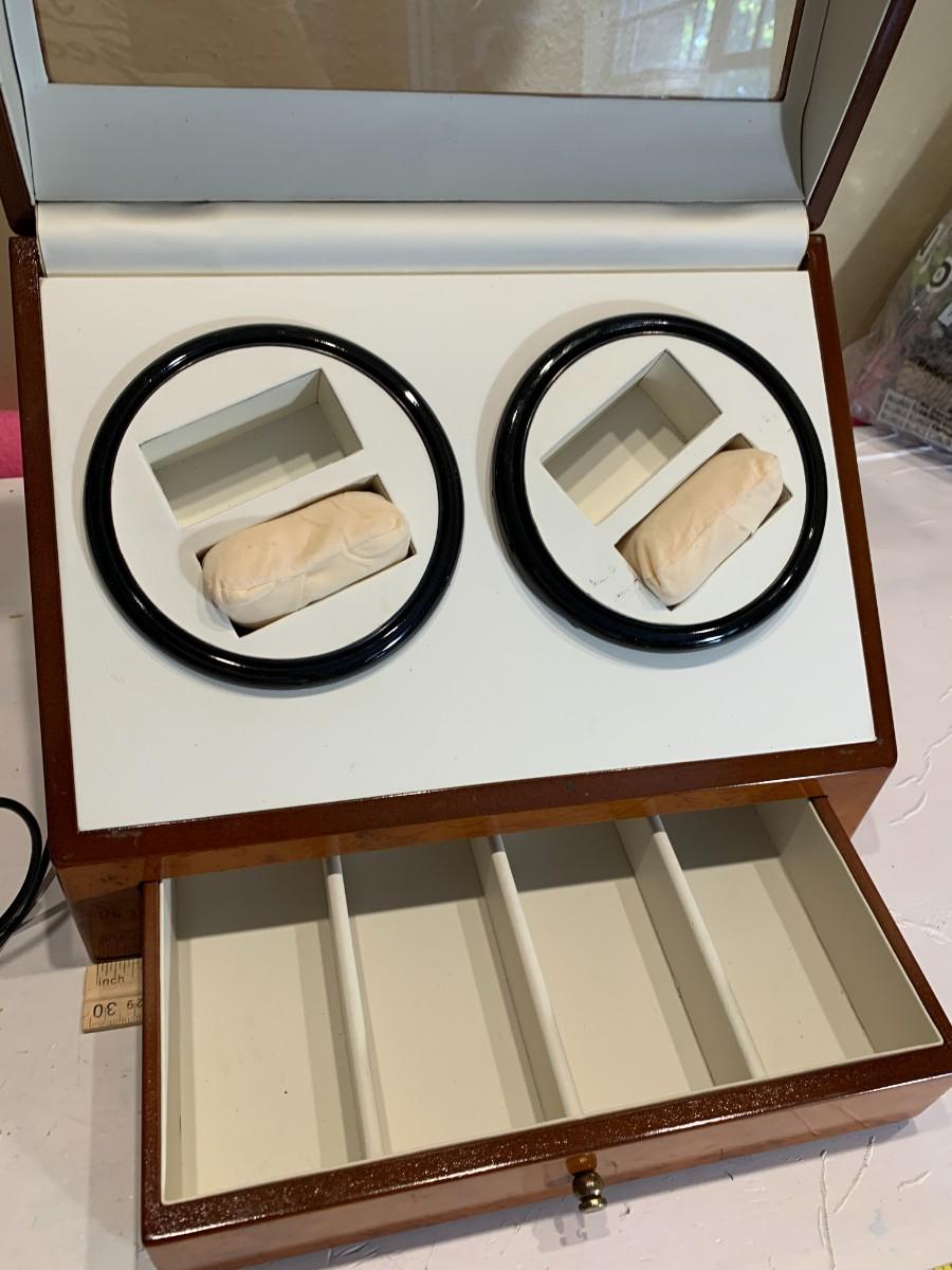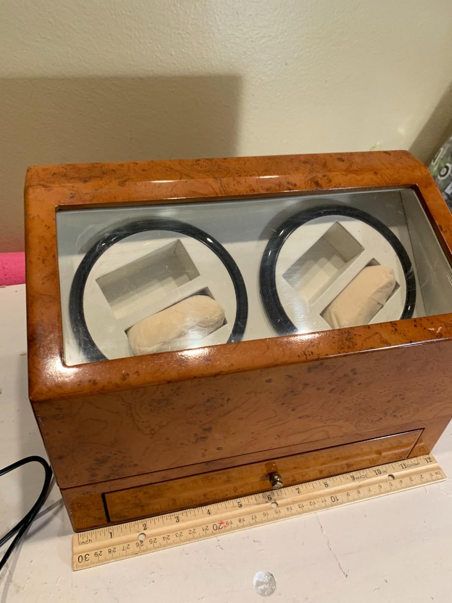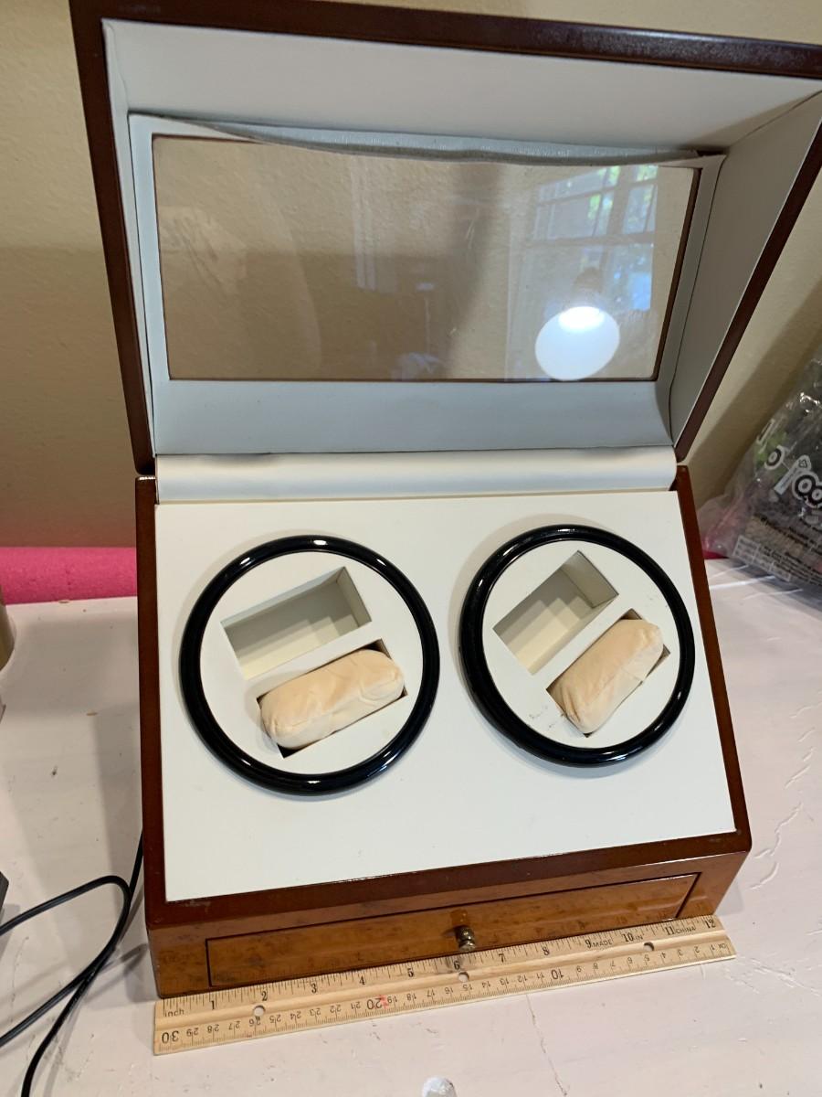 This is a watch winder for self winding watches. This spins the watch to simulate you wearing it.