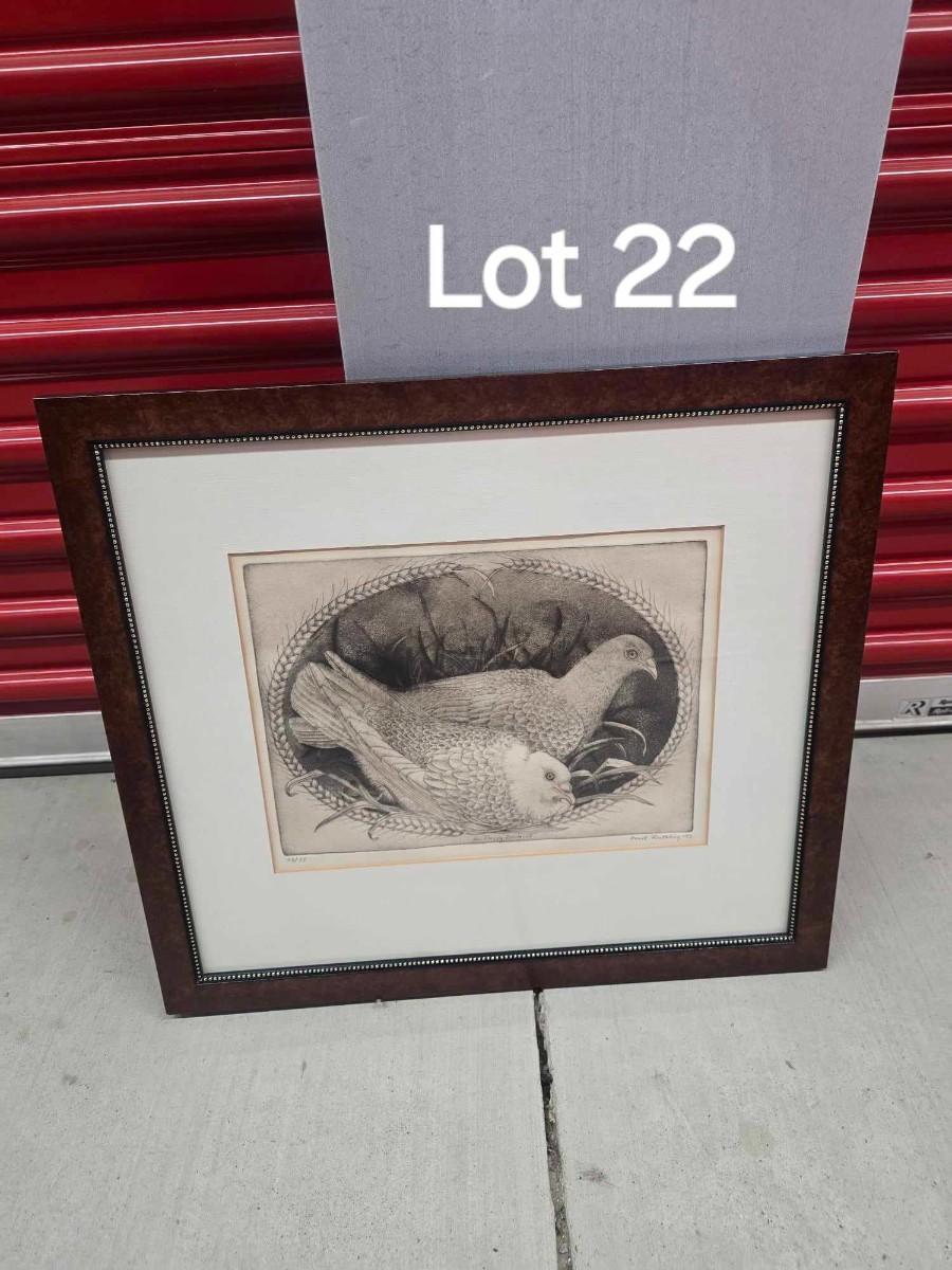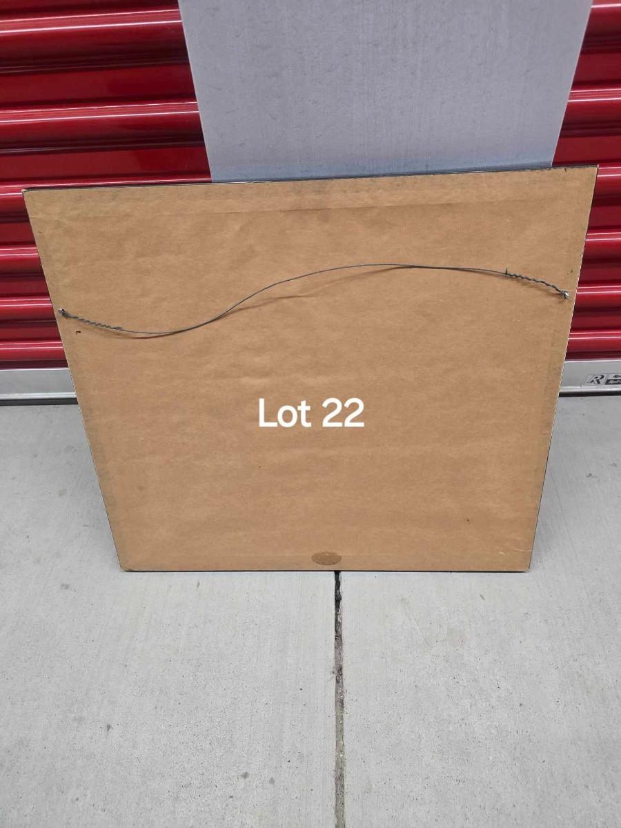 This piece measures 20 by 18 with frame and the art is 12 x 9 and weighs 4.5 pounds