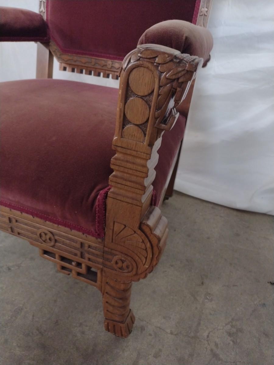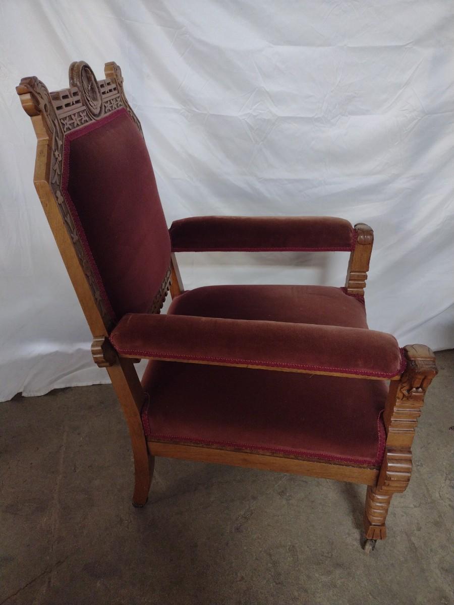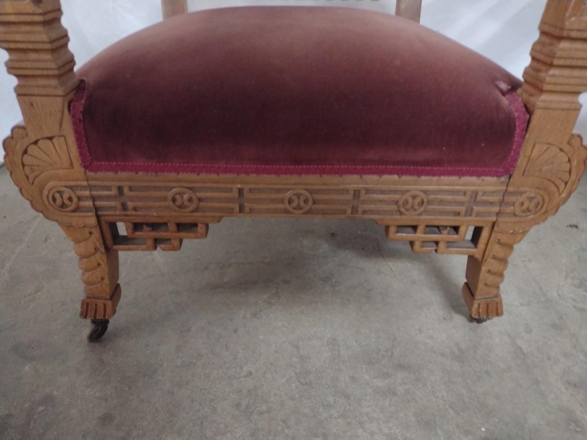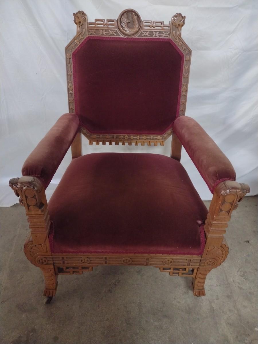 Antique Chinoiserie Wood Frame Figural Carved Dragon Upholstered Chair