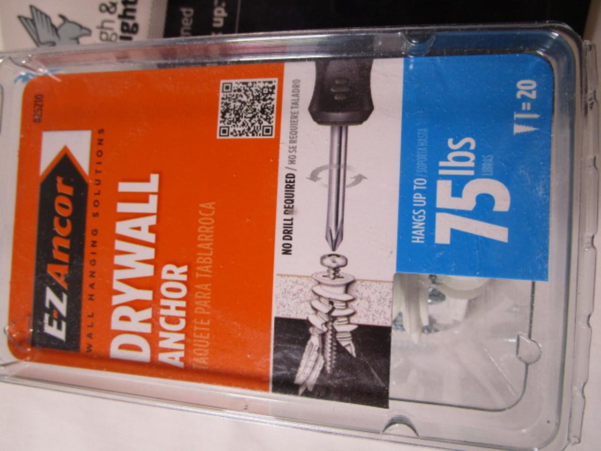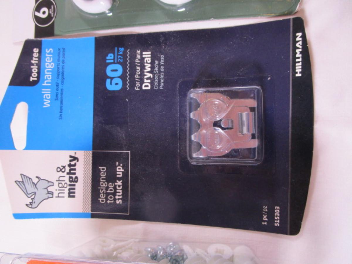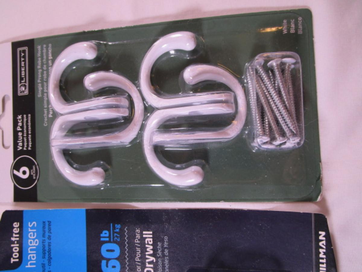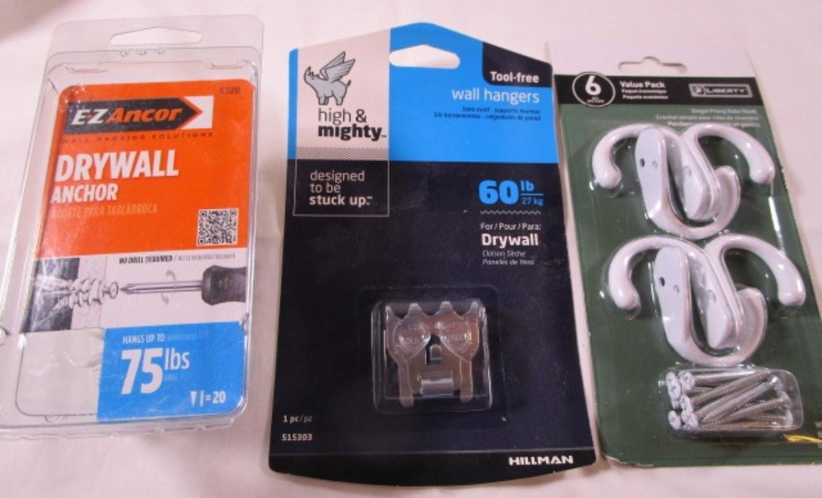 Drywall anchors, pictures hangers, single-prong robe hooks