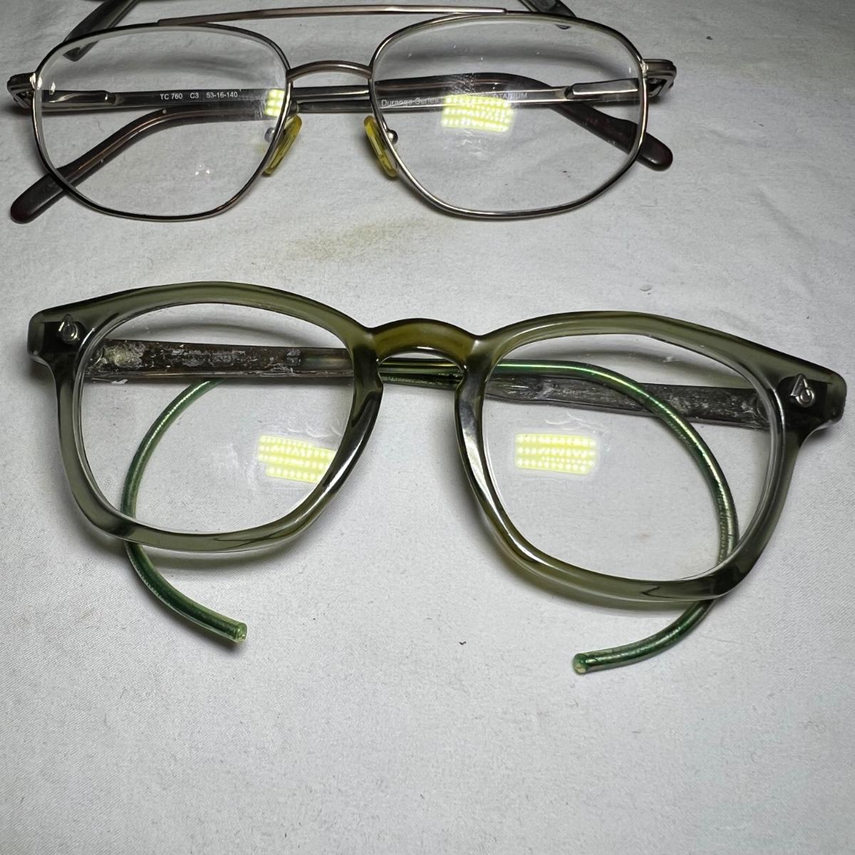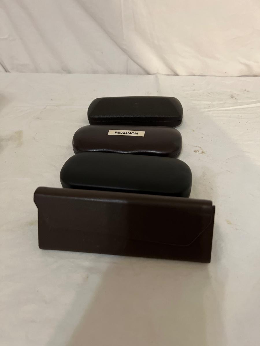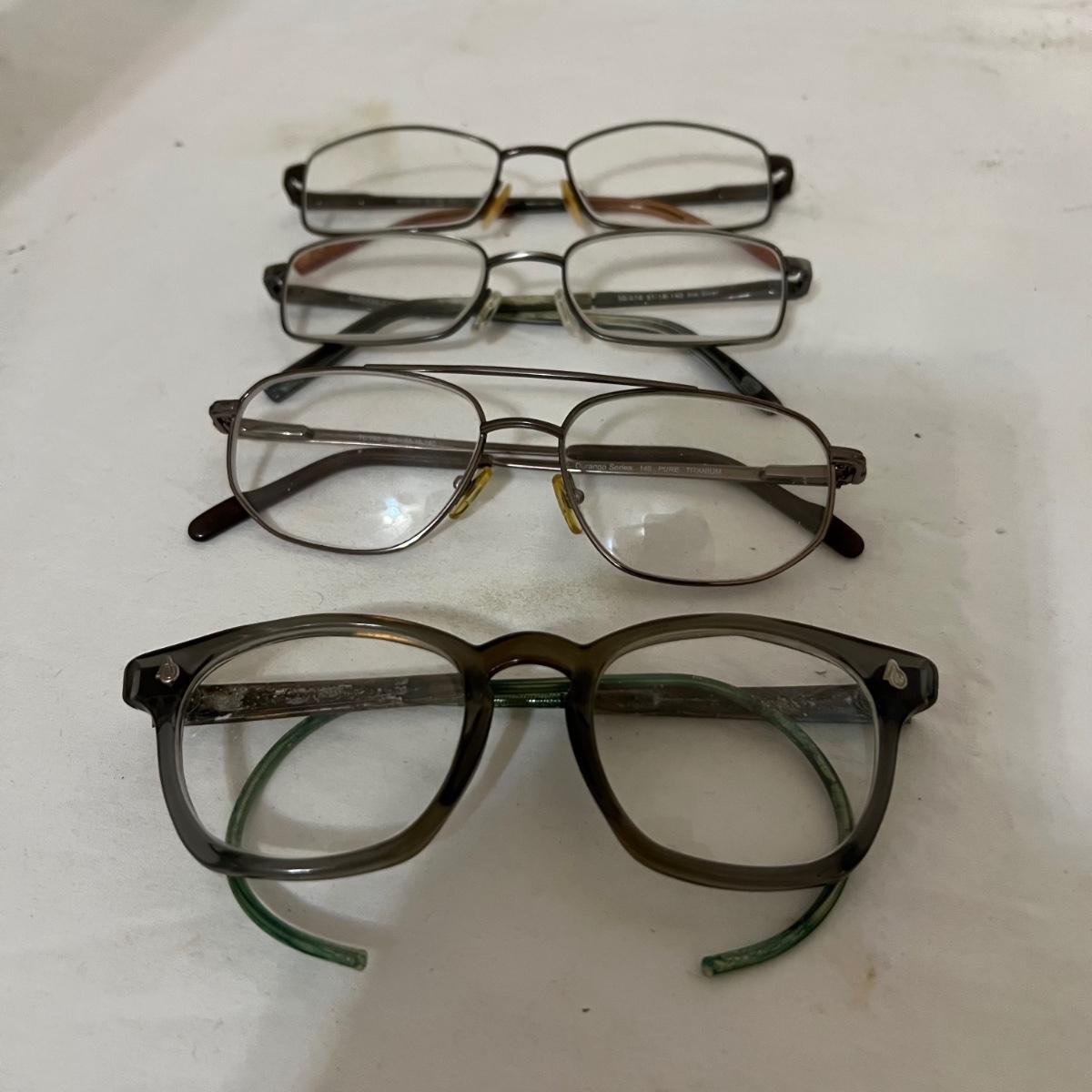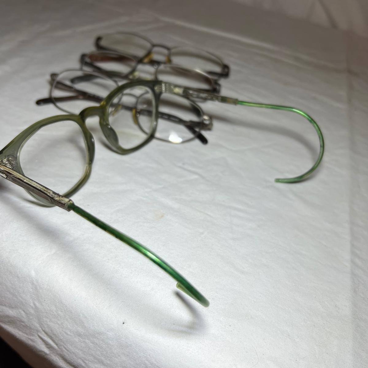 Four pairs of prescription glasses includes a pair of Durango. The green glasses that curve around the ear have no visible markings. All have cases that may not be original to the glasses. See images for more information.