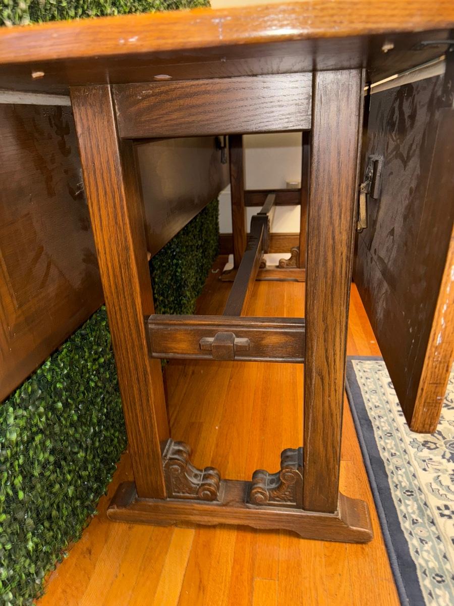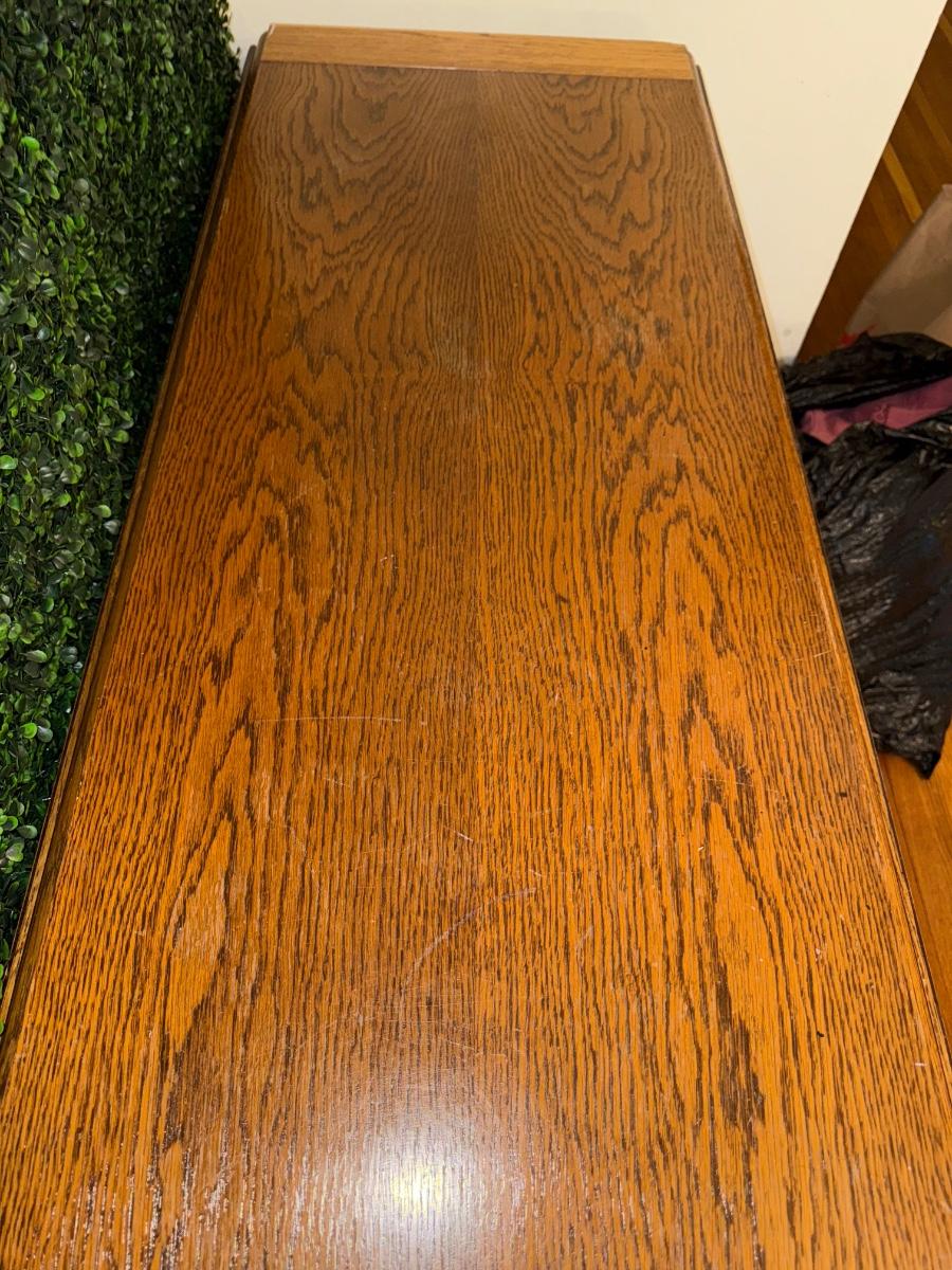 The top surface is 18 inches wide with each drop Leaf being an additional 12 inches apiece