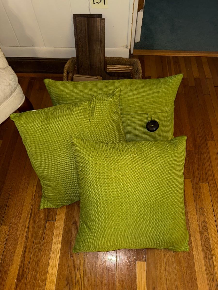 E37-Green throw pillows and corner shelves
