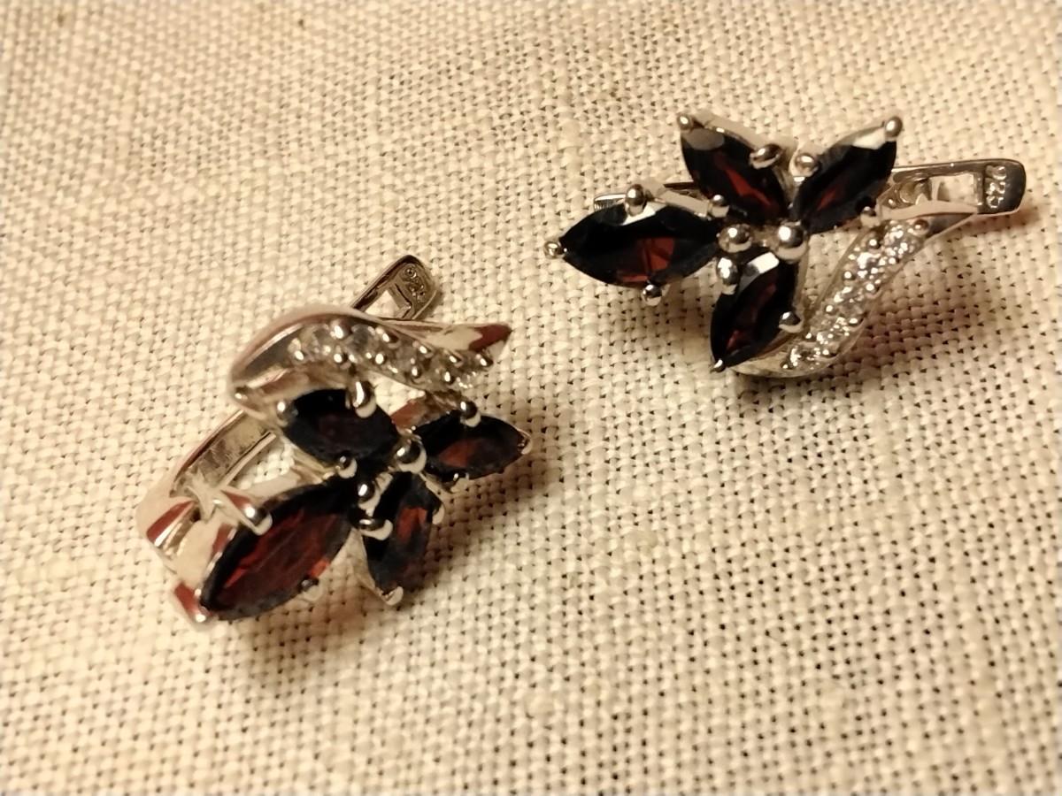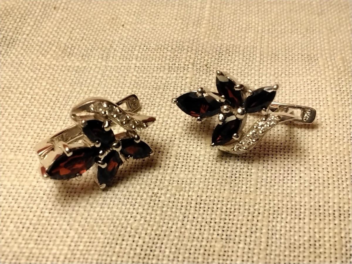 Gorgeous Garnet and White Sapphire Sterling Silver Earrings