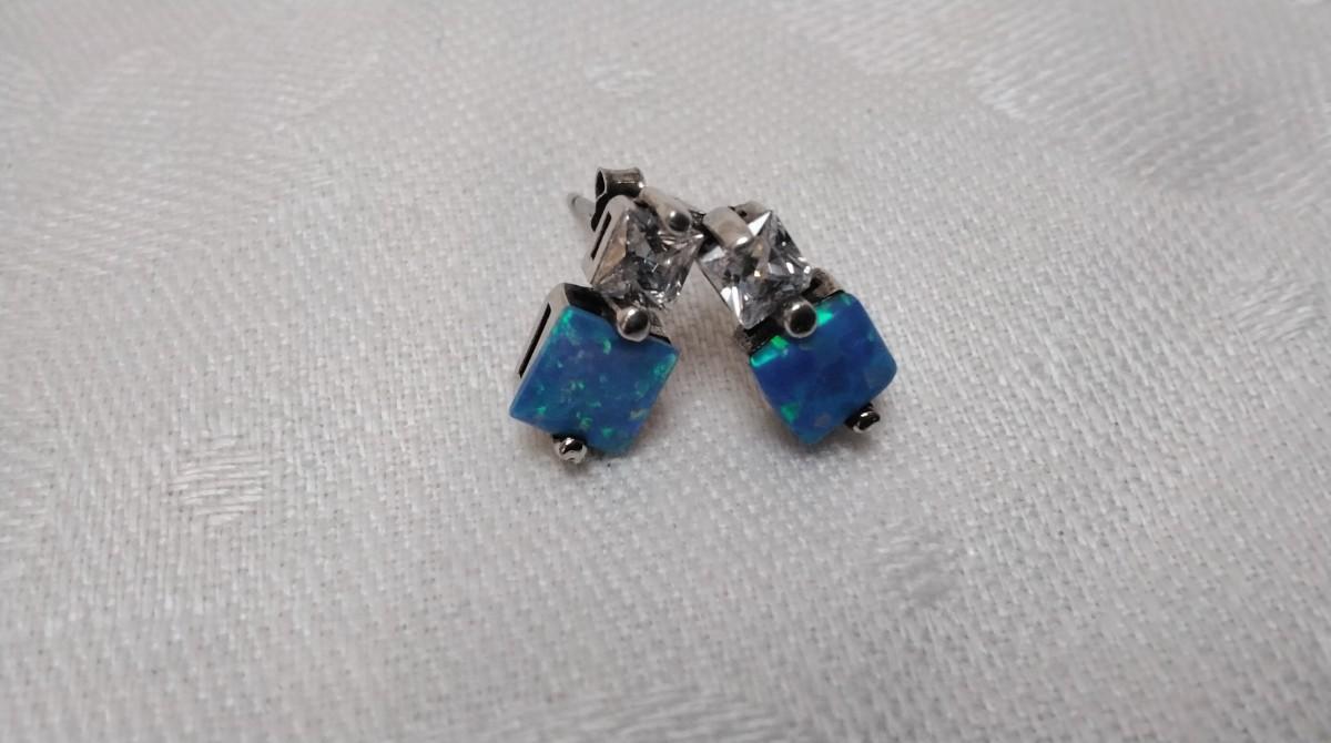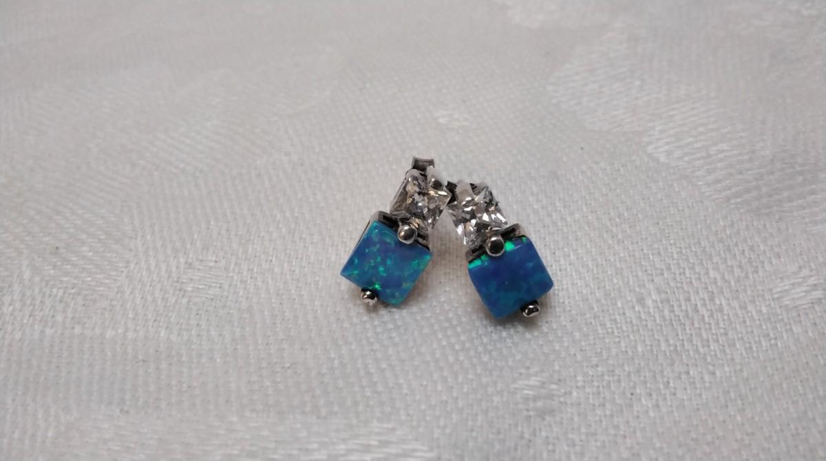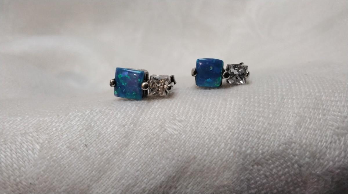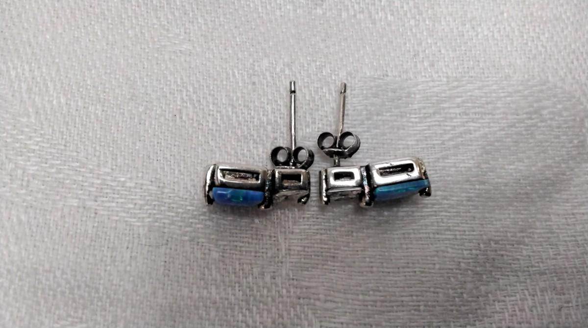 Blue Opal With White Sapphire Accent 925 Post Earrings