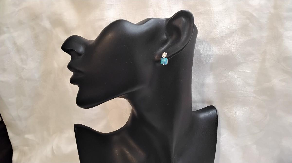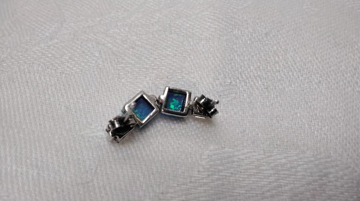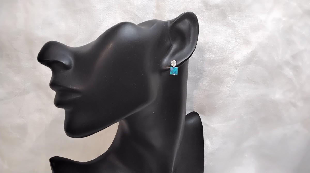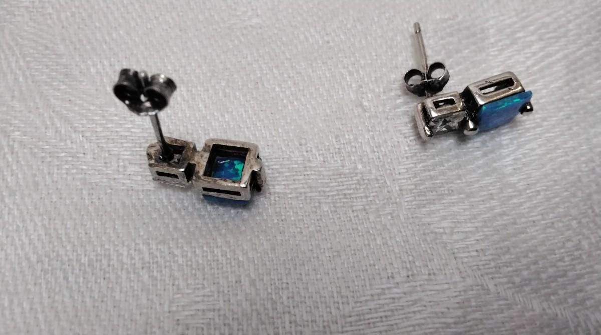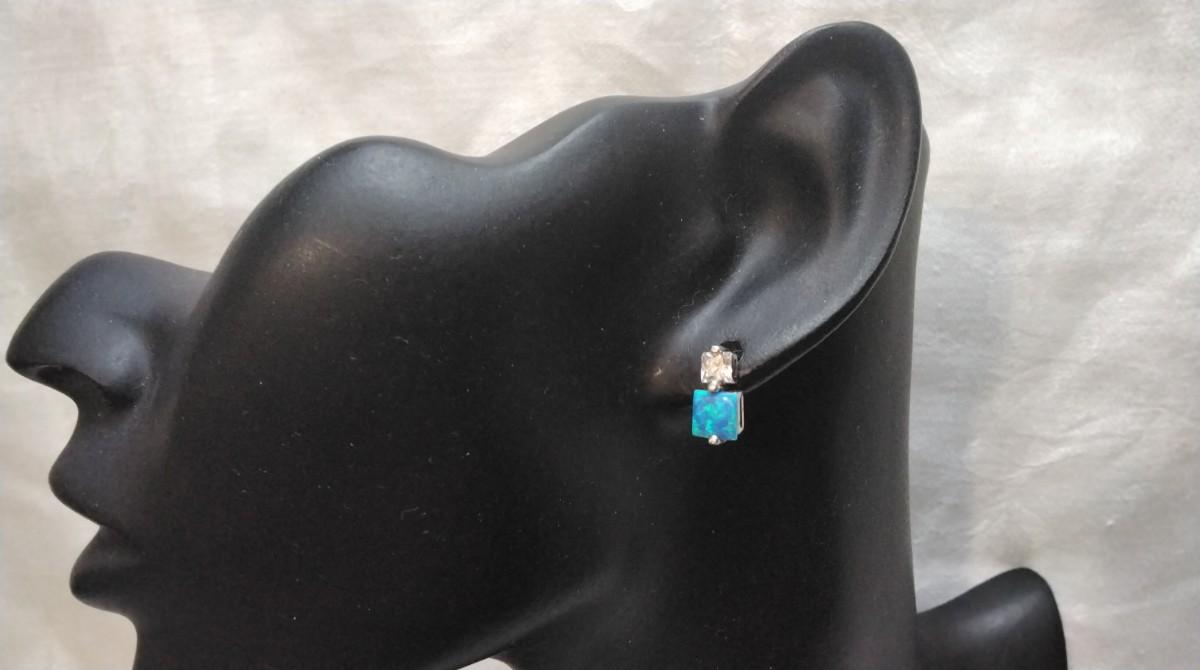 Blue Opal With White Sapphire Accent 925 Post Earrings