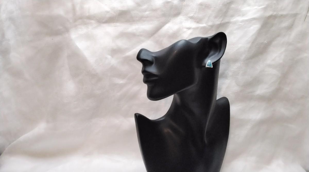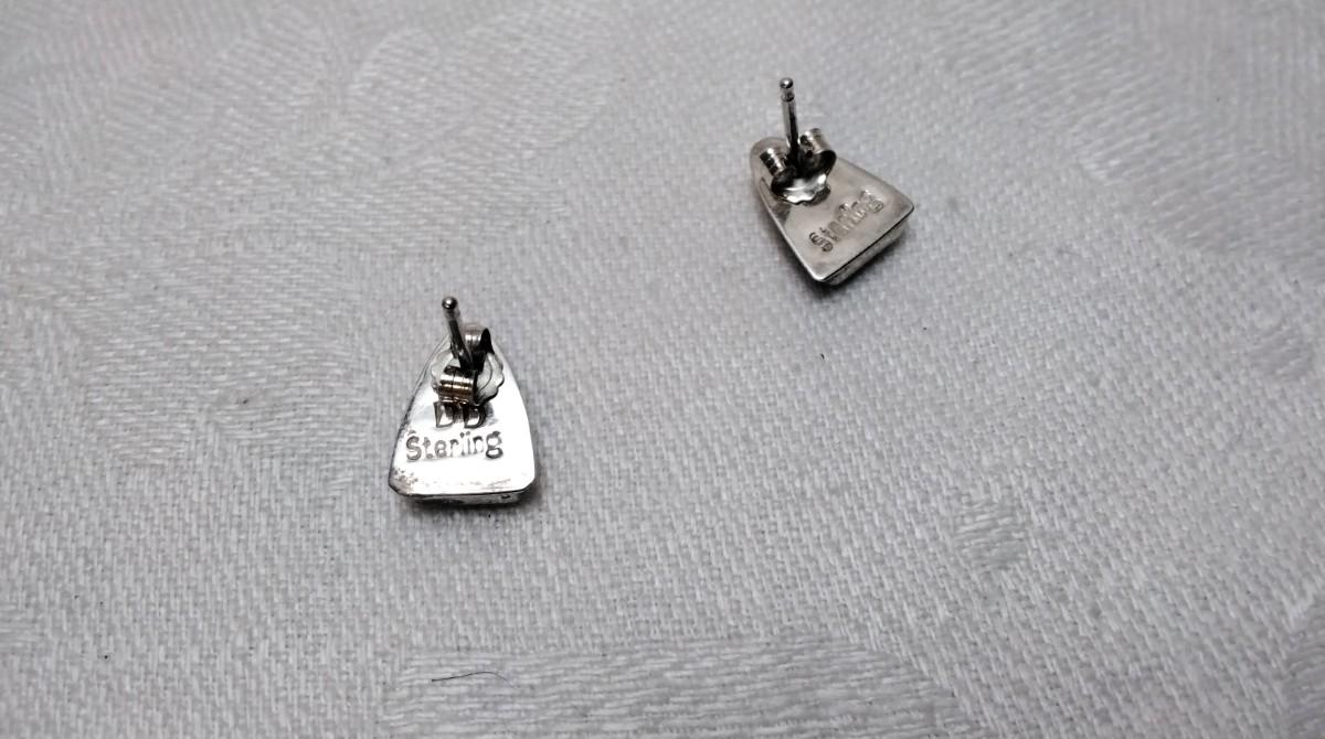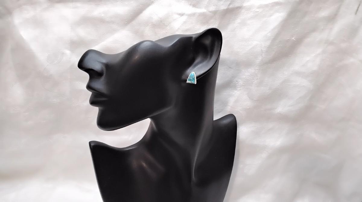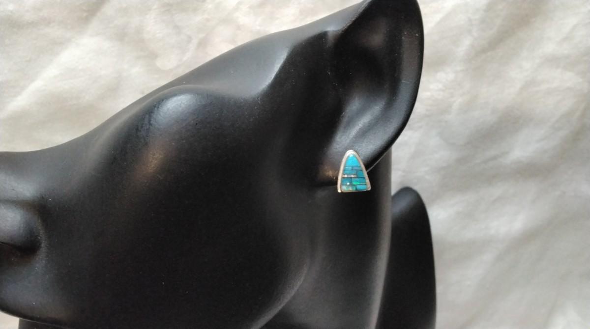 Zuni Indian Turquoise and Opal Hand Marked Signed Post Earrings