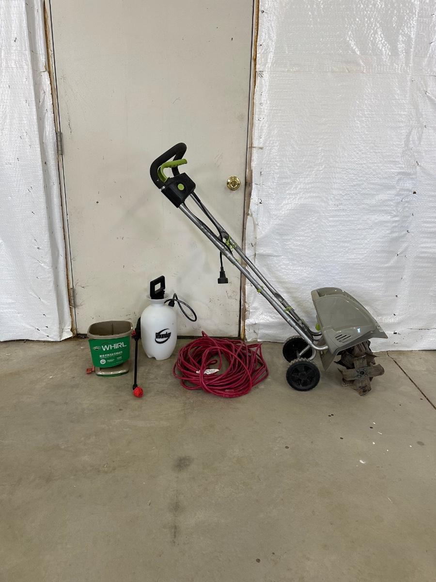 EARTHWISE TILLER CULTIVATOR, SPREADER, SPRAYER AND EXTENSION CORD