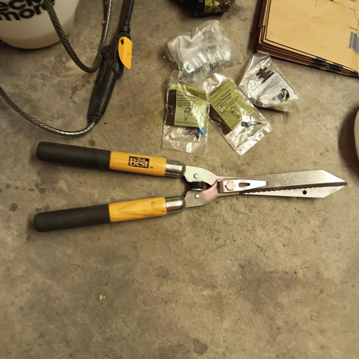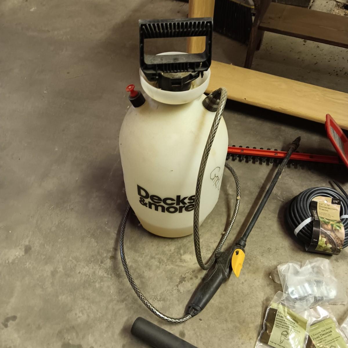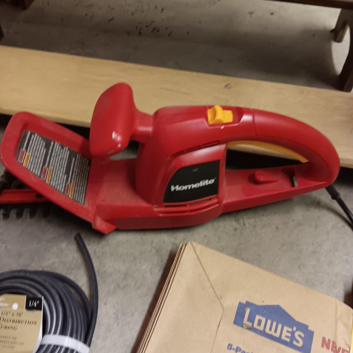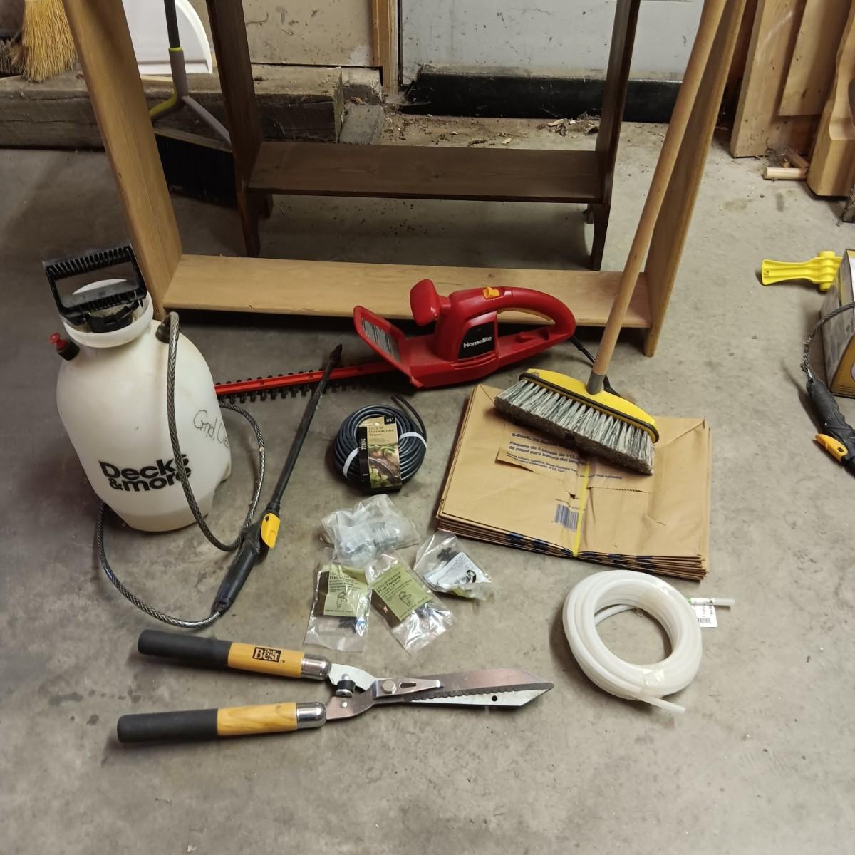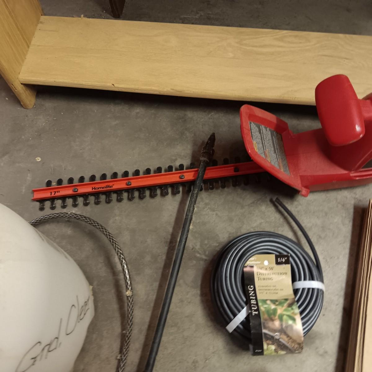 ELECTRIC AND MANUAL HEDGE TRIMMERS, WEED SPRAYER, PLASTIC HOSE AND MORE