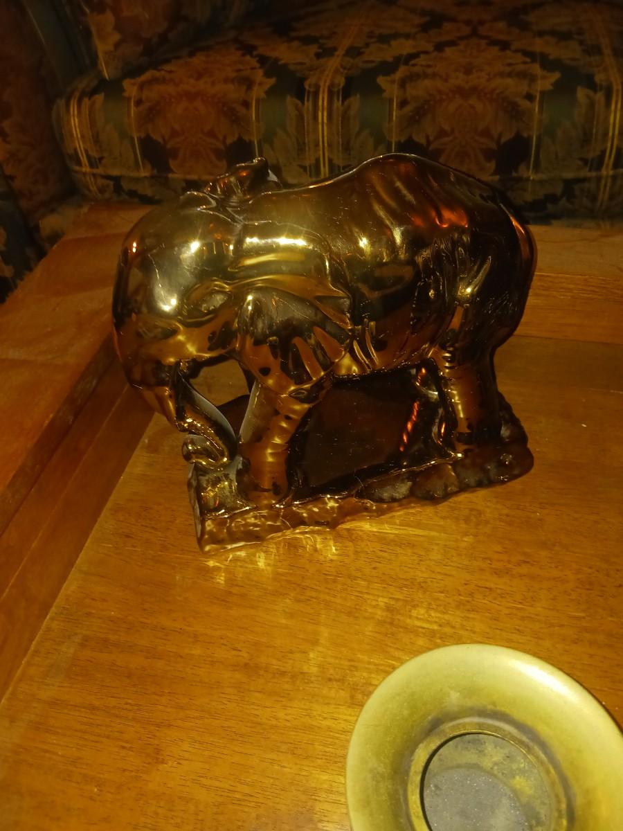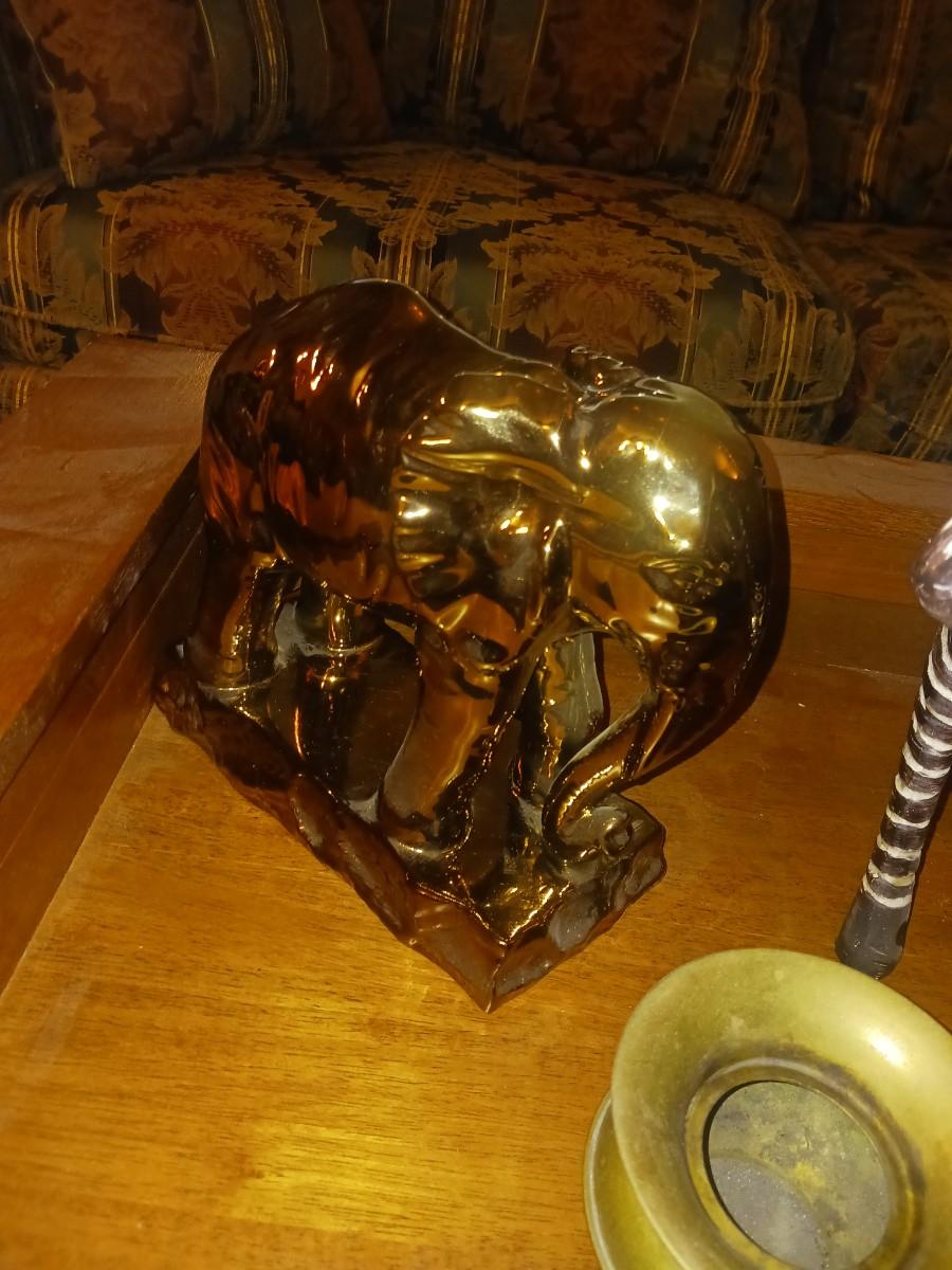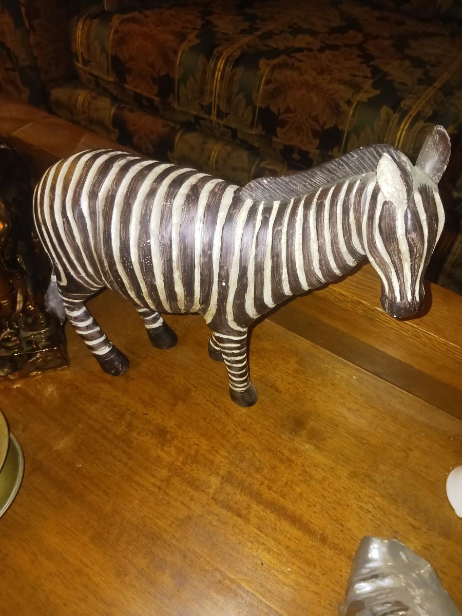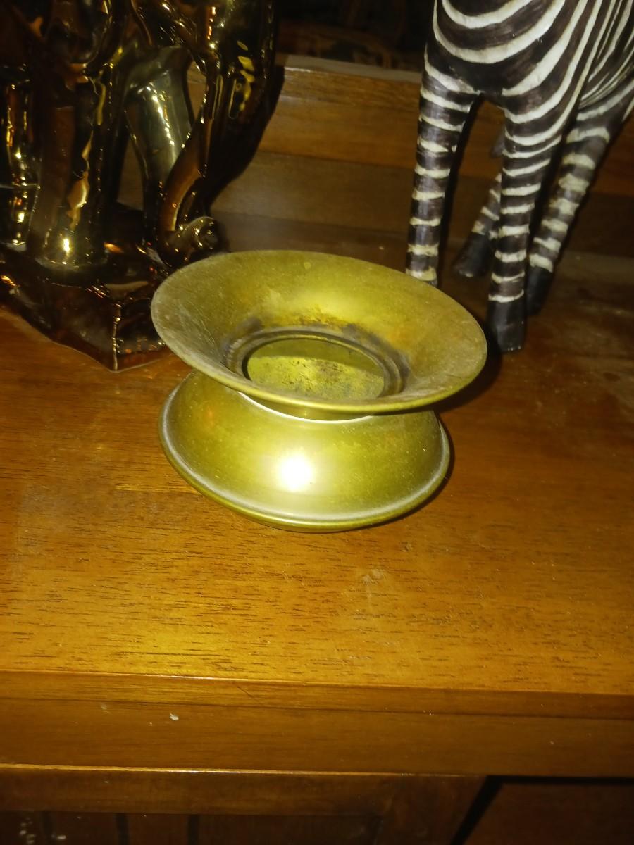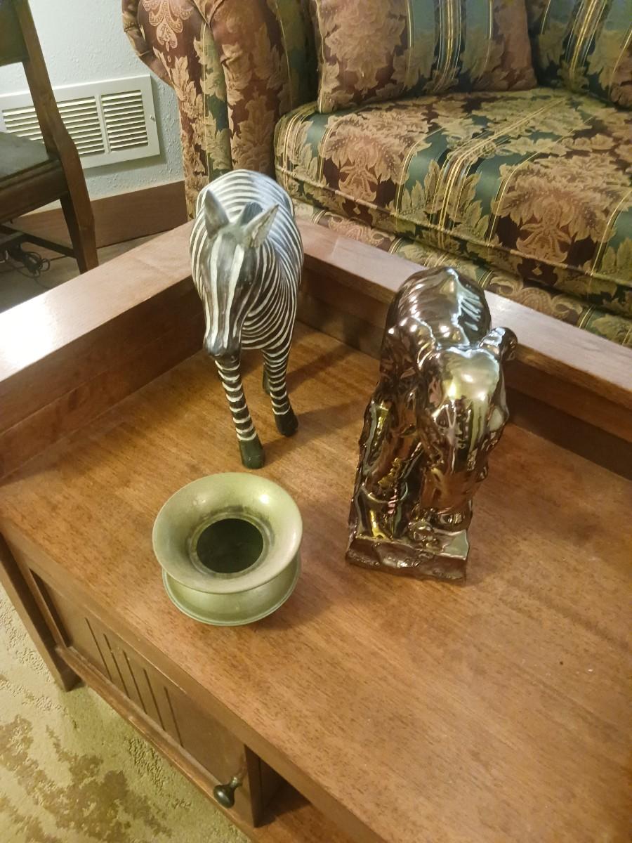 ELEPHANT AND ZEBRA FIGURES PLUS A SMALL BRASS SPITTOON