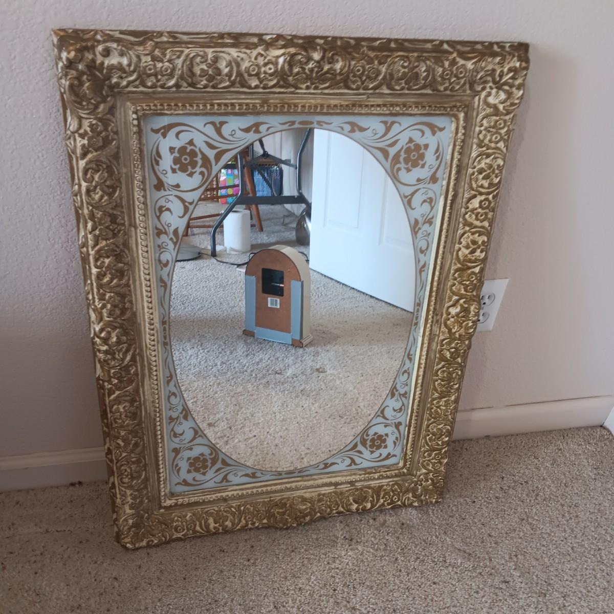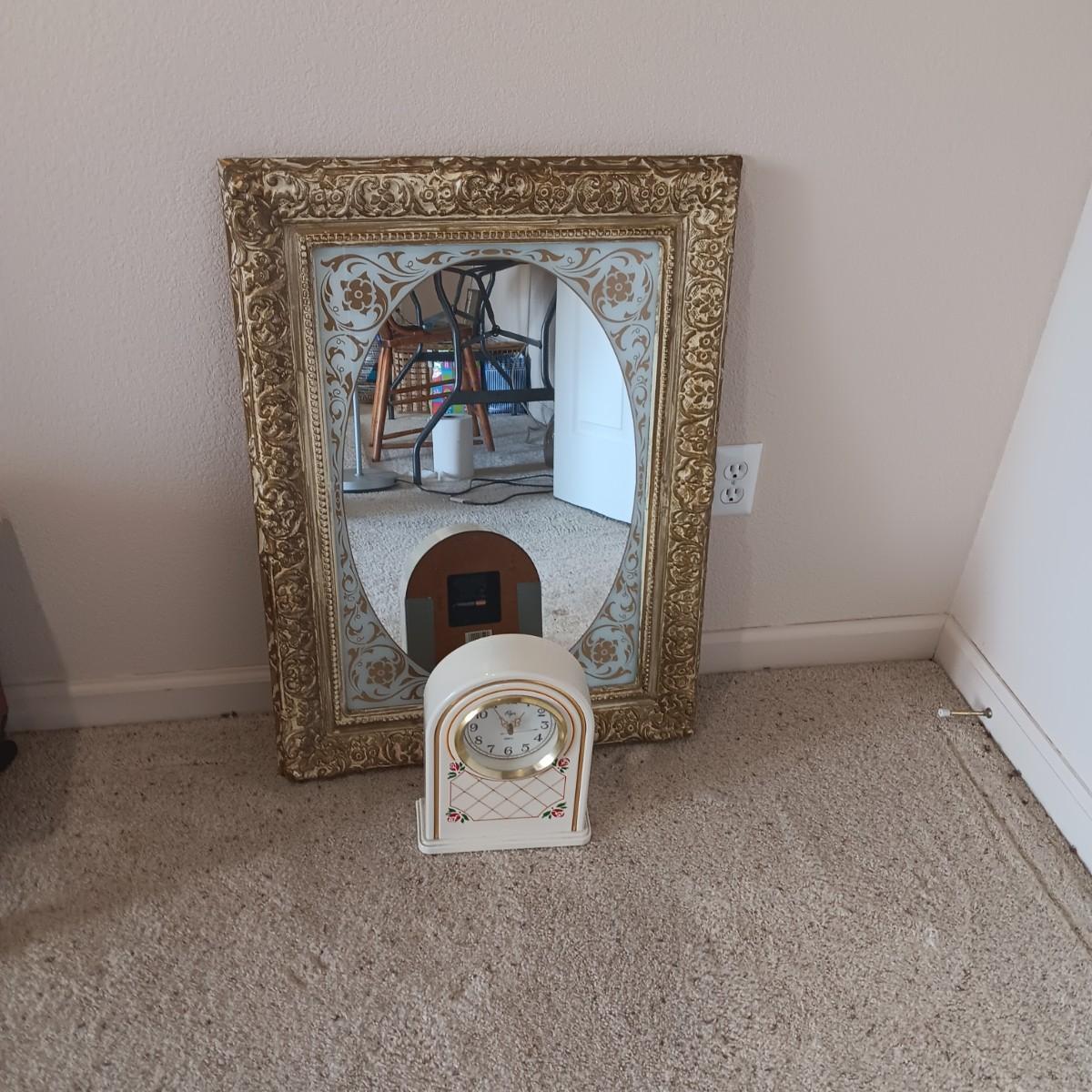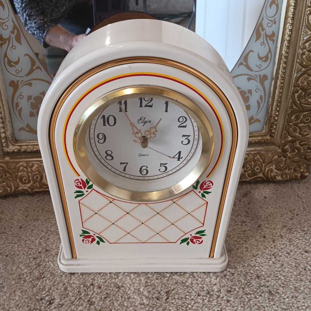 ELGIN CLOCK AND A PLASTIC FRAMED WALL MIRROR