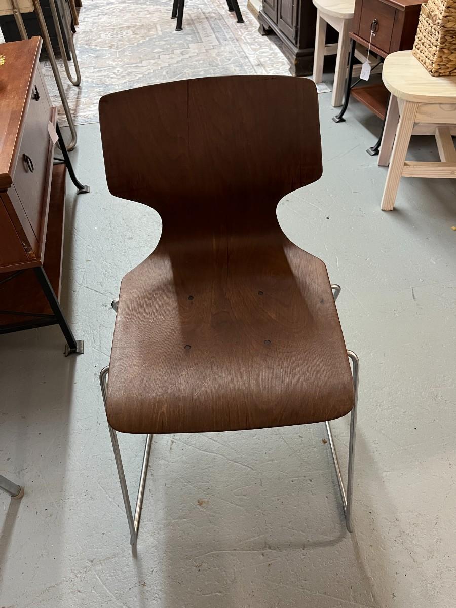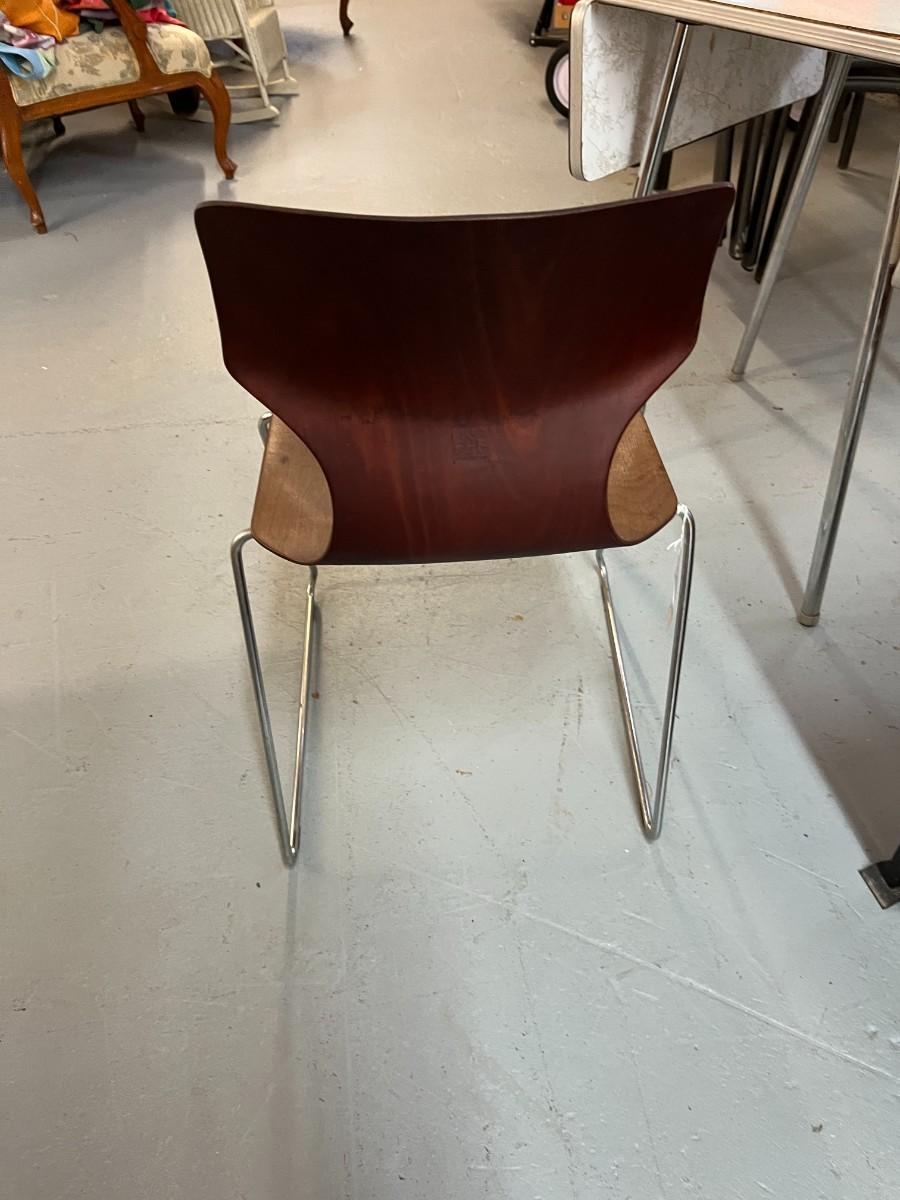 Elmar Flototto Dining or side chair. A classic piece of mid-century modern furniture from Germany. The seat and backrest is made from Pagwood and a chrome plated tubular steel base.