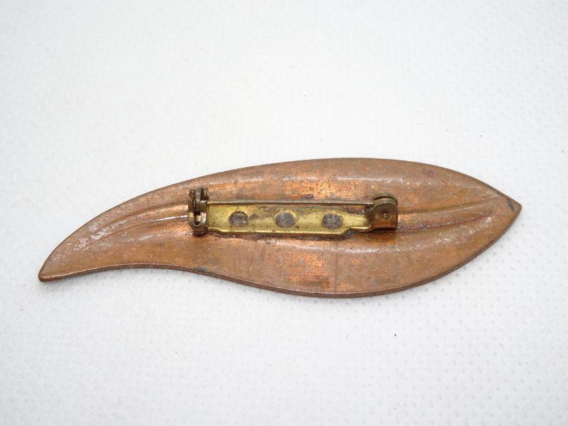 Emerald Green Color Enamel over Copper Leaf Pin, Leaves, Fall