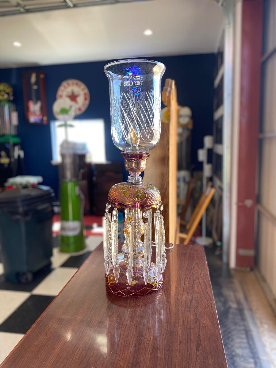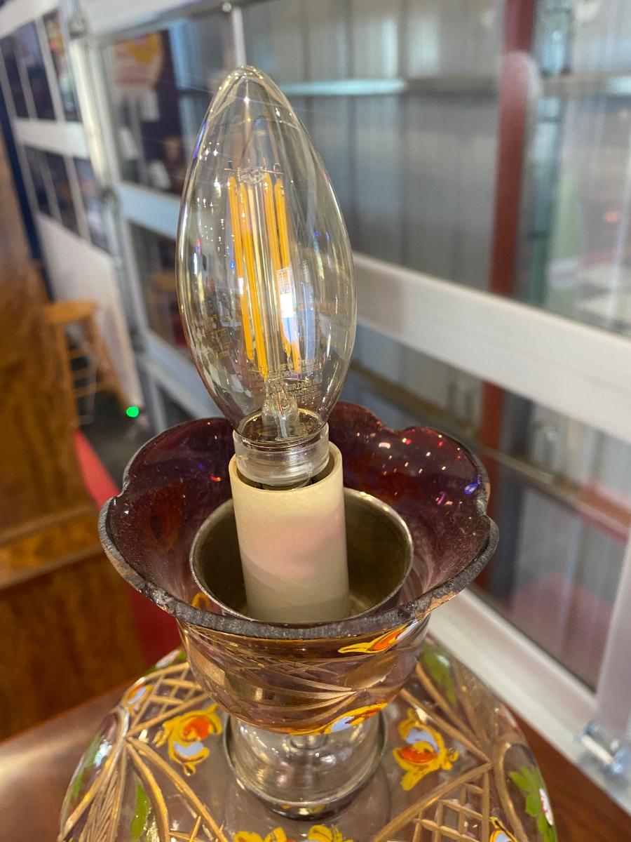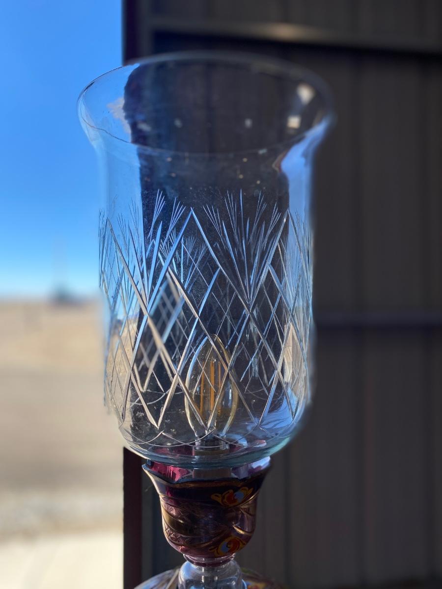 The glass globe we found didn’t exactly fit, but it sits on there ok and looks nice