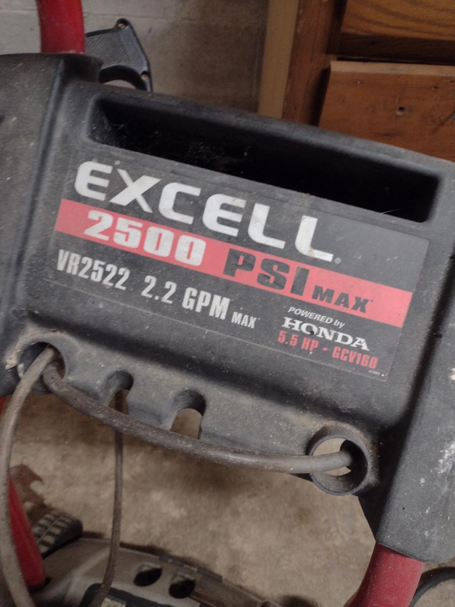 Excell Pressure Washer with Honda Motor- 2500 PSI, 5.5 HP. Item is untested.