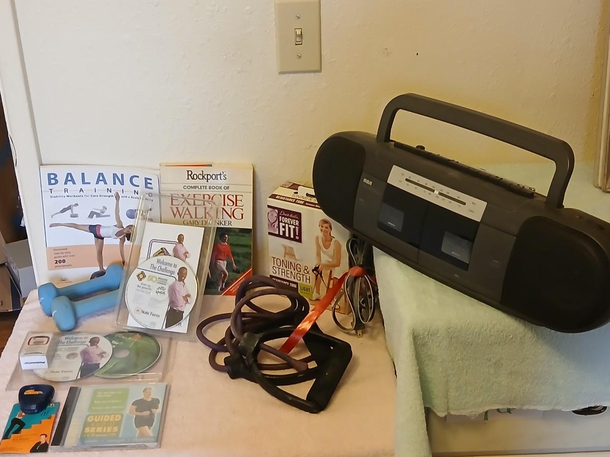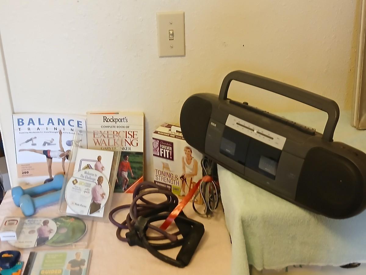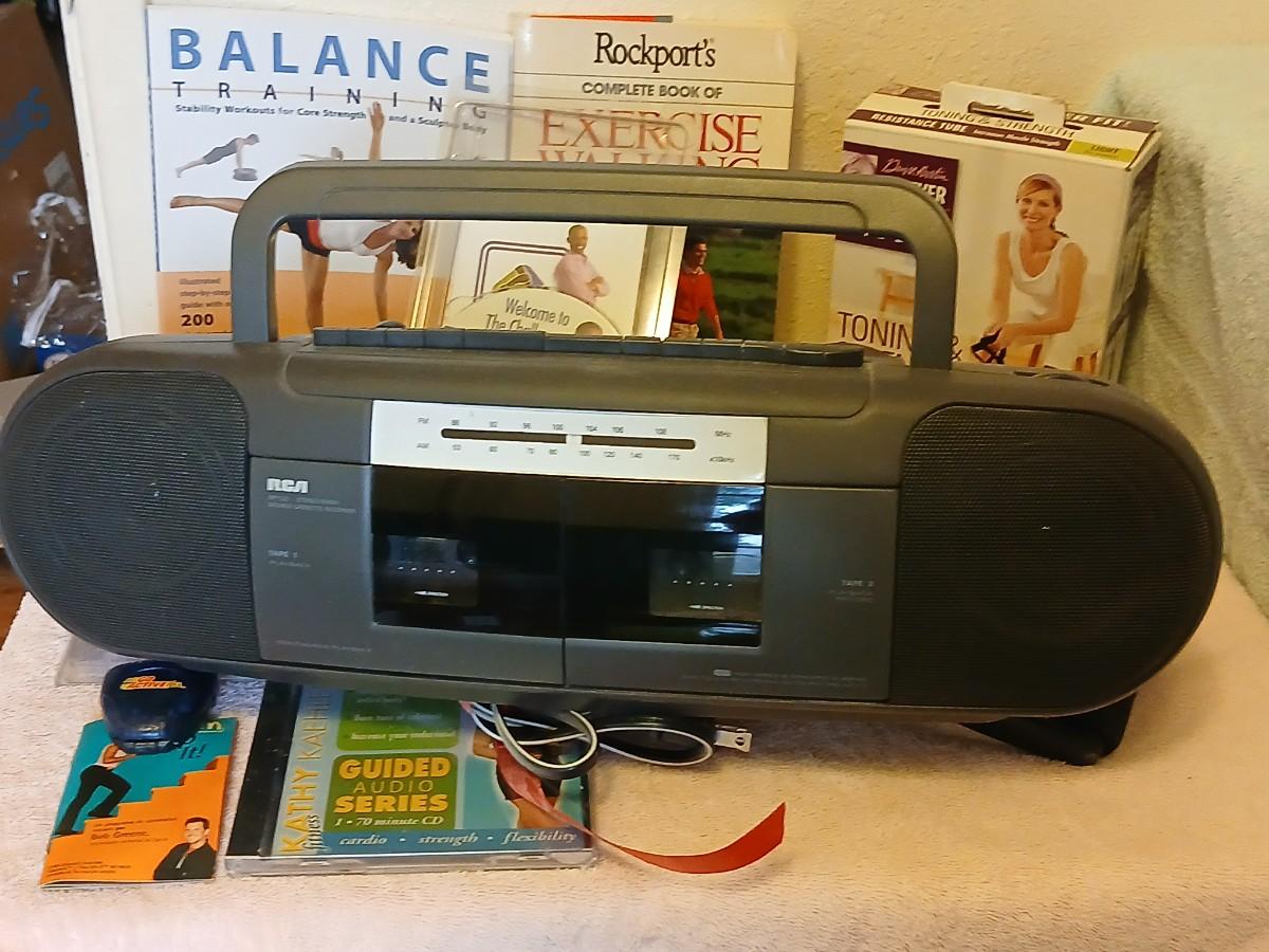Exercising equipment with a RCA am/fm/ cassette deck radio - Get your groove on while you exercise!