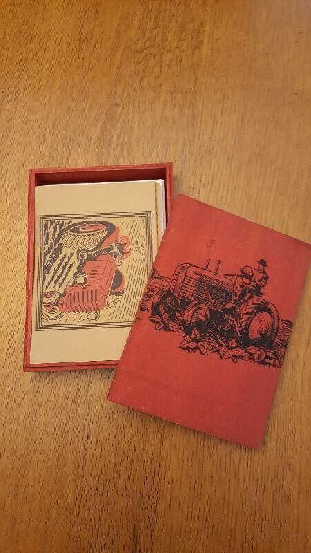 This lot is for a collection of really fun Farmer on Tractor Cards with Printed Envelopes. Is the art of the written word on the wane? Not when you have the use of these nifty notes. Contained in a wonderful wood red box with Farmer graphics. There are 24 notes in the set. Donated by a friend of the IHA. Bid high, where you gonna find these.