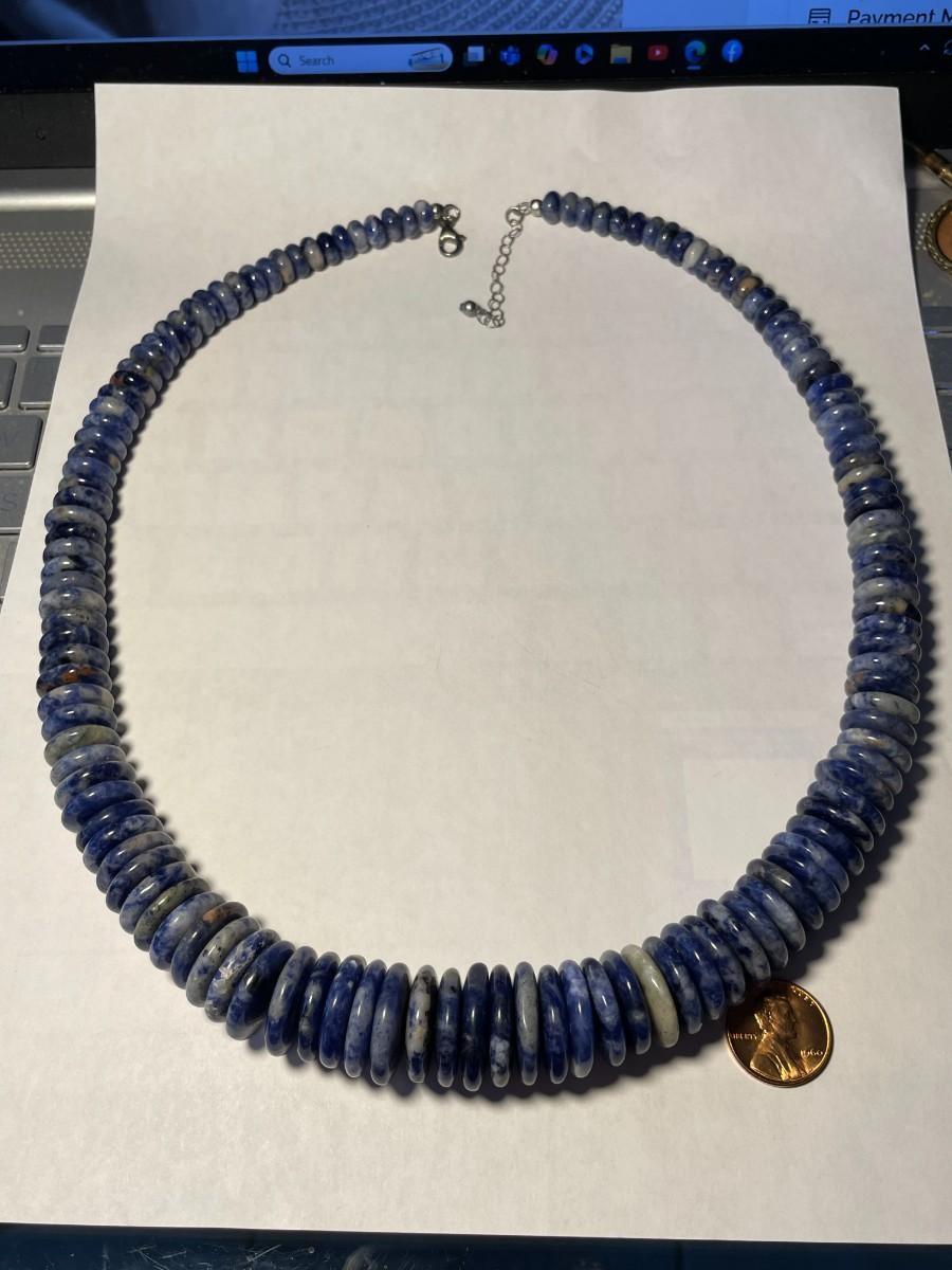 FAS Designer Huge Lapis Lazuli Graduated Disc Beaded Necklace 24-26" Adjustable Fashion Necklace w/Sterling Chain & Clasp. $7 DOMESTIC SHIPPING.