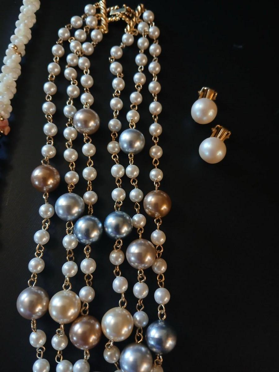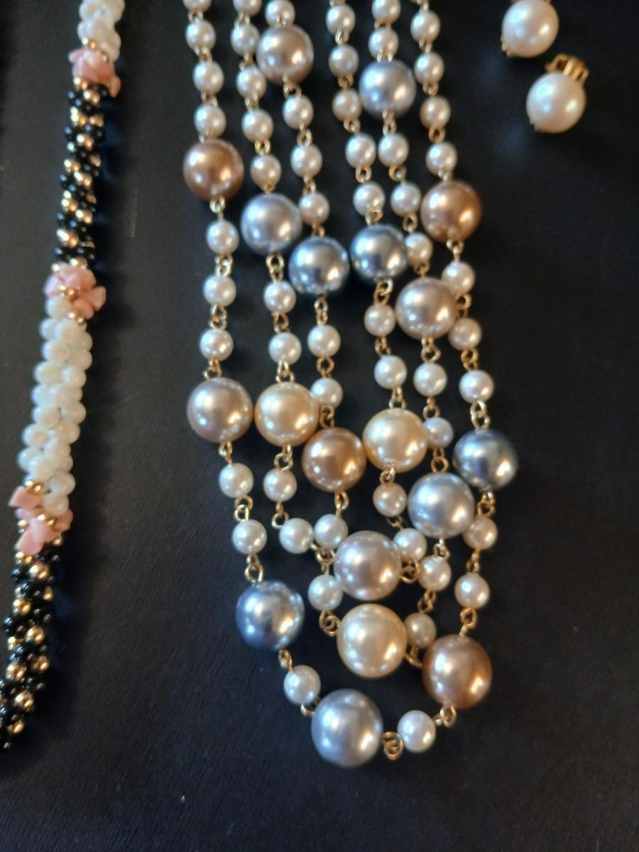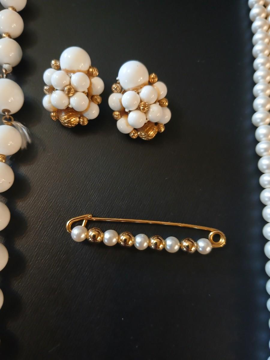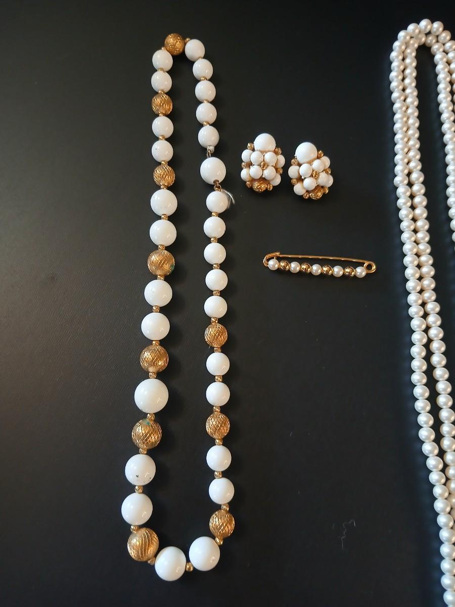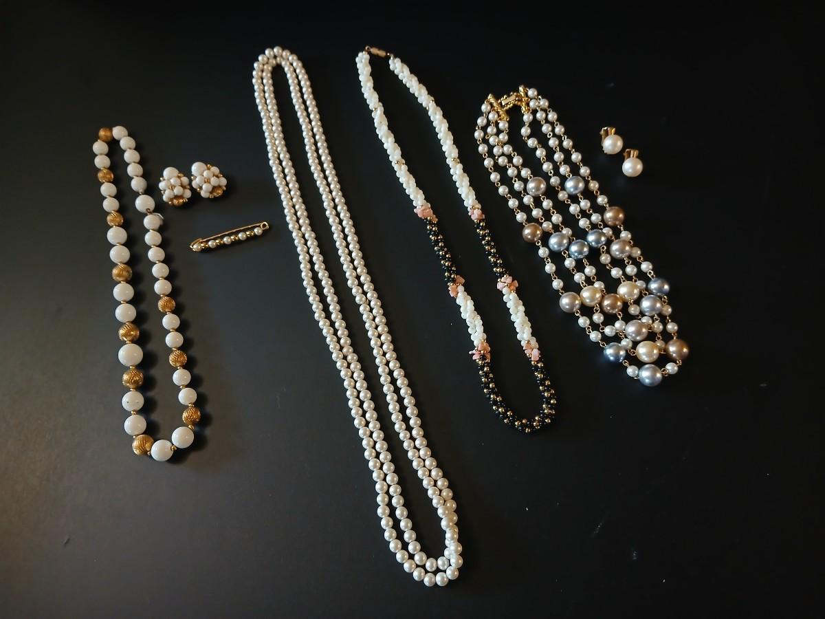 Faux pearl necklaces - brooch - earrings- and a beautiful, beaded necklace