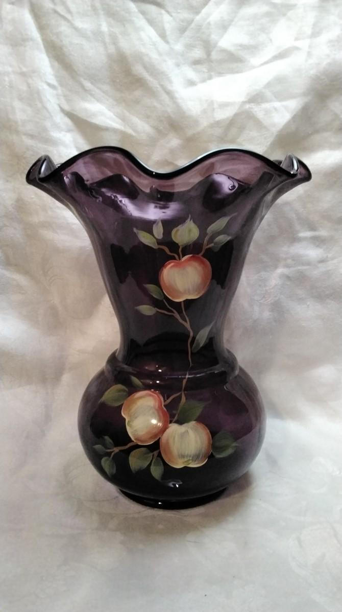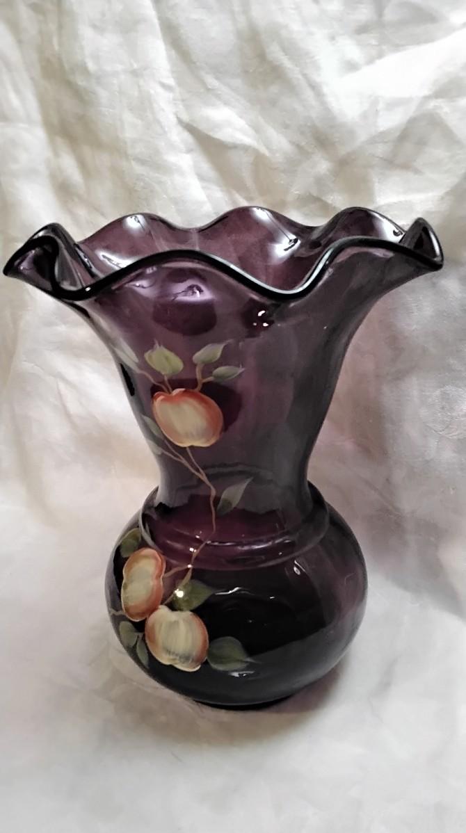 Fenton Apples On Aubergine Purple 100 Anniversary Vase Hand Painted By A. Deem