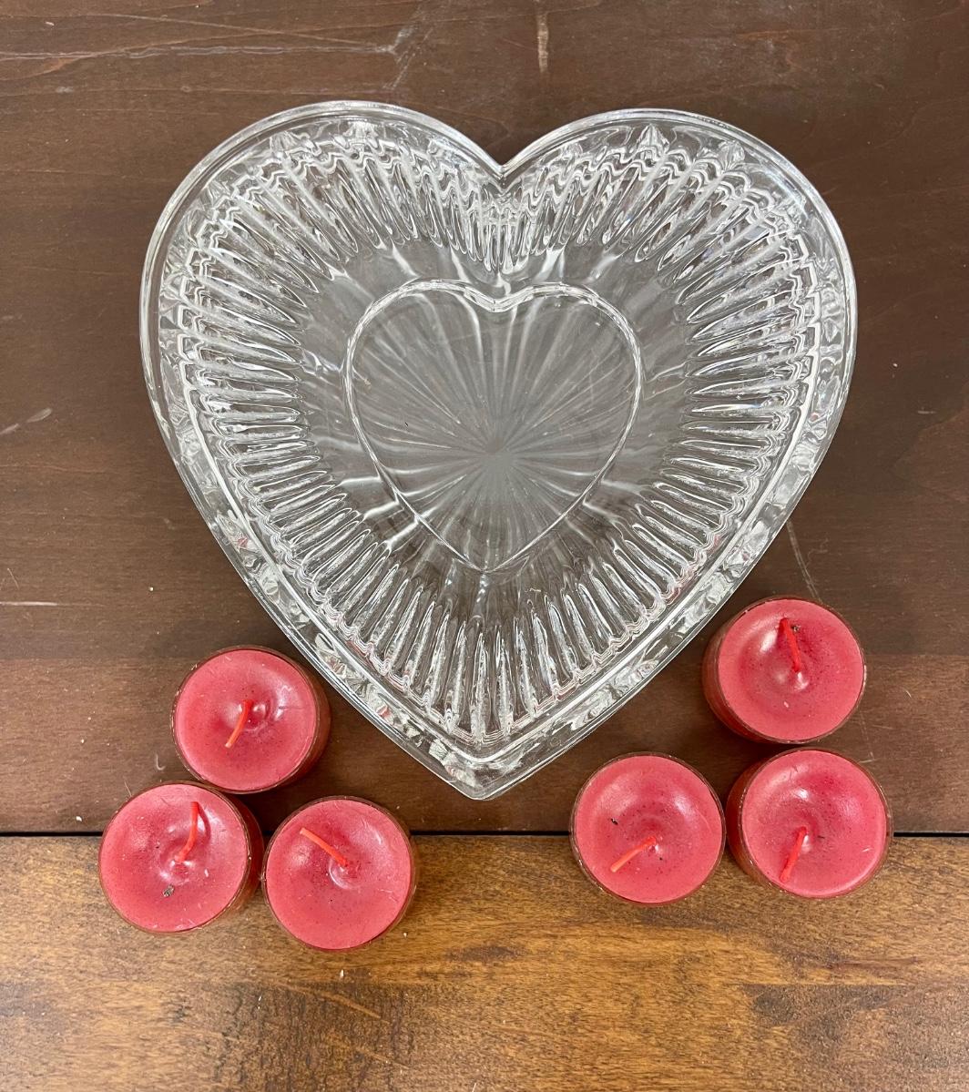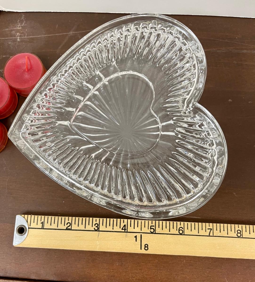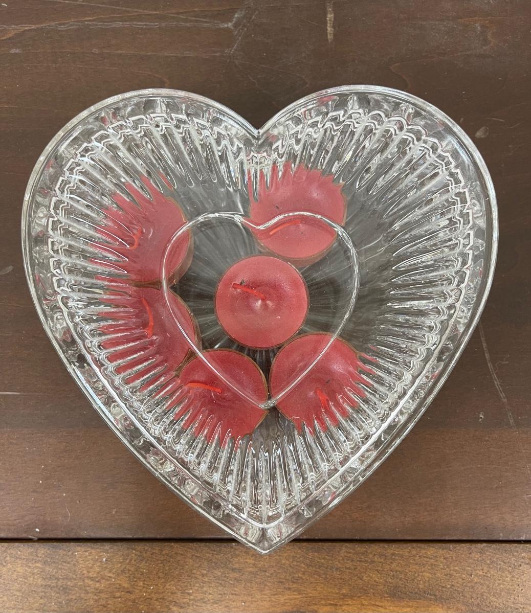 Retro Pressed Glass Crystal Heart Shaped Lidded Jewelry Trinket Dish with Tealight Candles