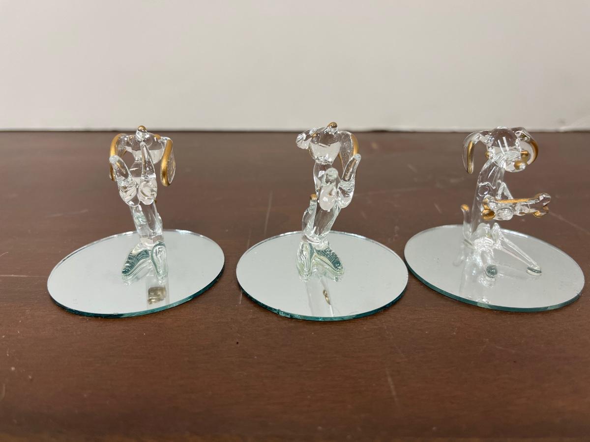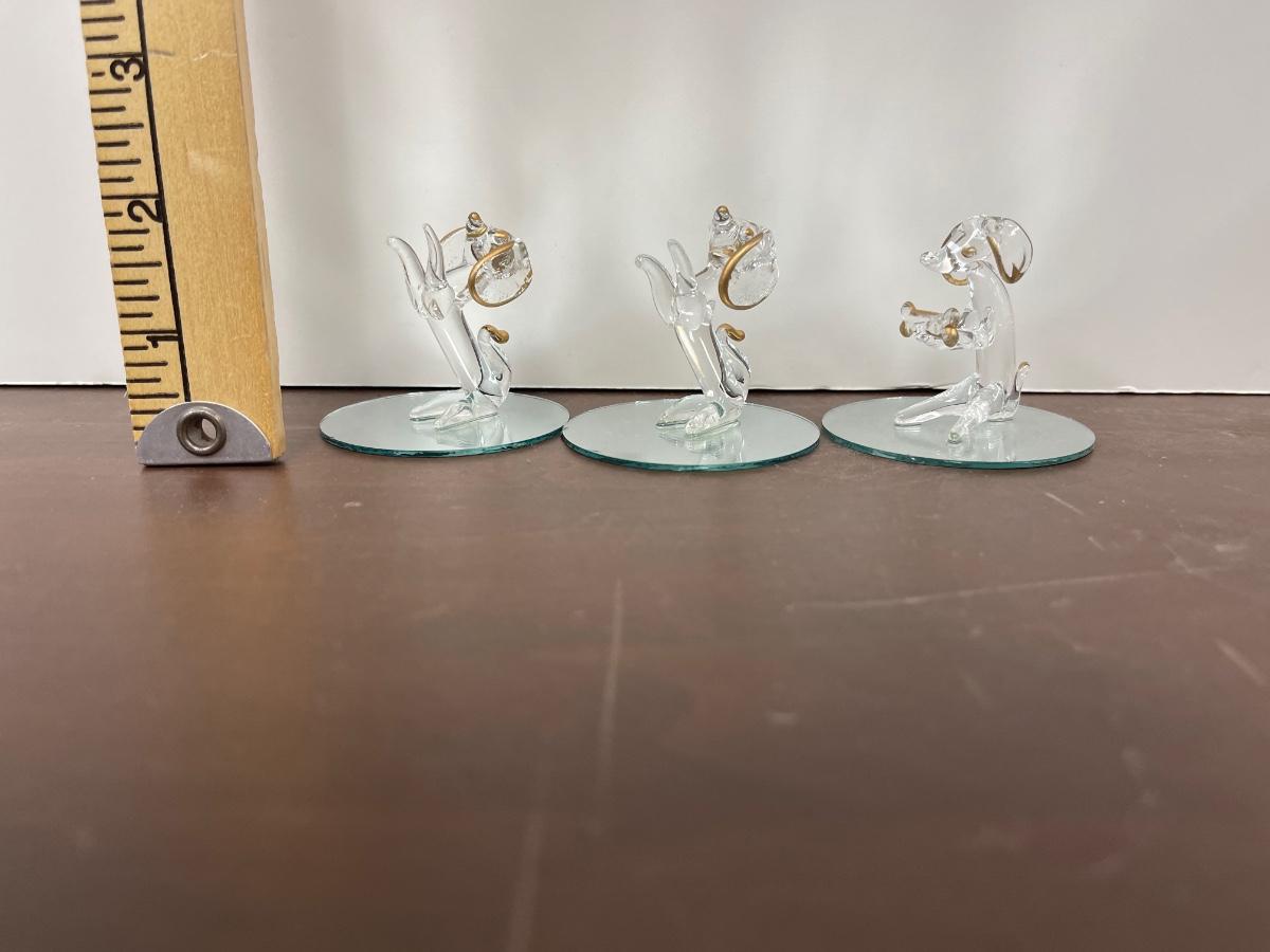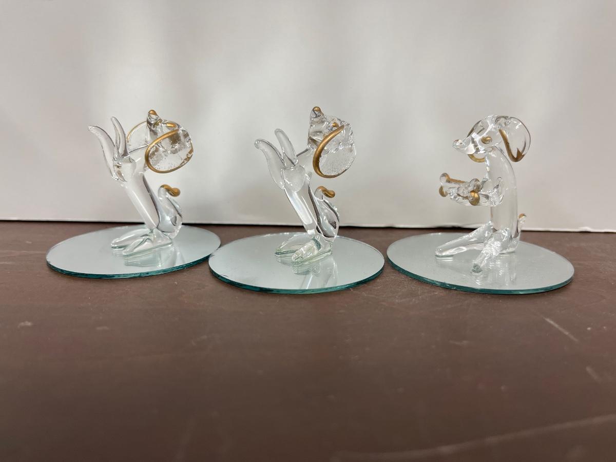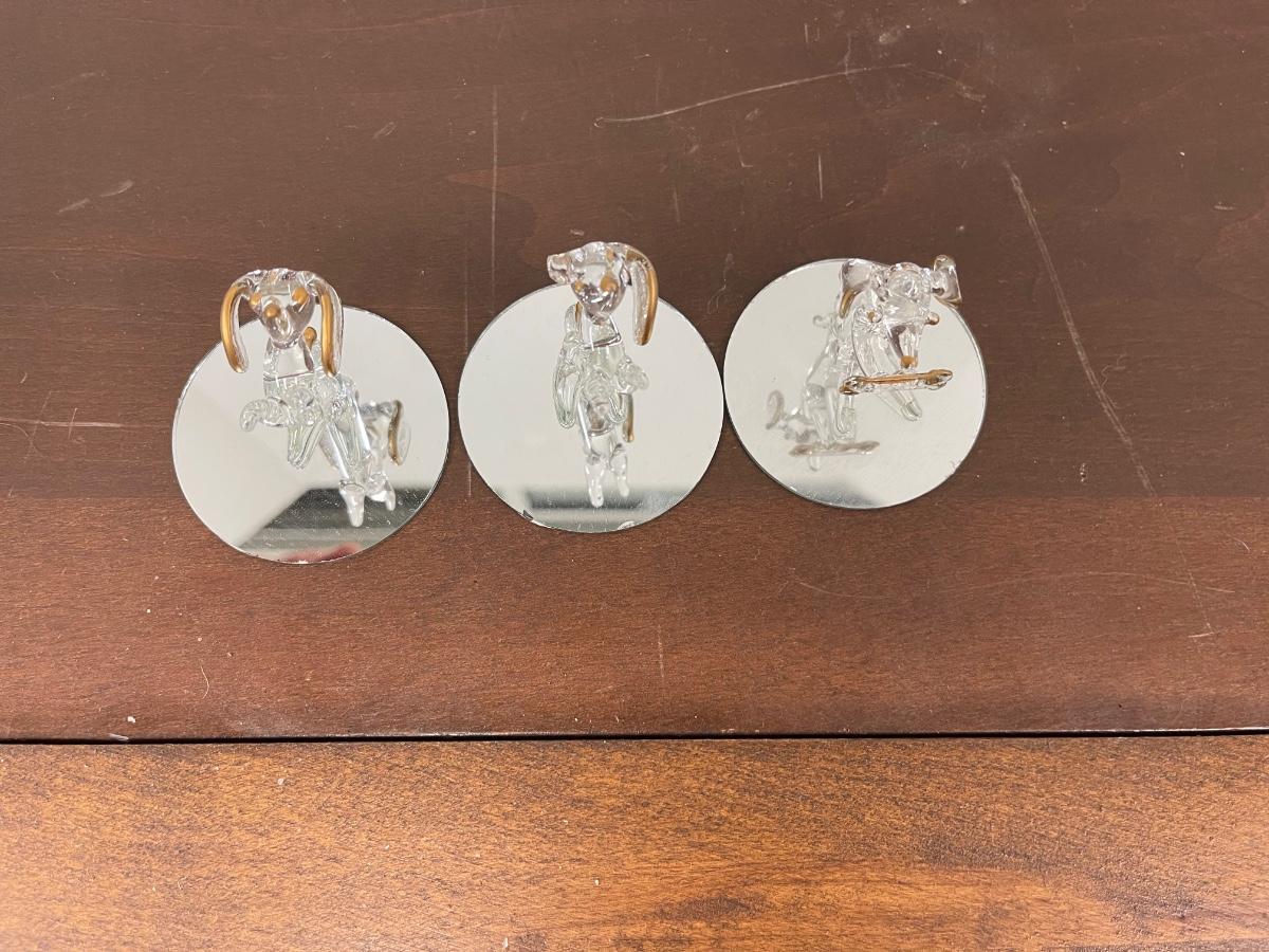 Lot of Three Blown Glass Dog Puppy Figurines with Gold Edges Mirrored Base
